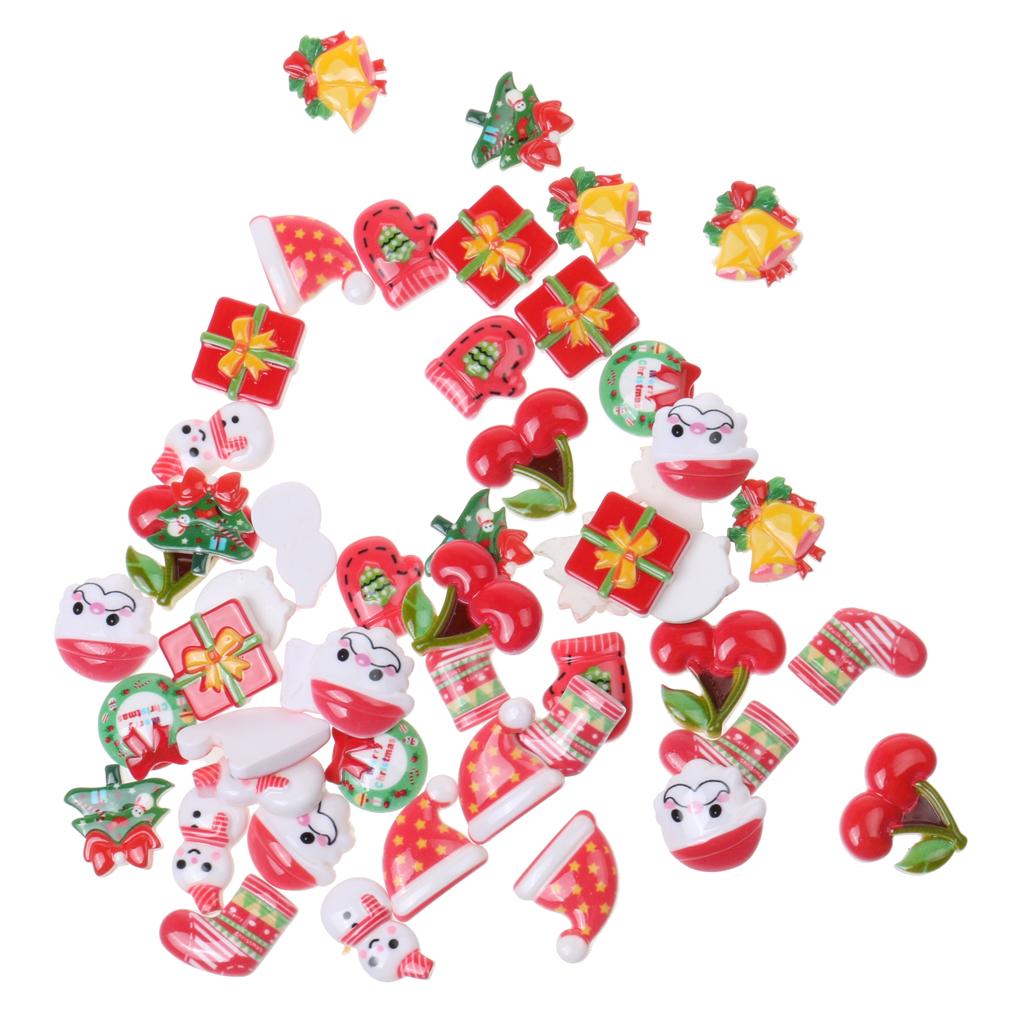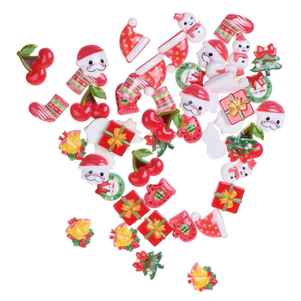 50 Pieces Resin Flatback and 10 Pieces Christmas Charms