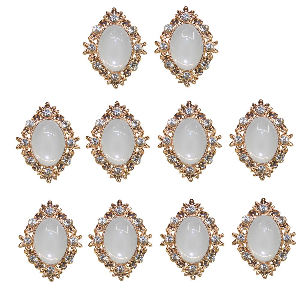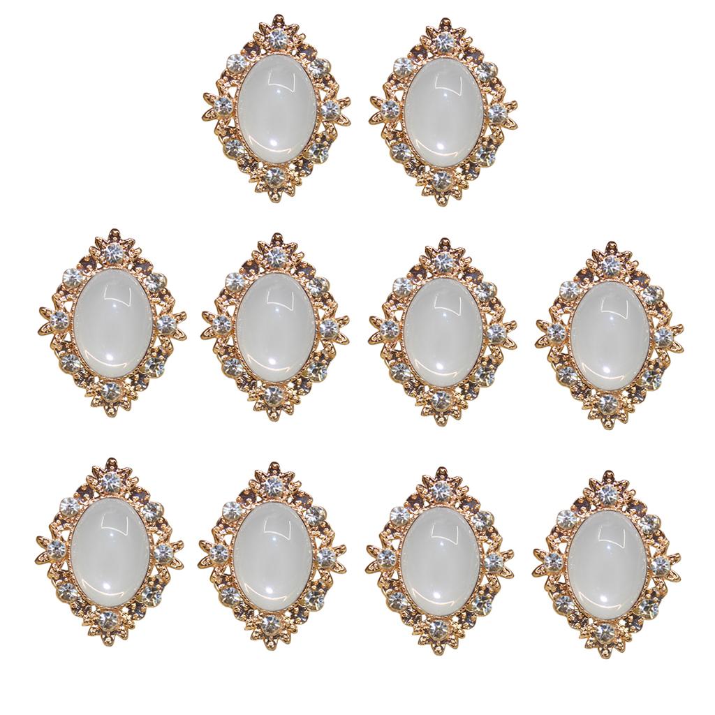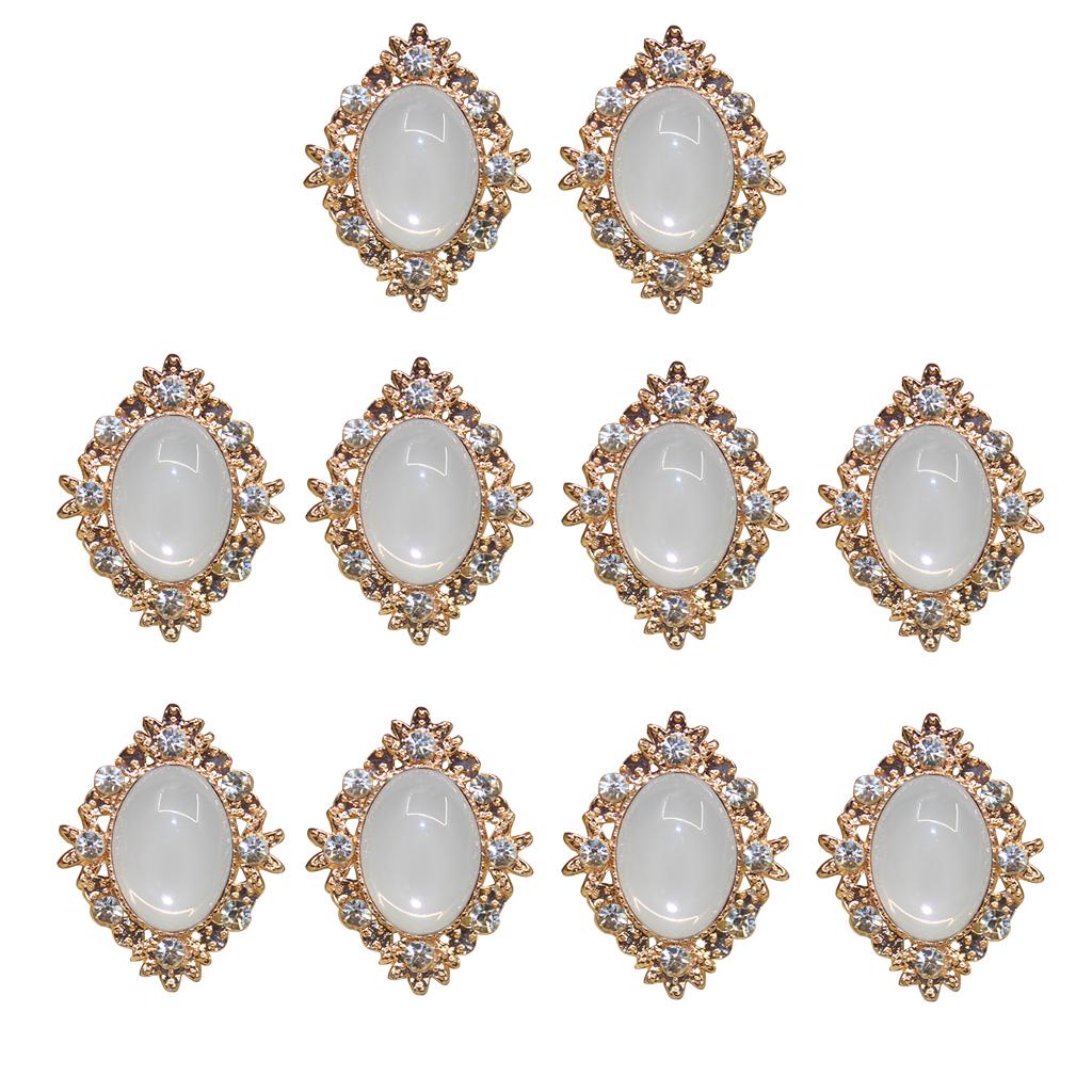 10 Rhinestone Cabochons Flat Back Embellishments Wedding Phone Decor Cream