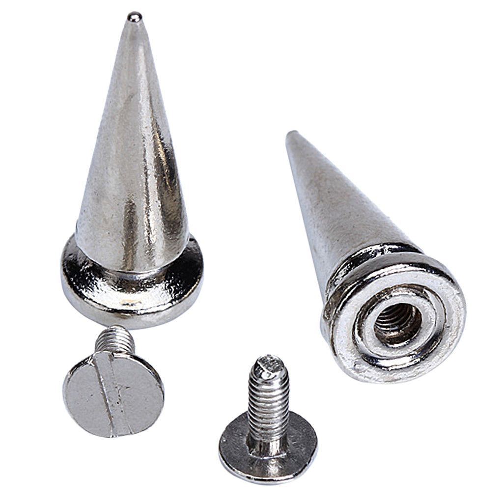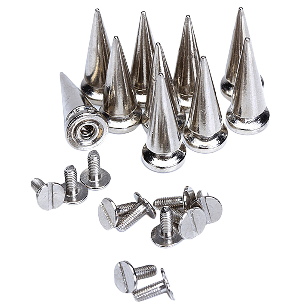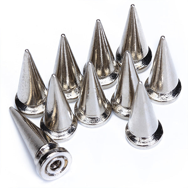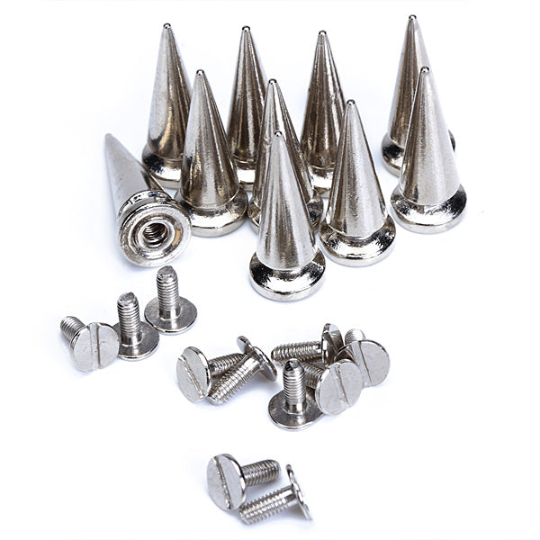 10 Sets Cone Screwback Spikes Studs 25mm Silver