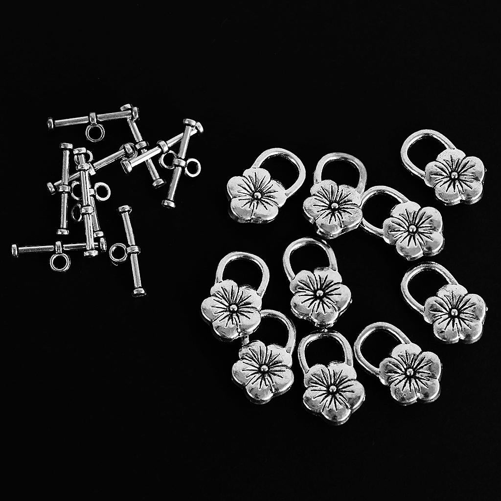 10 Sets Vintage Flower OT Clasps DIY Jewelry Findings Antique Silver
