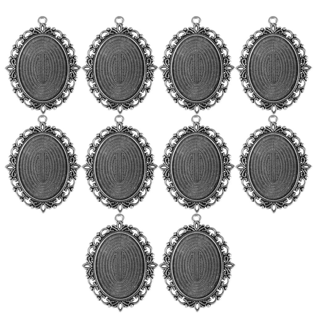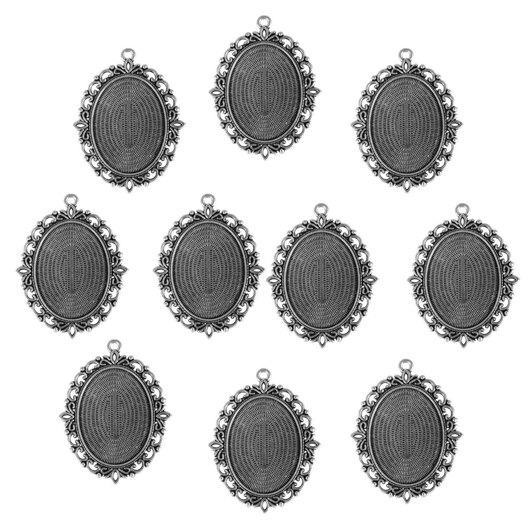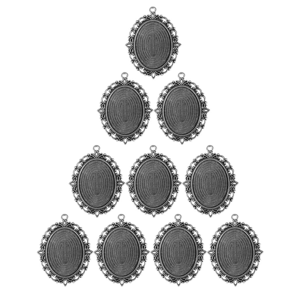 10 Vintage Cameo Base Pendant Base Tray Blank Jewelry Making Antique Silver