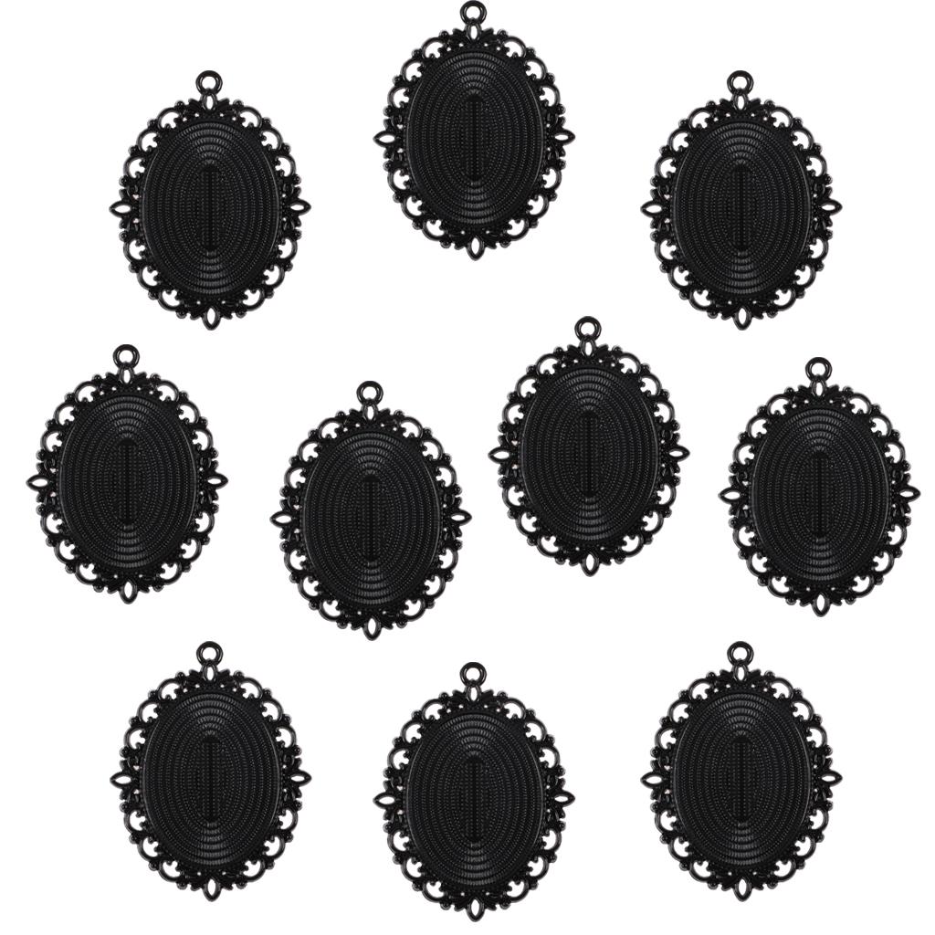 10 Vintage Cameo Base Pendant Base Tray Blank Jewelry Making Black