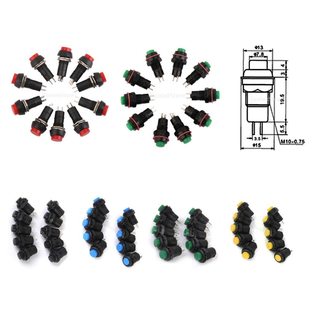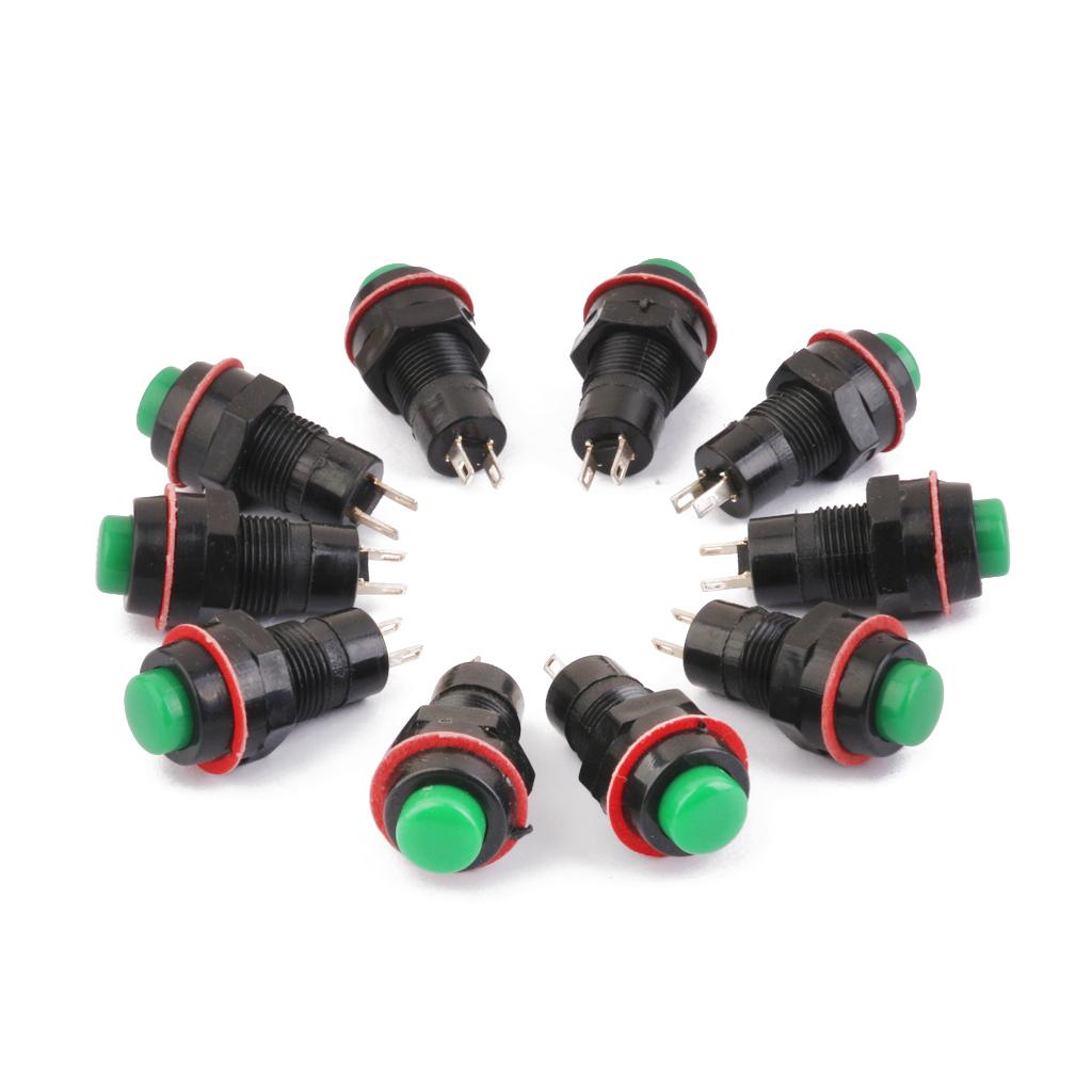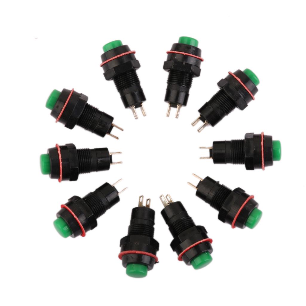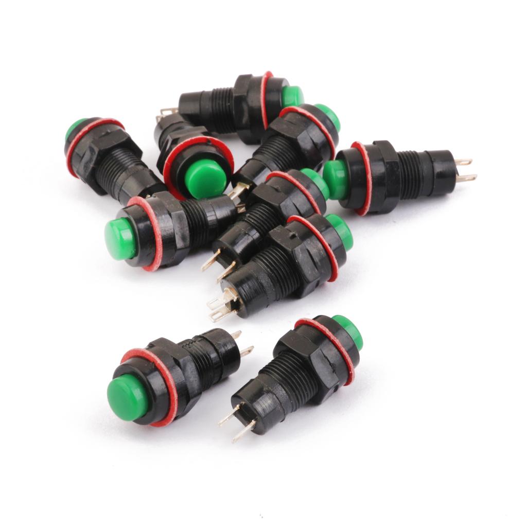 10 x Car Boat Locking Dash ON-OFF Push Button 2-Pin Latching Switch Green