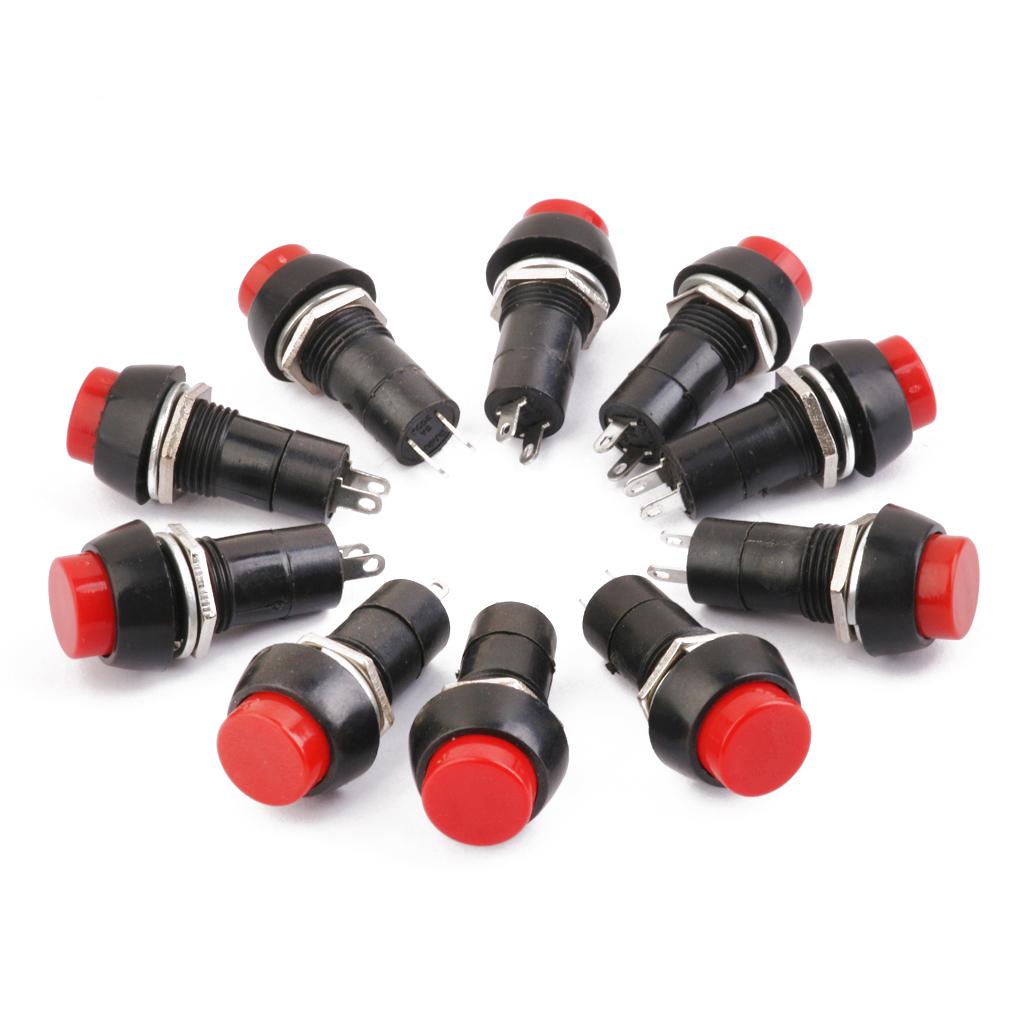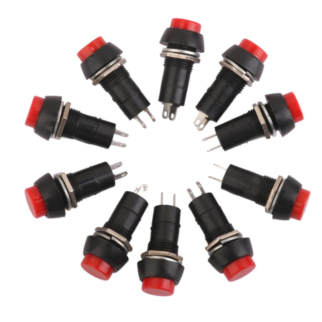 10 x Car Boat Locking Dash ON-OFF Push Button 2-Pin Latching Switch Red 12mm