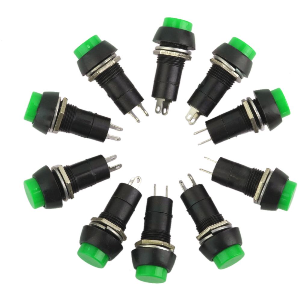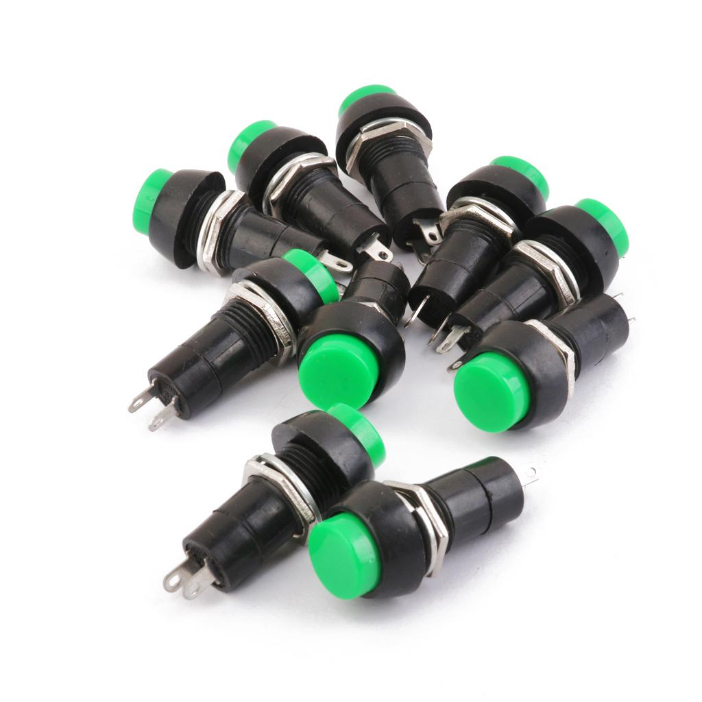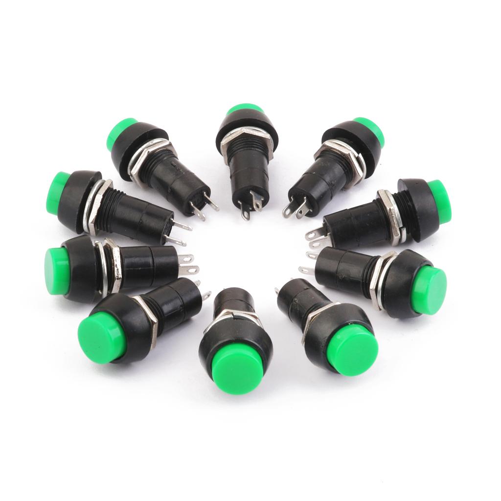 10 x Car Boat Locking ON-OFF Push Button 2-Pin Latching Switch Green 12mm