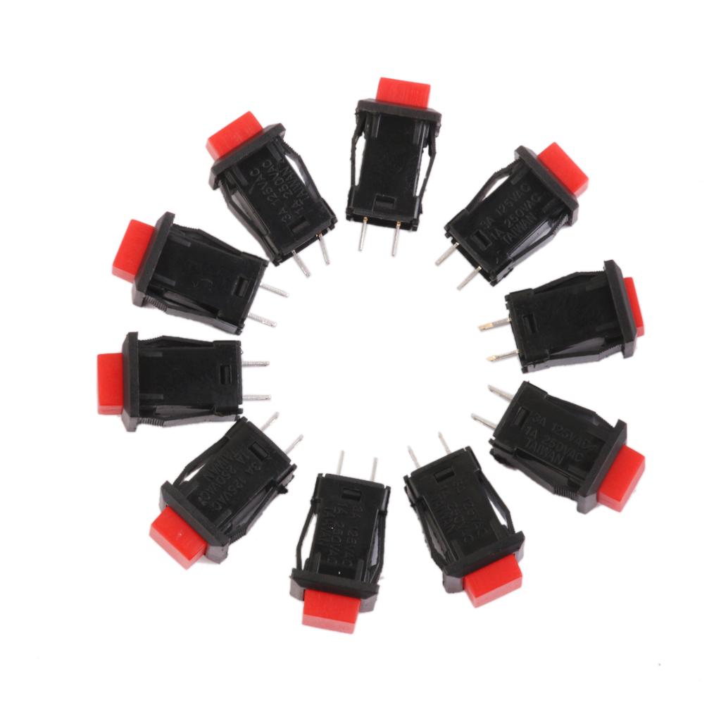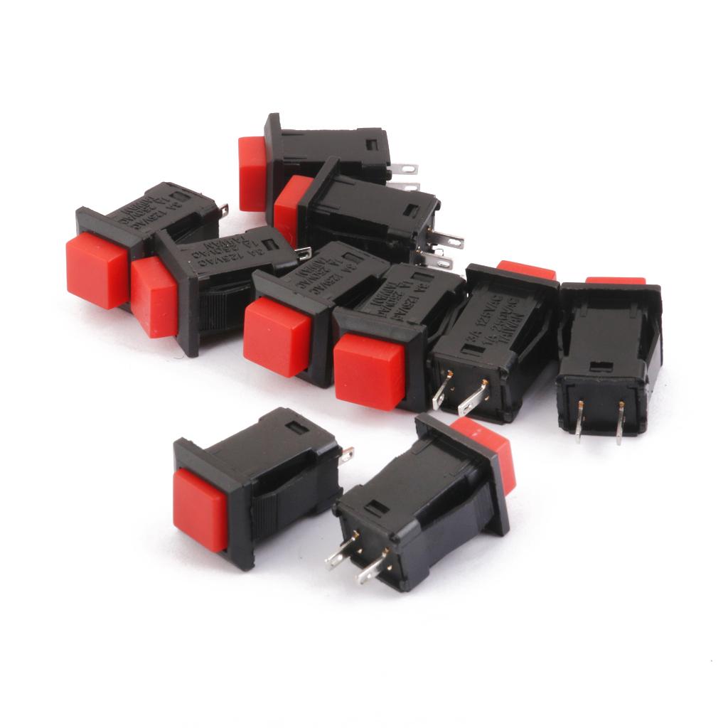 10 x Car Boat Locking ON-OFF Push Button 2-Pin Latching Switch Red 14*14mm