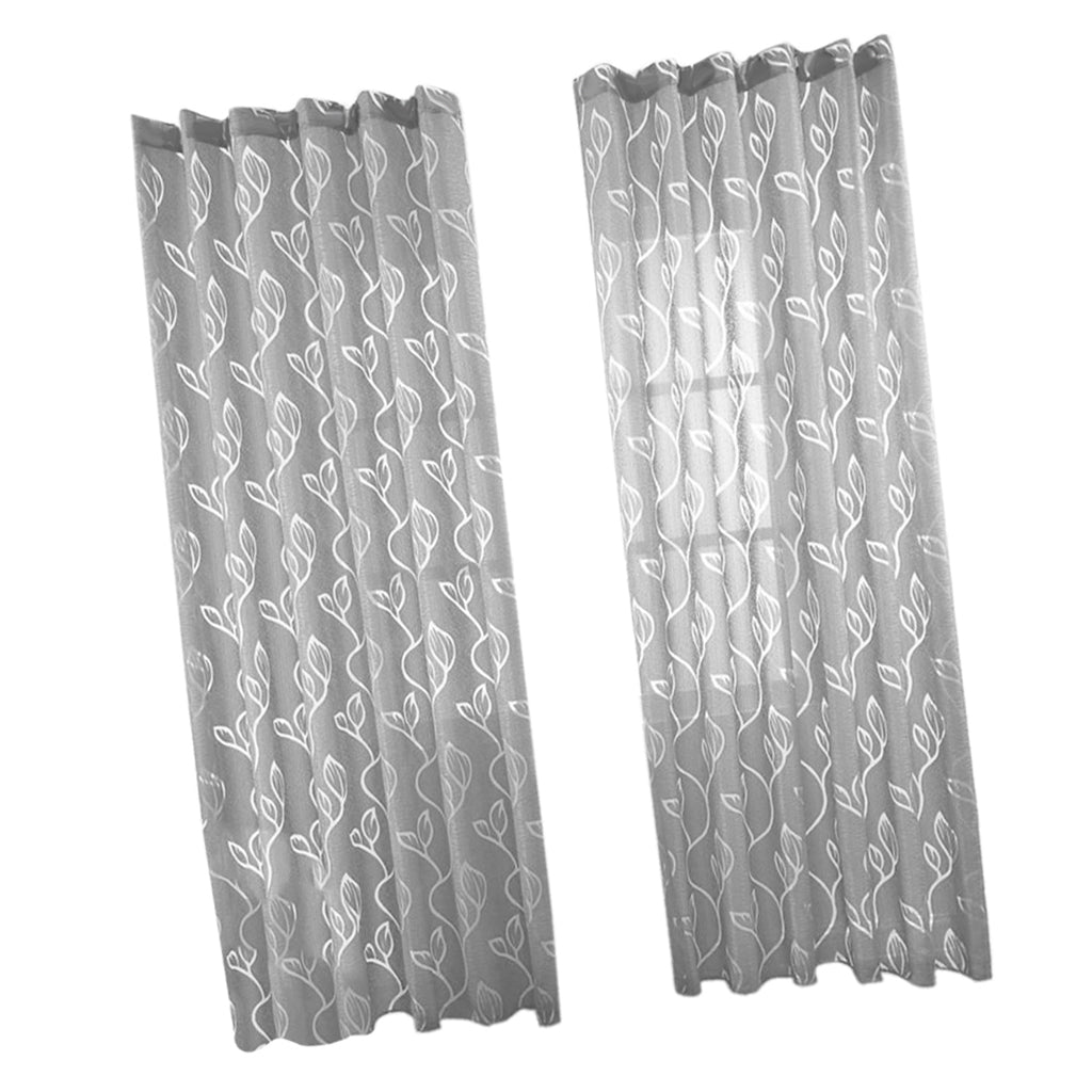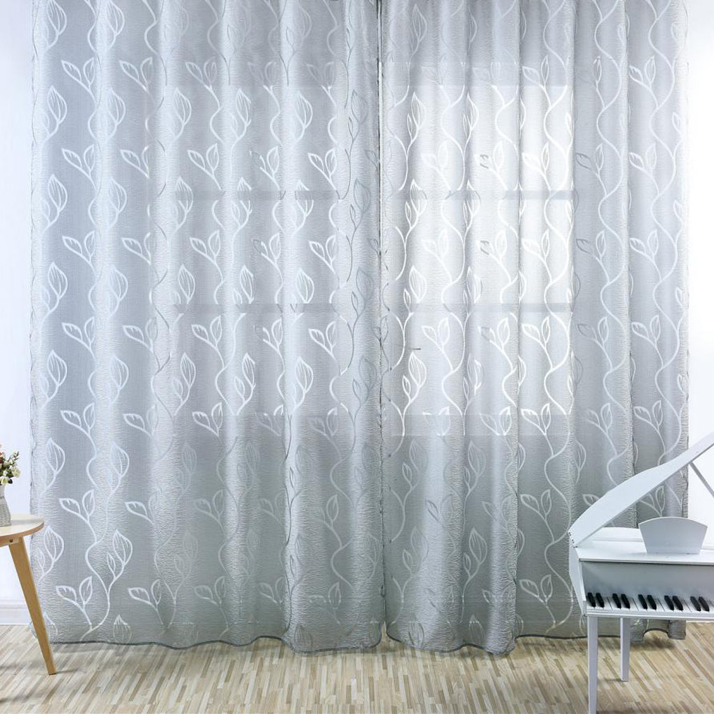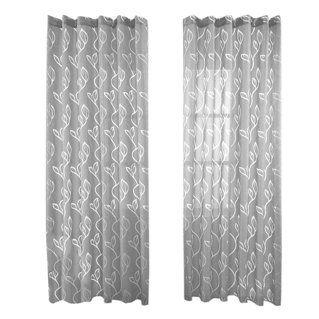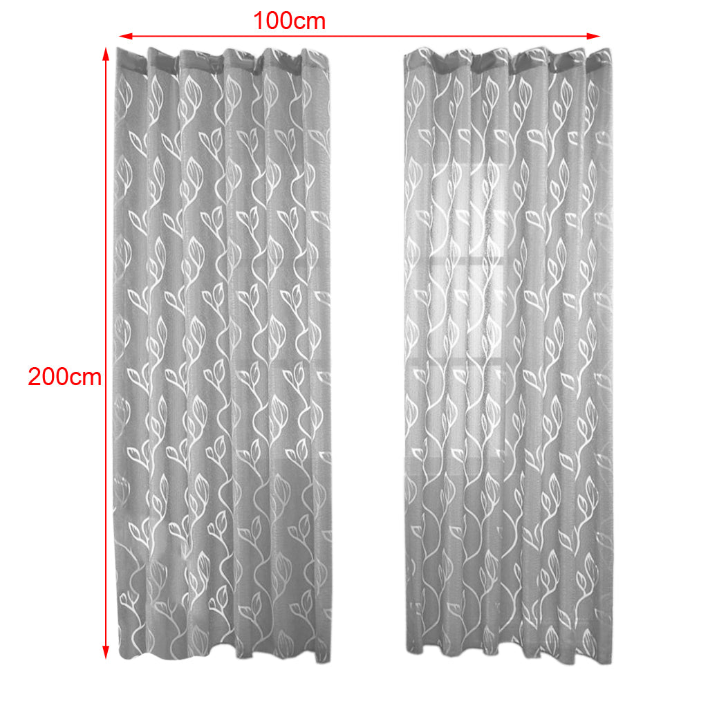 100*200cm Window Voile Curtain Panel Sheer Tulle Drape Leaf Gray