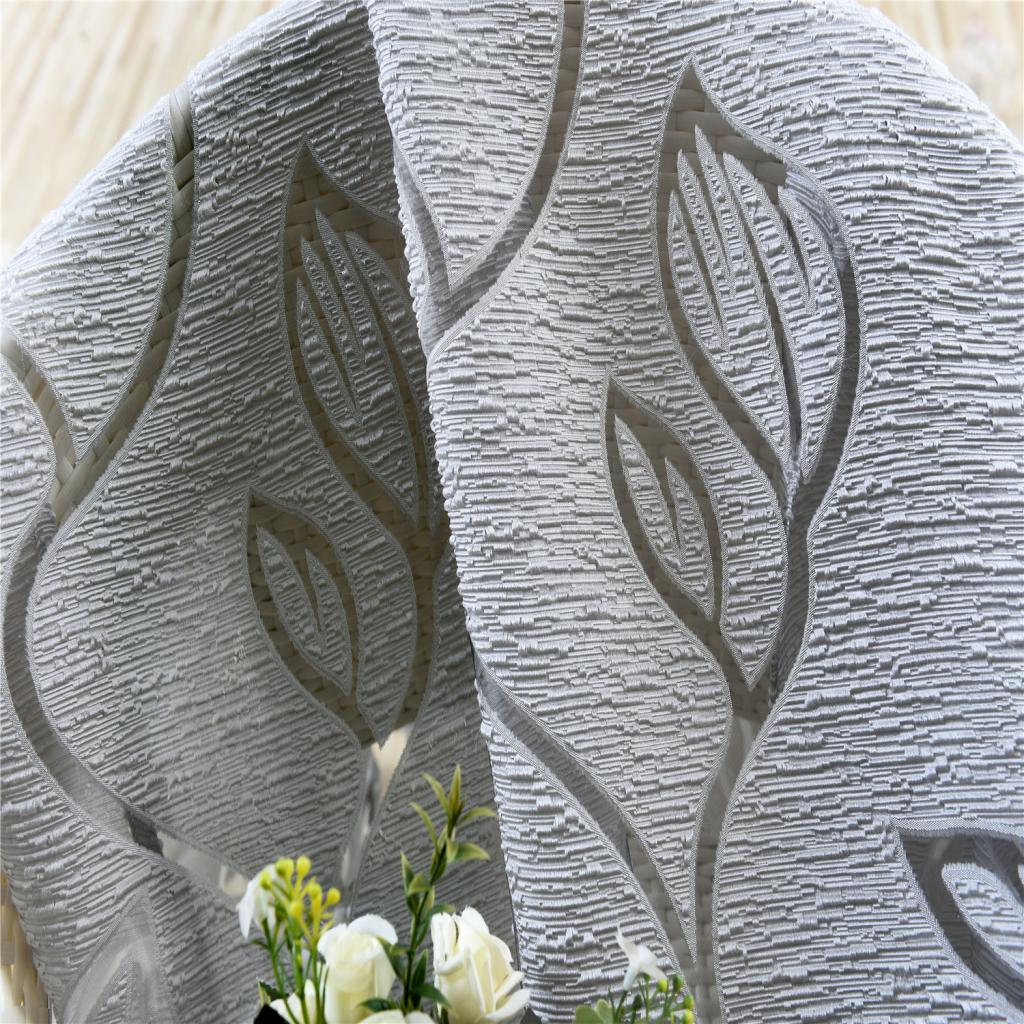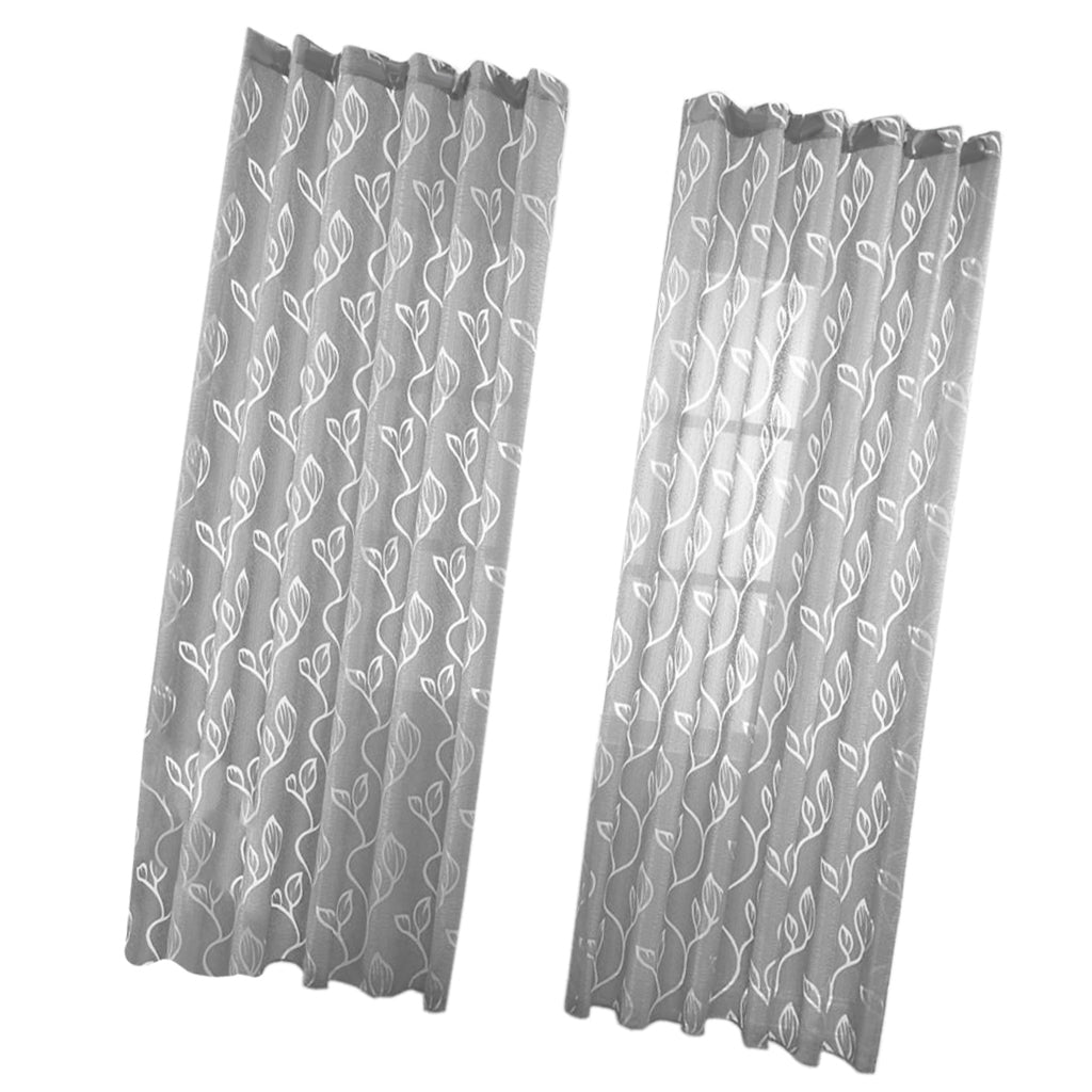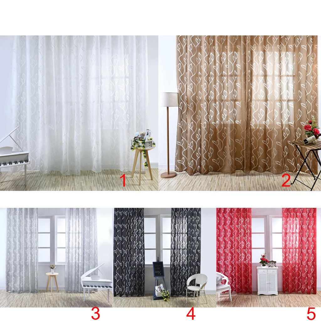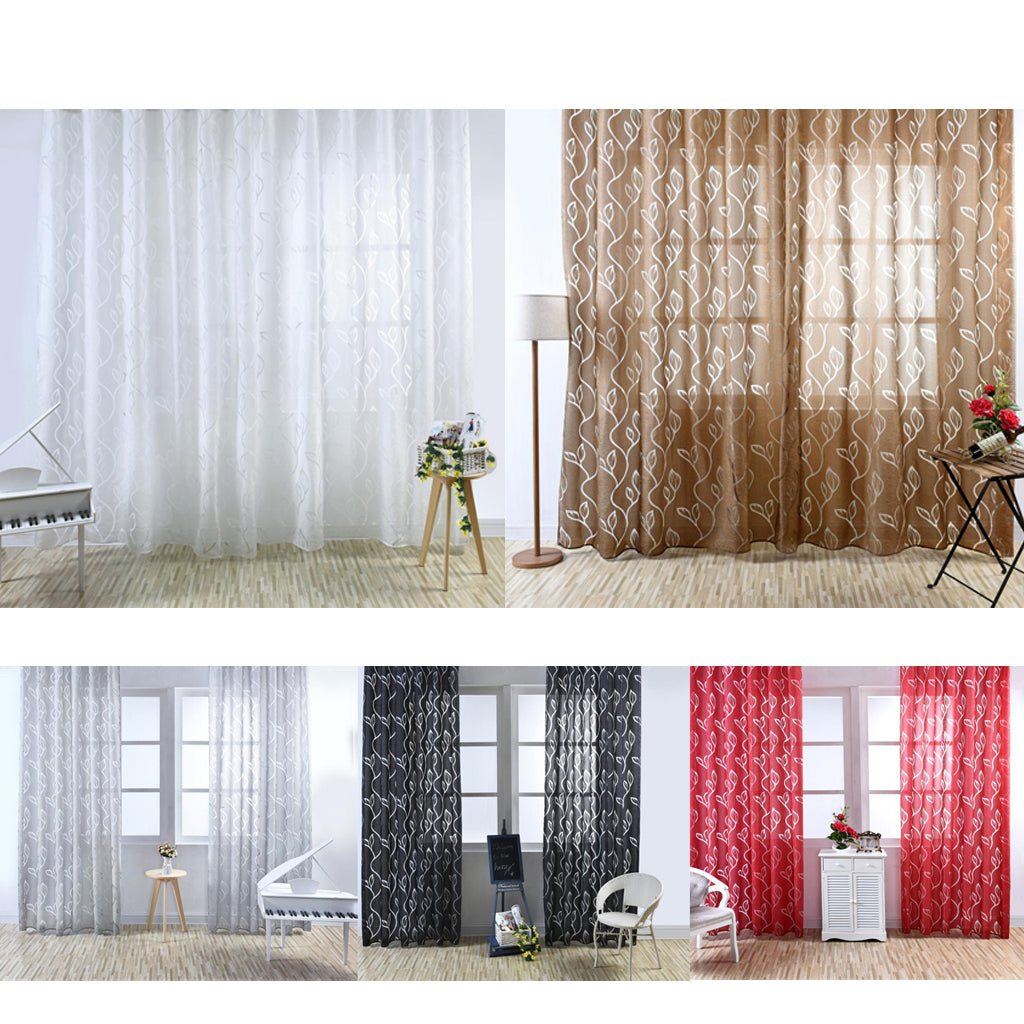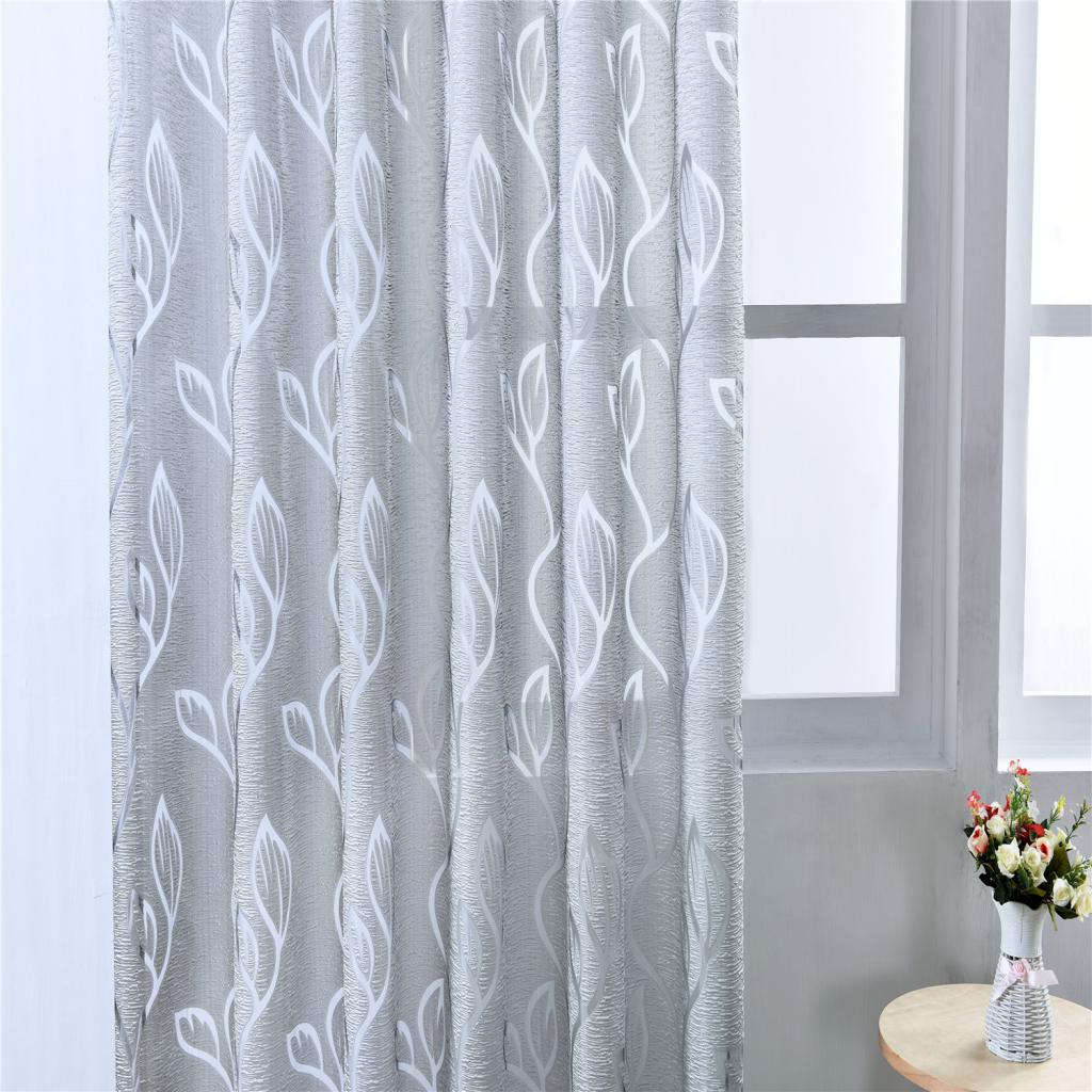 100*200cm Window Voile Curtain Panel Sheer Tulle Drape Leaf Gray