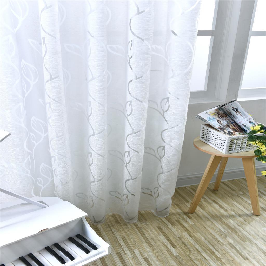 100*250cm Leaves Bubble Snuff Curtain Sheer Voile Tulle Curtain White