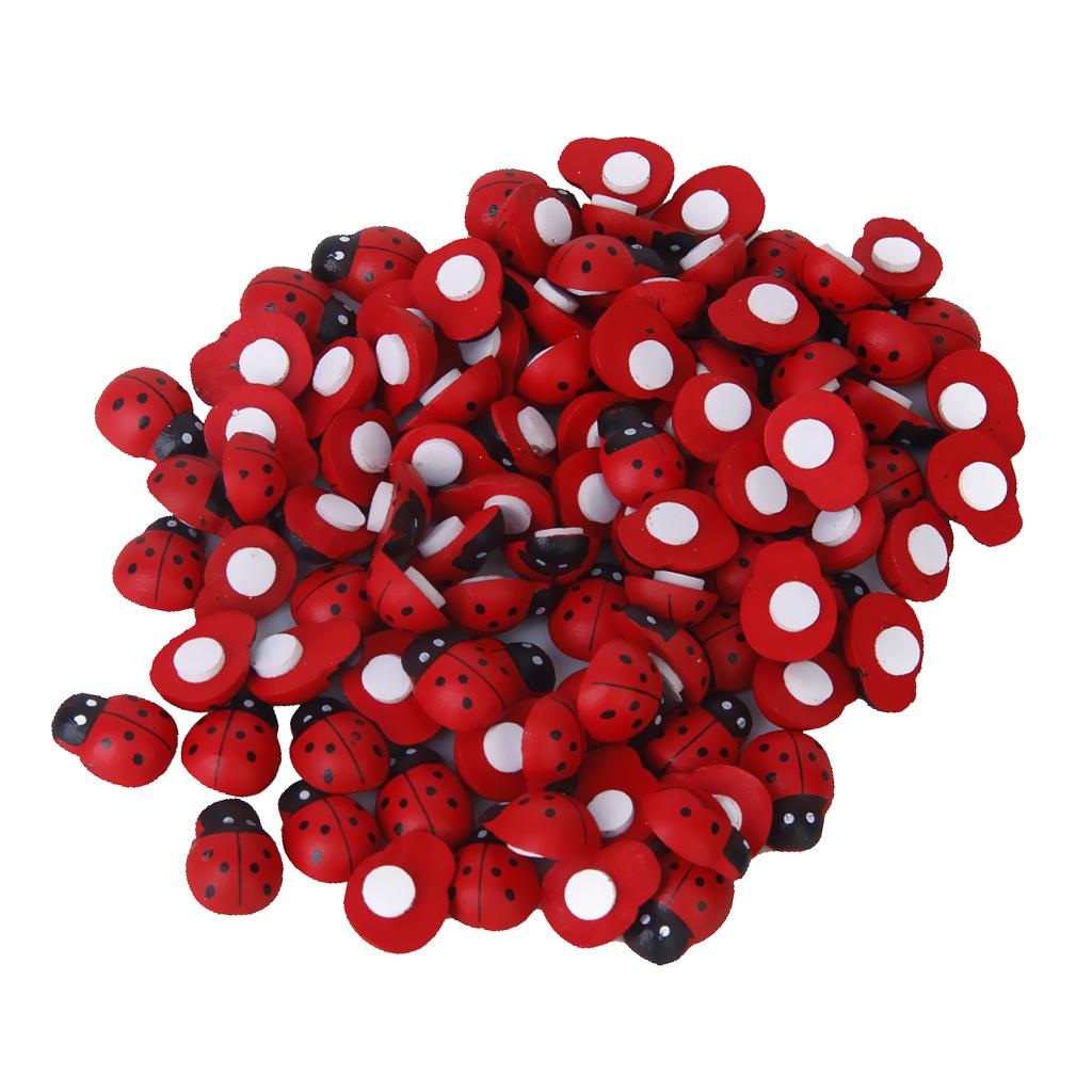 100 Pcs Small Wooden Beetle Sponge Sticker Ladybug Sticker