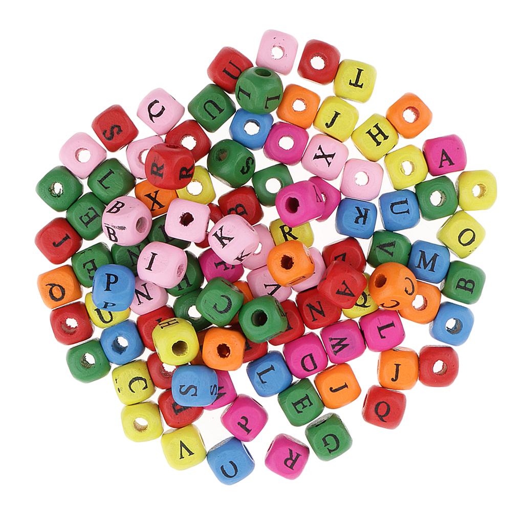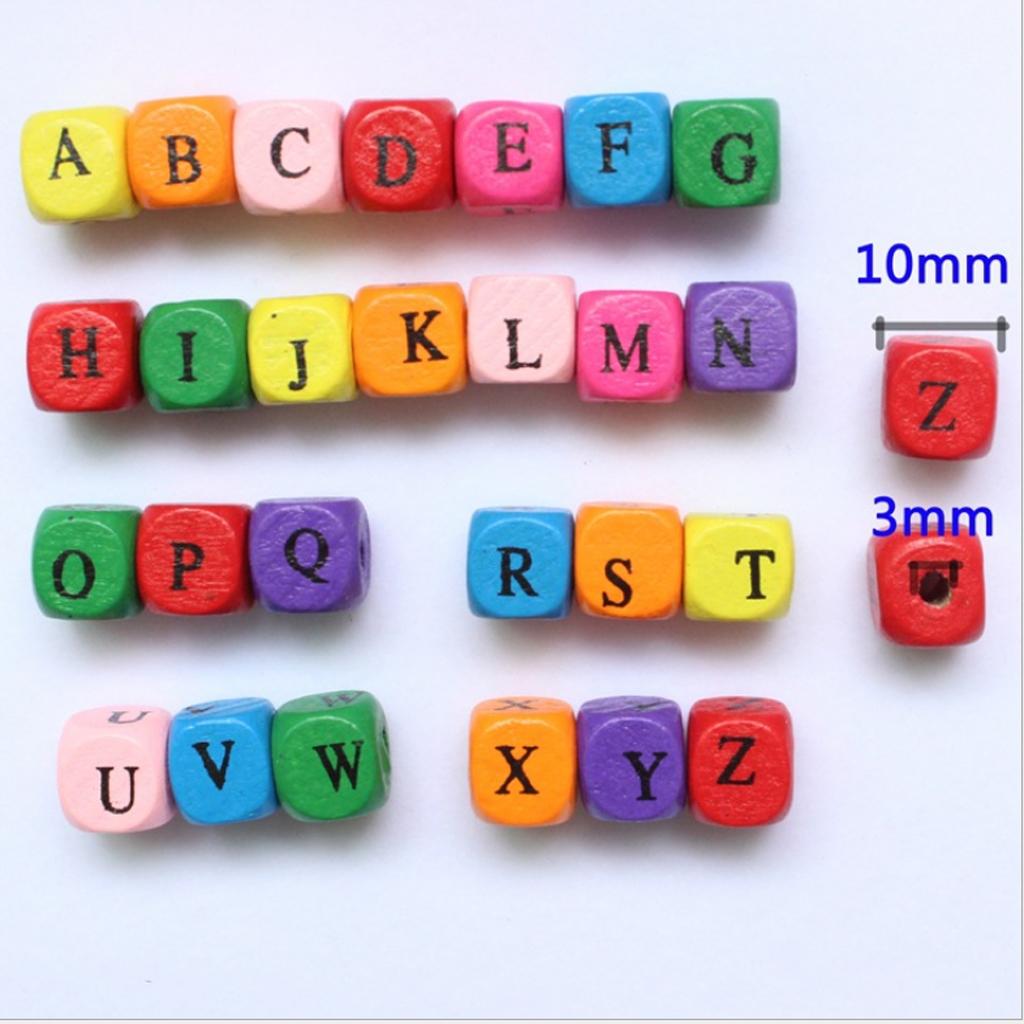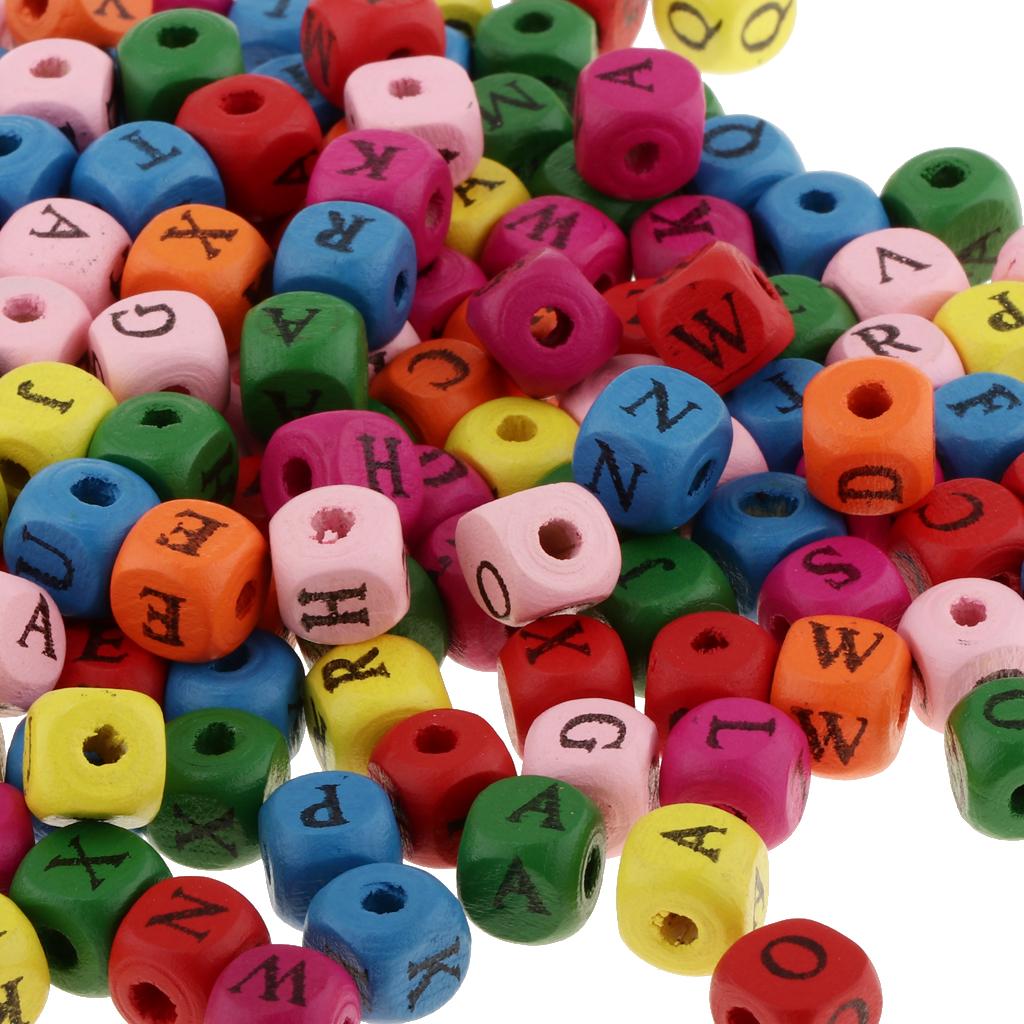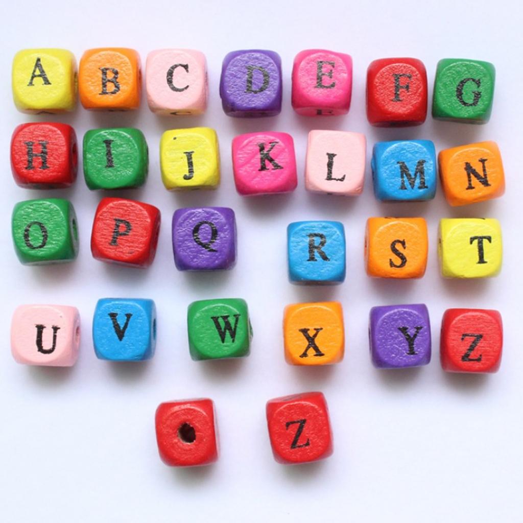 100 Pieces 10mm Wooden Alphabet Letters Printed Cube Beads
