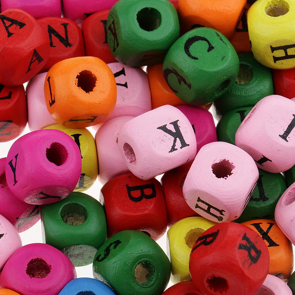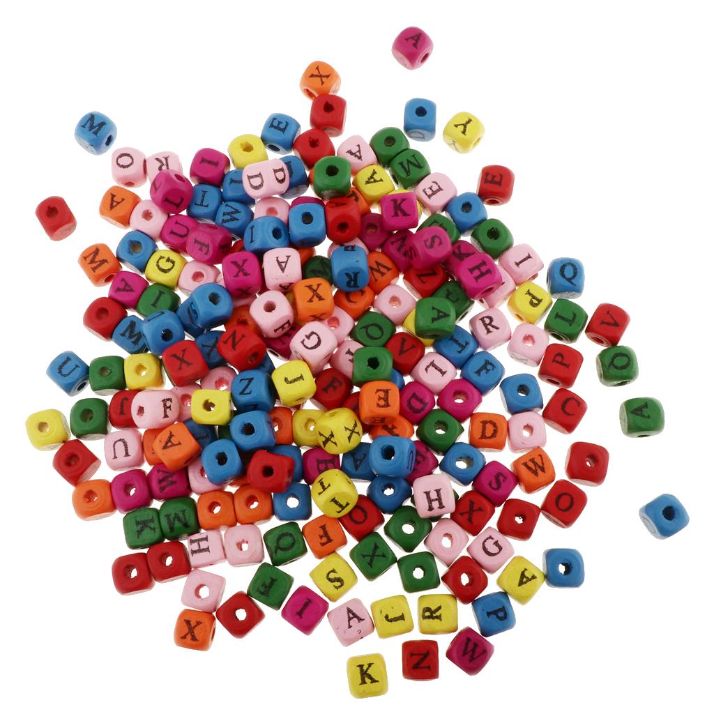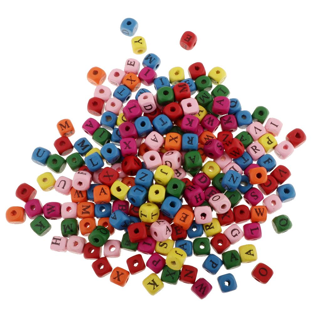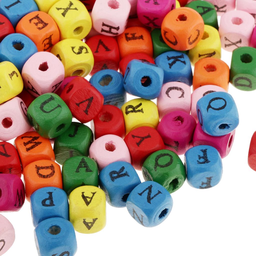 100 Pieces 10mm Wooden Alphabet Letters Printed Cube Beads