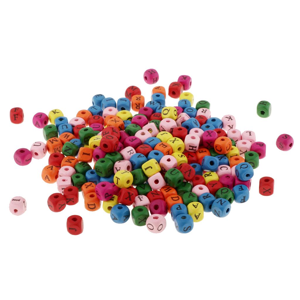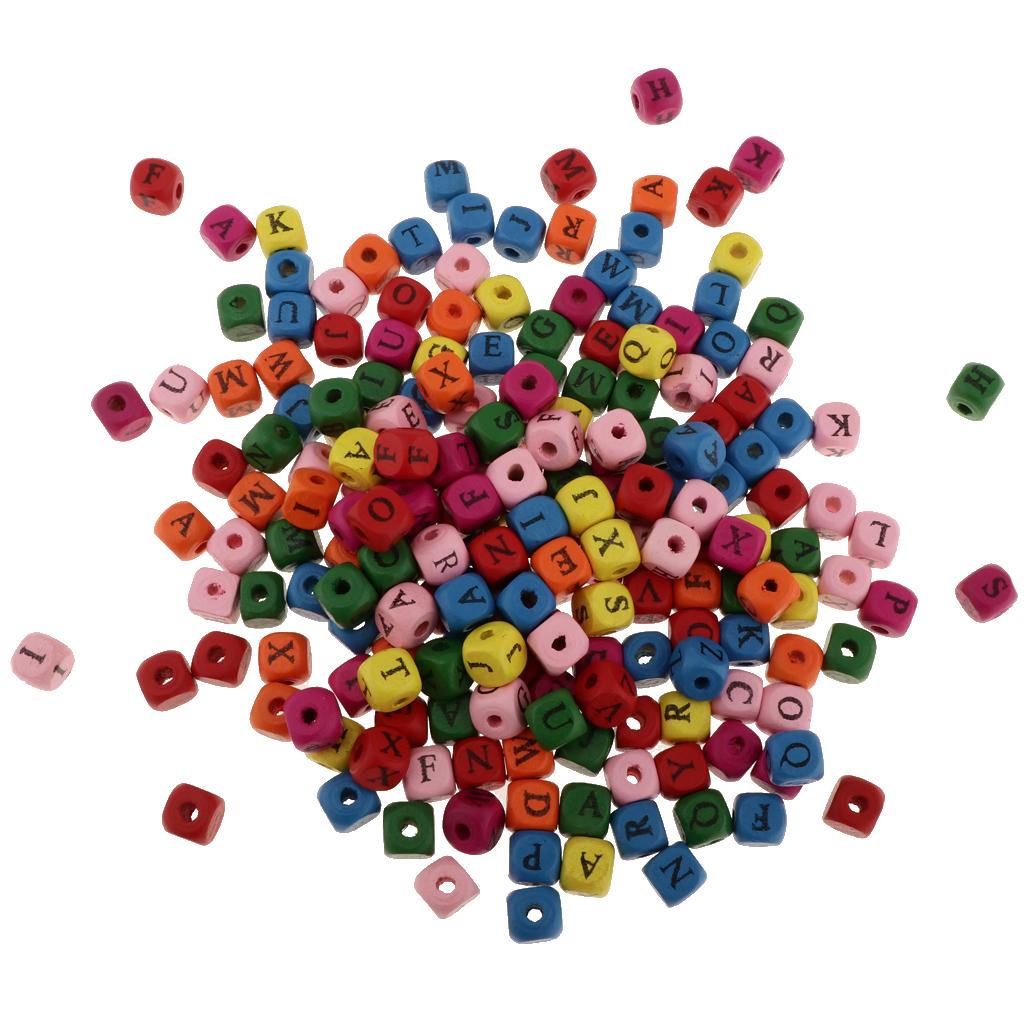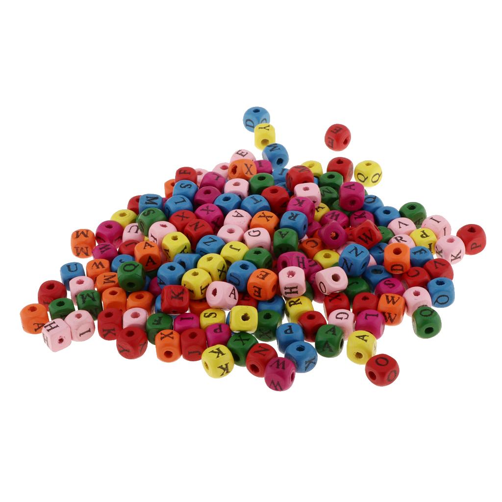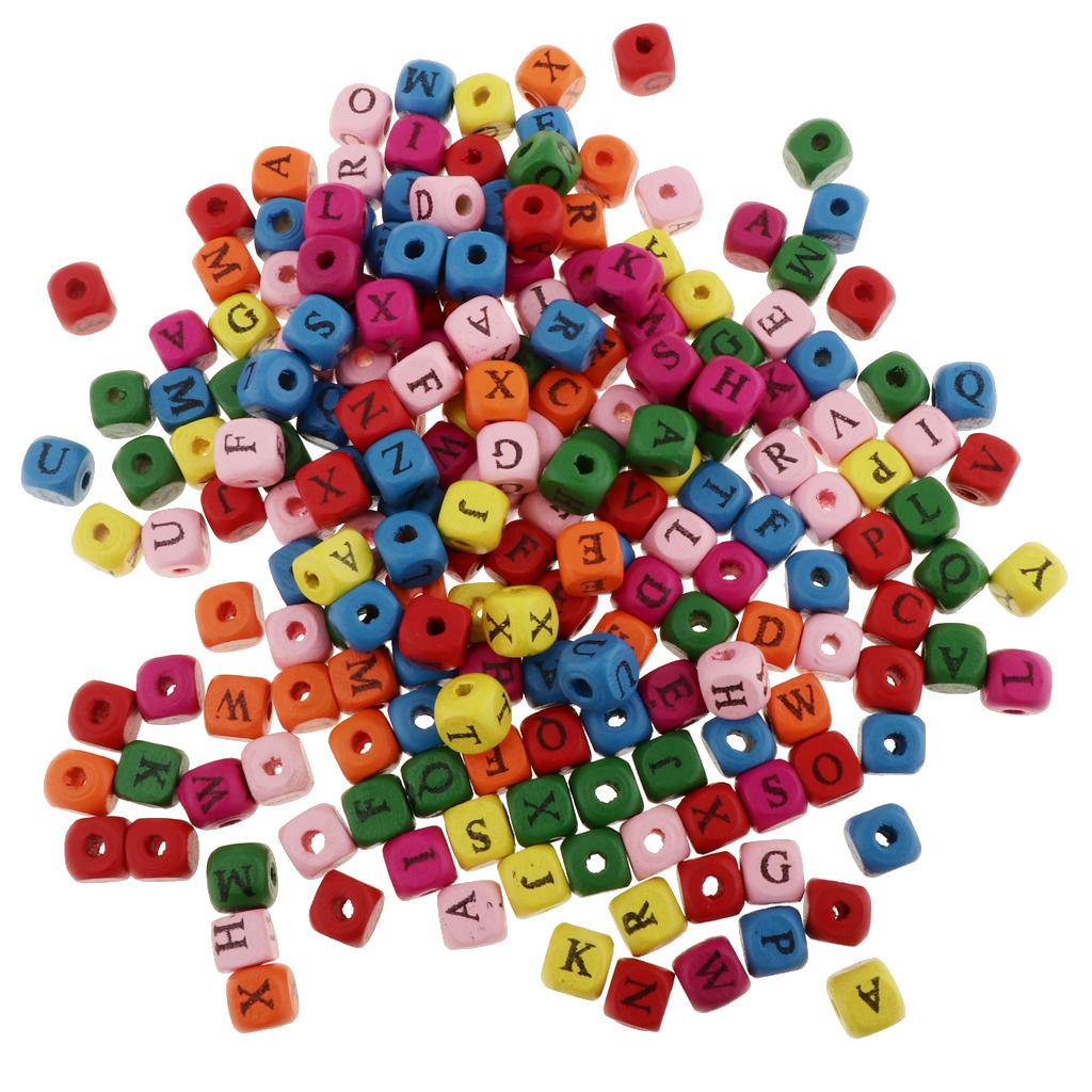 100 Pieces 10mm Wooden Alphabet Letters Printed Cube Beads