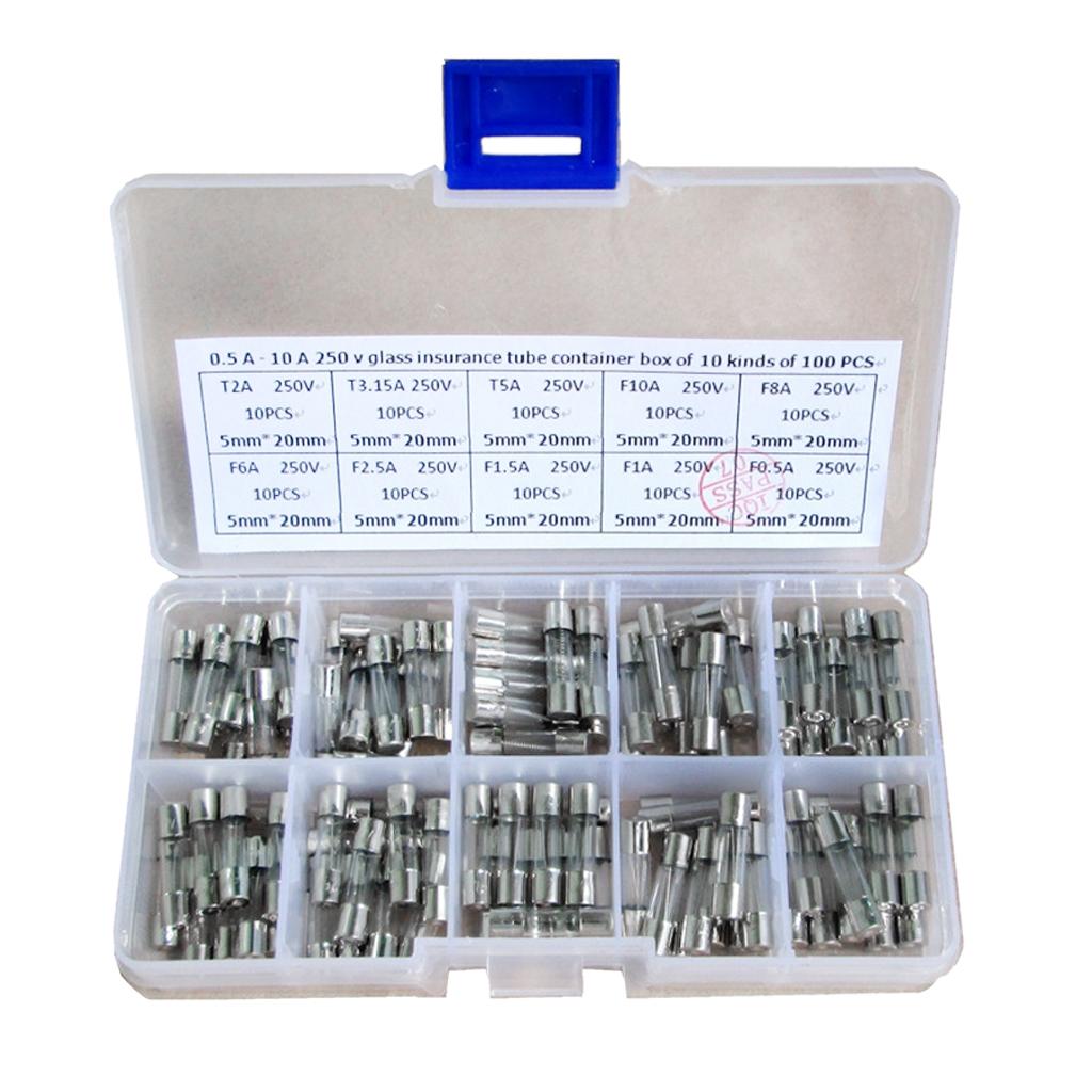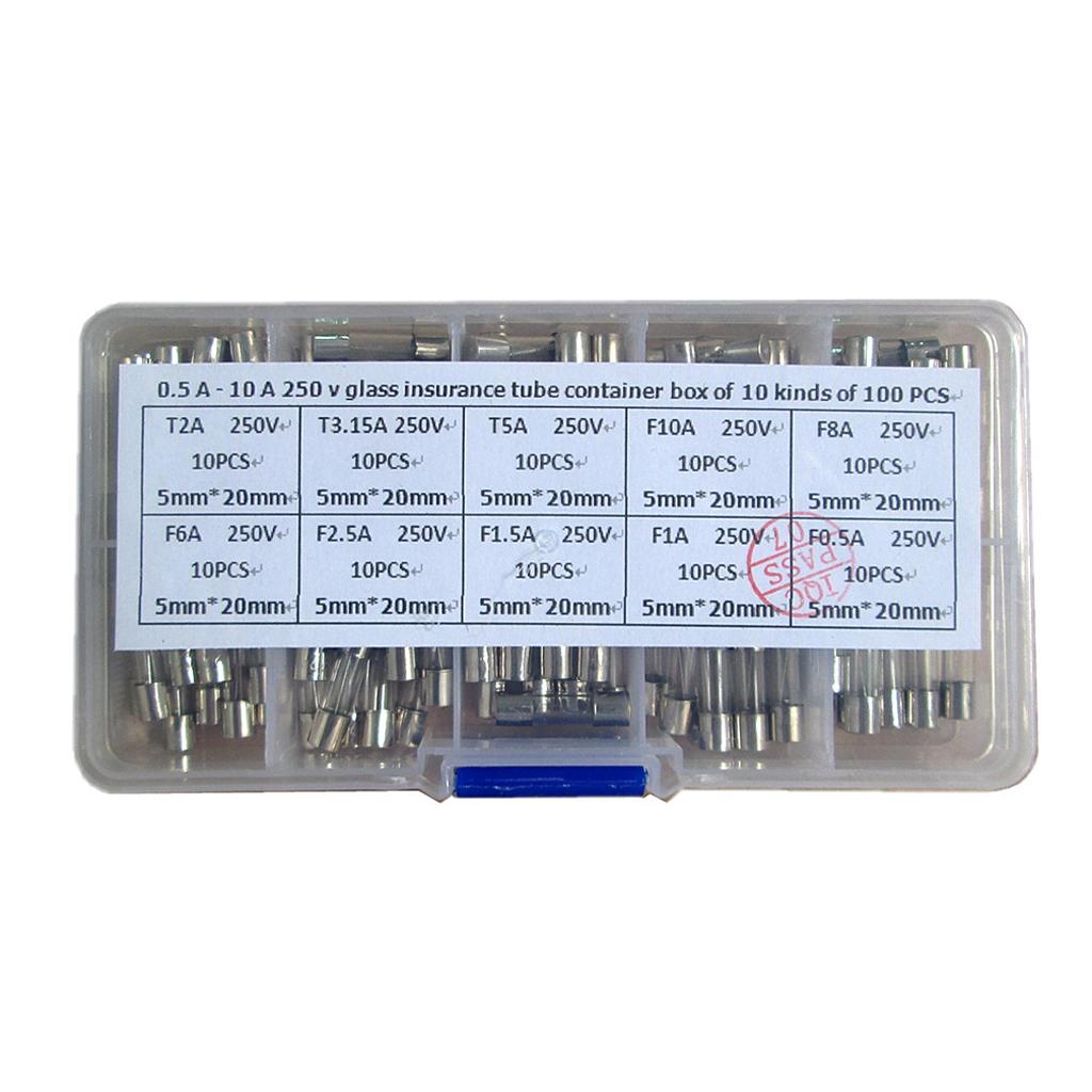 Package Includes 10 kinds of fuse tube: T2A 250V; T3.15A 250V; T5A 250V; F10A 250V; F8A 250V; F6A 250V; F2.5A 250V; F1.5A 250V; F1A 250V;F0.5A 250V