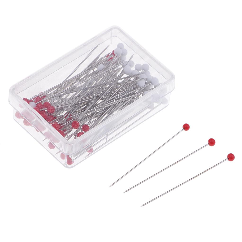 100 Piece Red White Sewing Pins Ball Glass Head Pins Straight Quilting Pins For Dressmaker Jewelry Making Decoration with Box