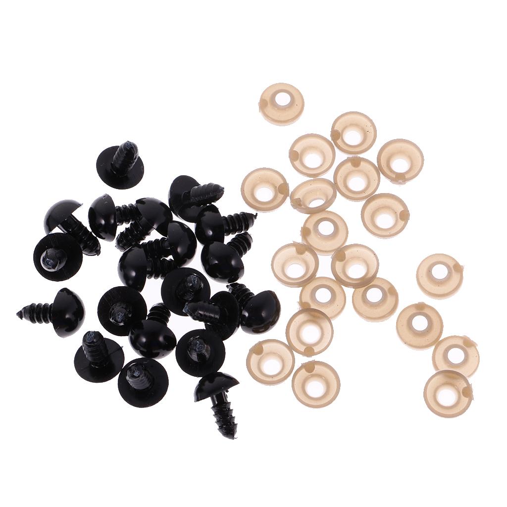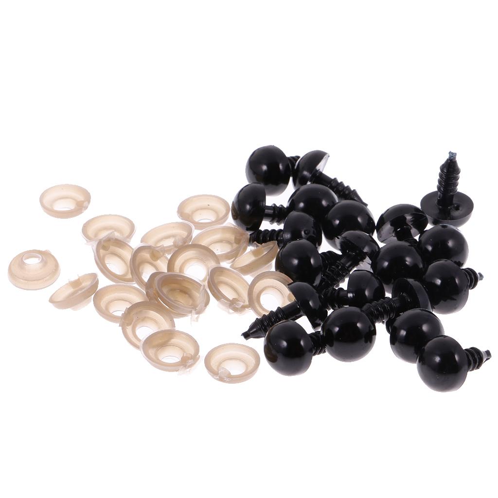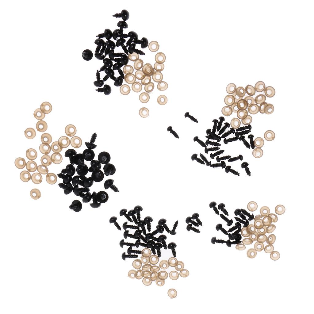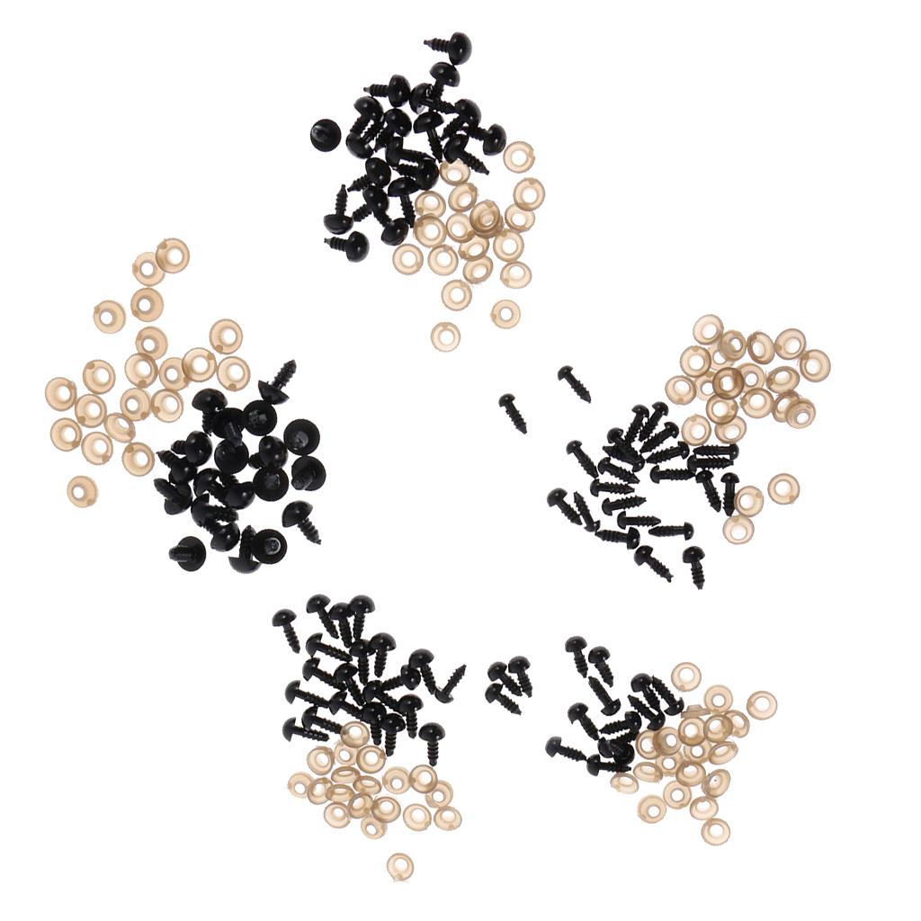Black 6-12mm 100 Pieces Safety Eyes Black Plastic for Making Teddy Bear Doll Animal Crafts