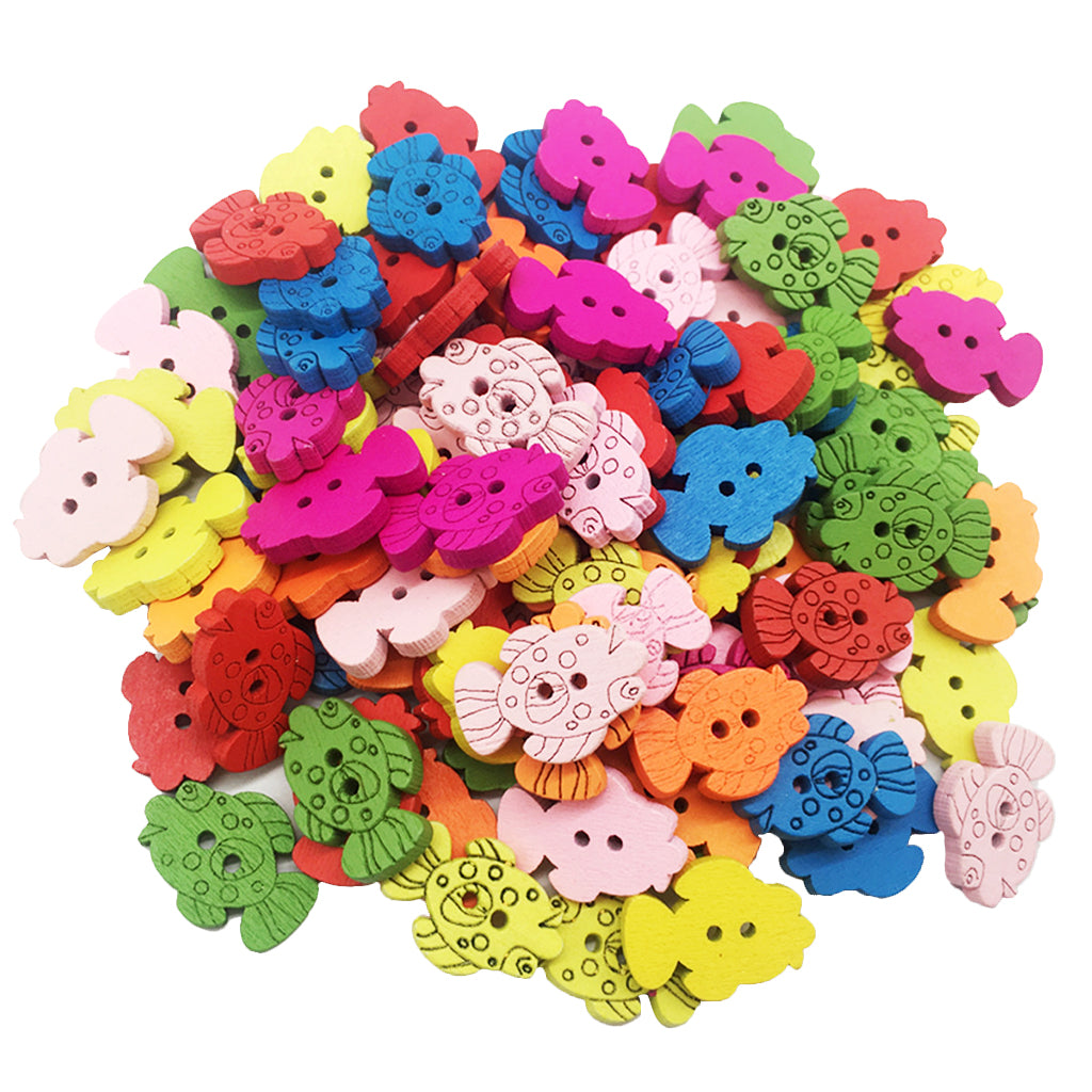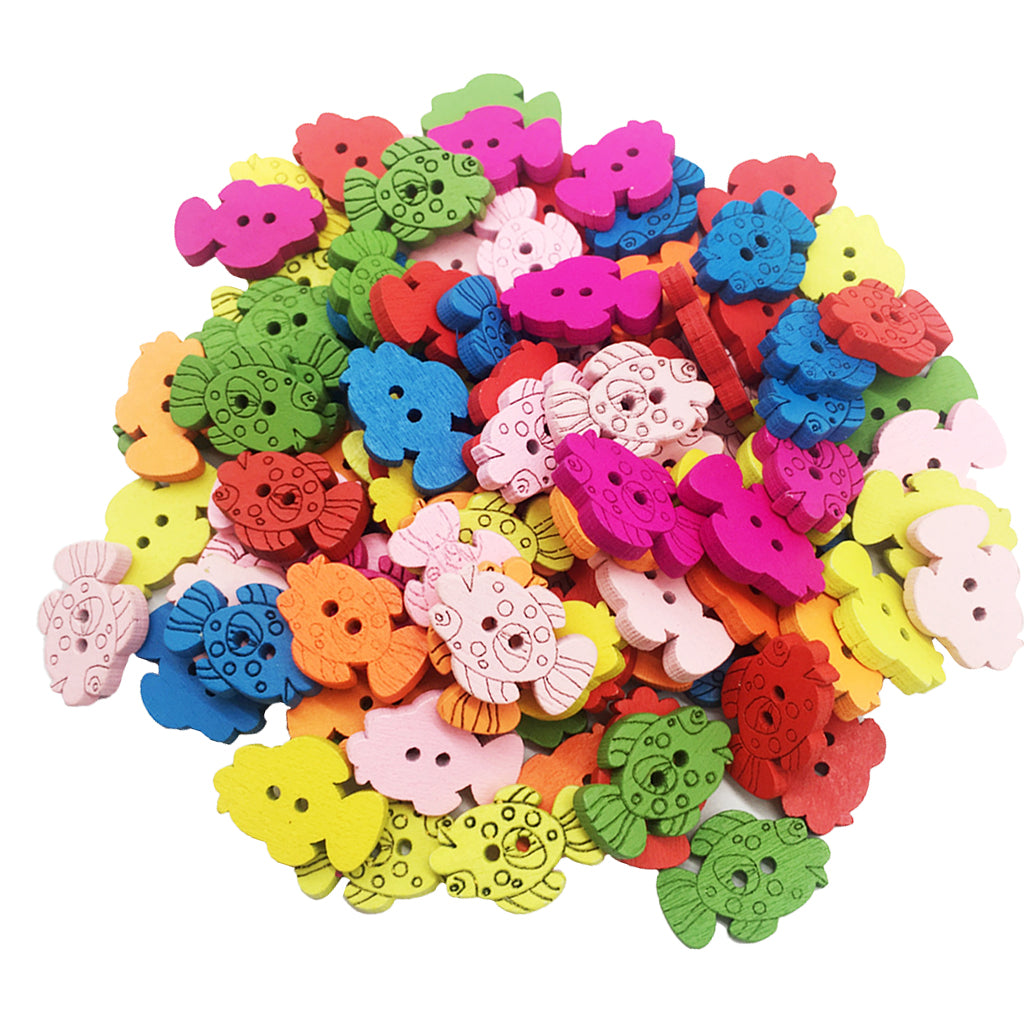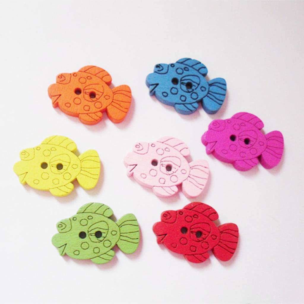 Beautiful Assorted Color animal Fishes wood wooden buttons with 2 flat holes