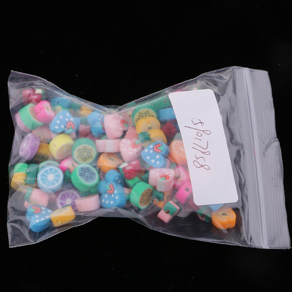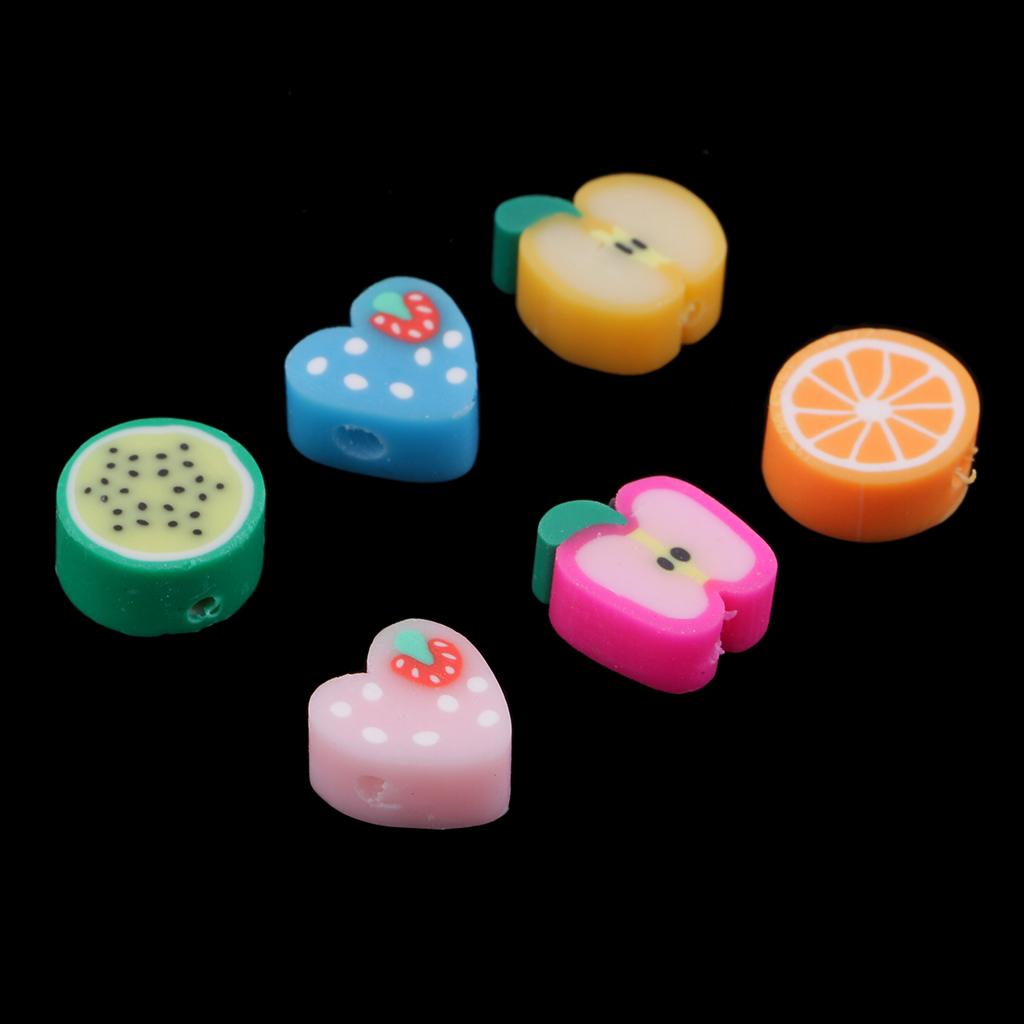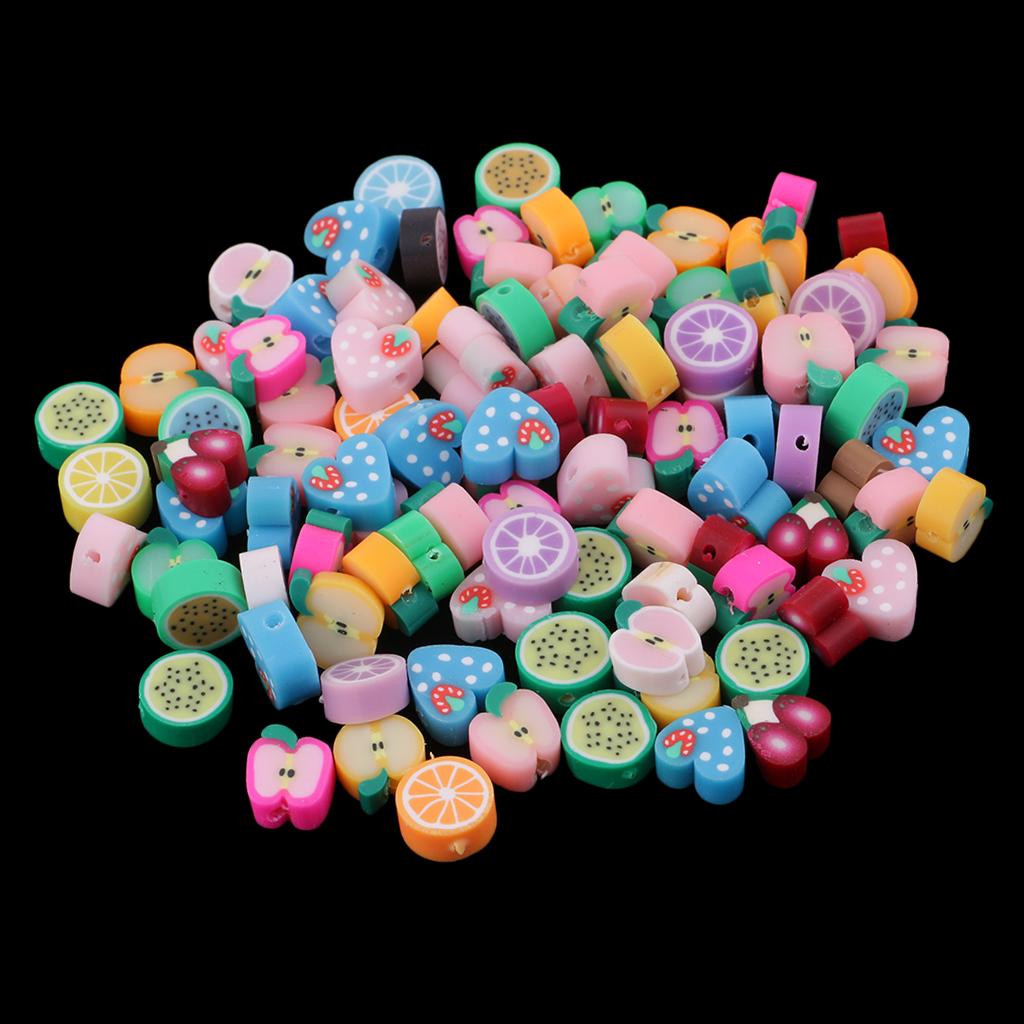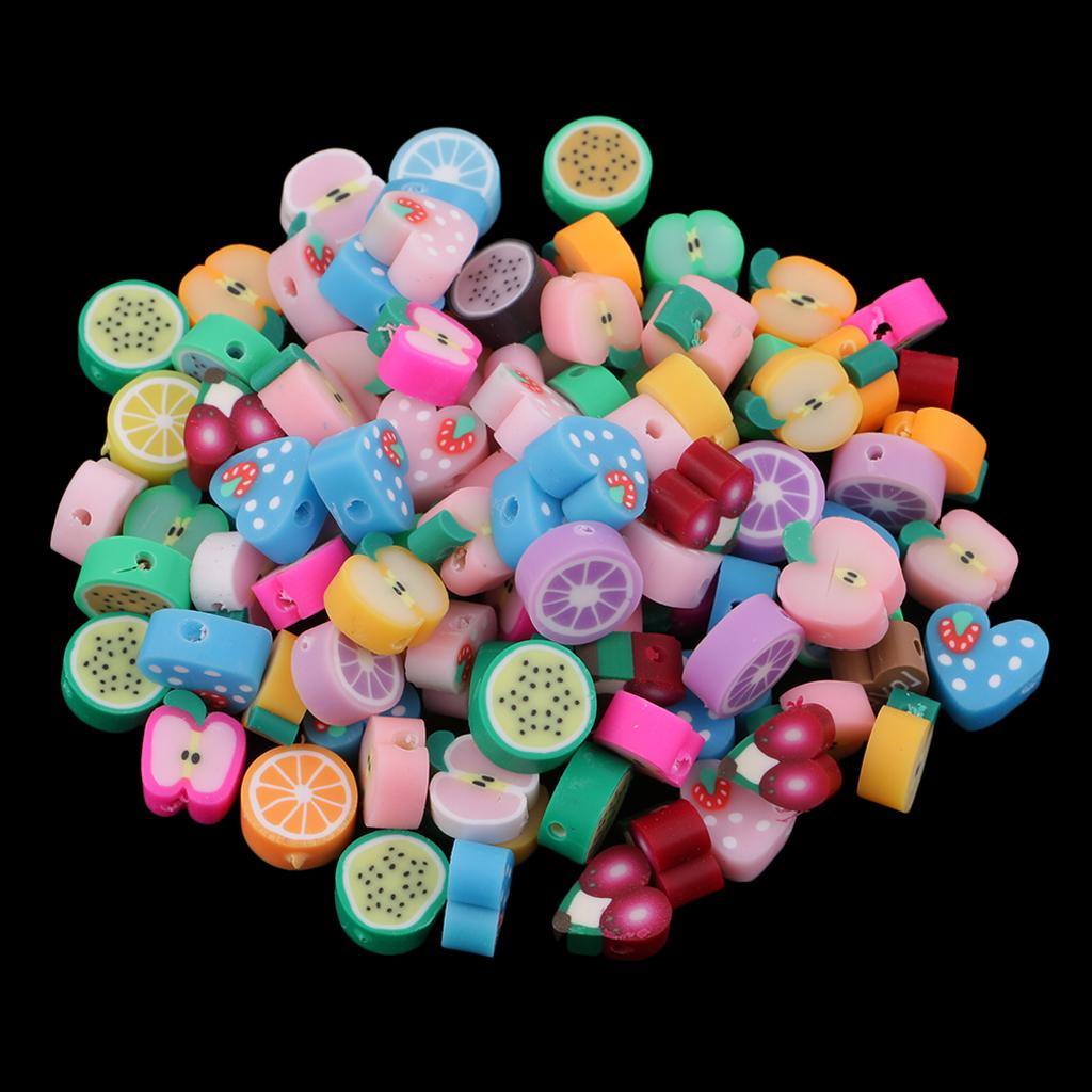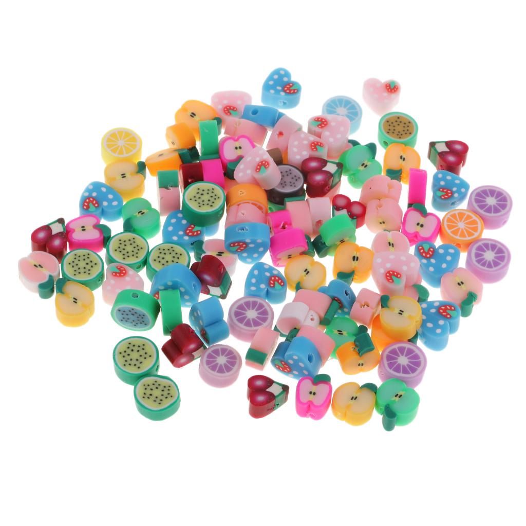 100 Pieces Assorted Fruits Slices Polymer Clay Beads Charms Accessories for Jewelry Making Kids Craft DIY