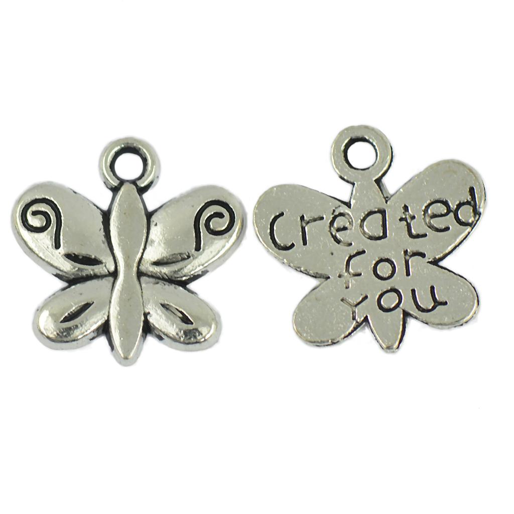 Alloy Butterfly with "Created for You" inscribed Jewelry Making charms pendant.