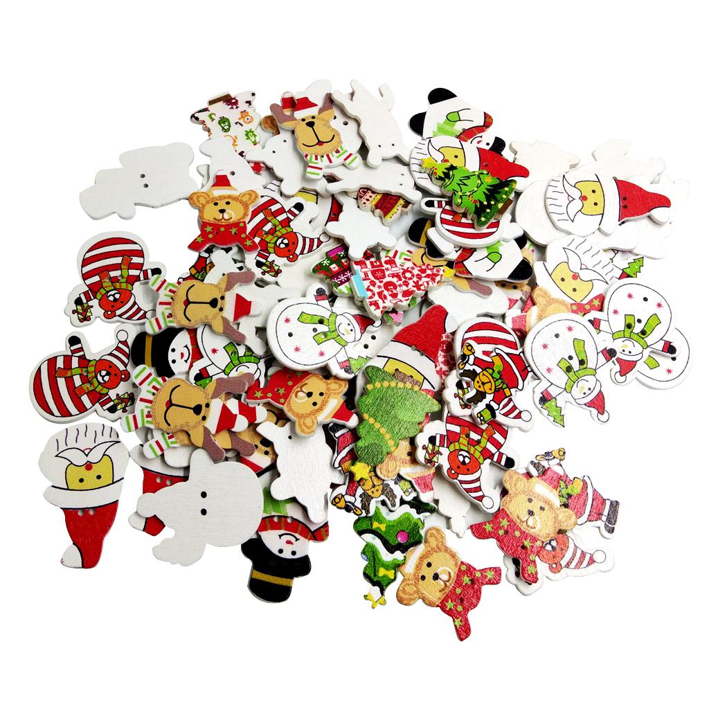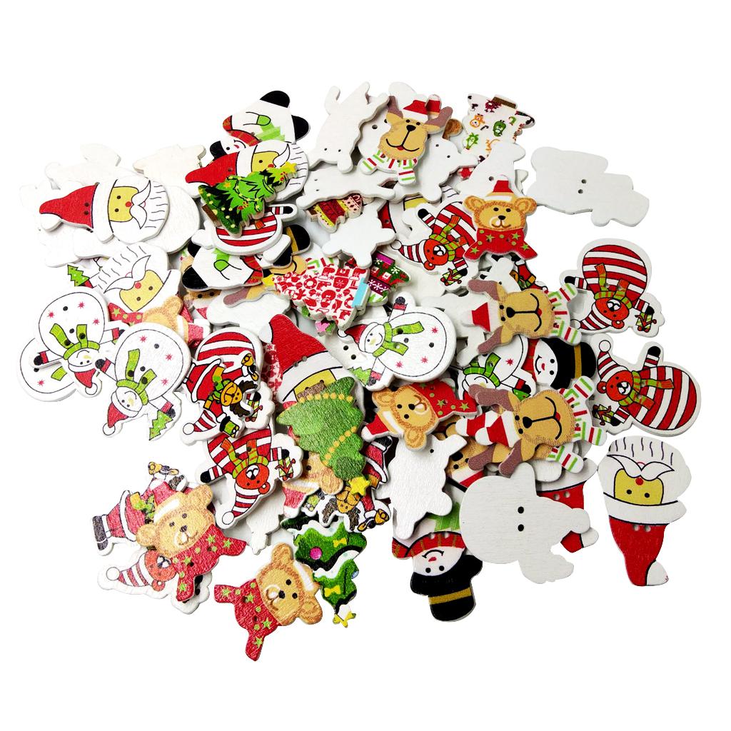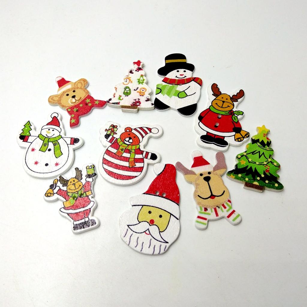 Mixed shape and colors wooden printed Christmas embellishment buttons.