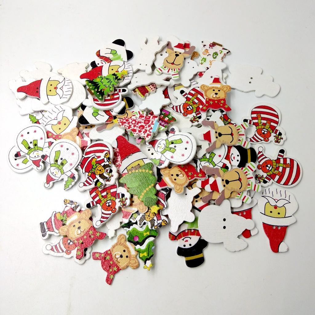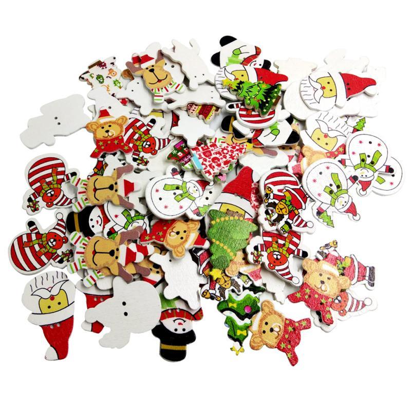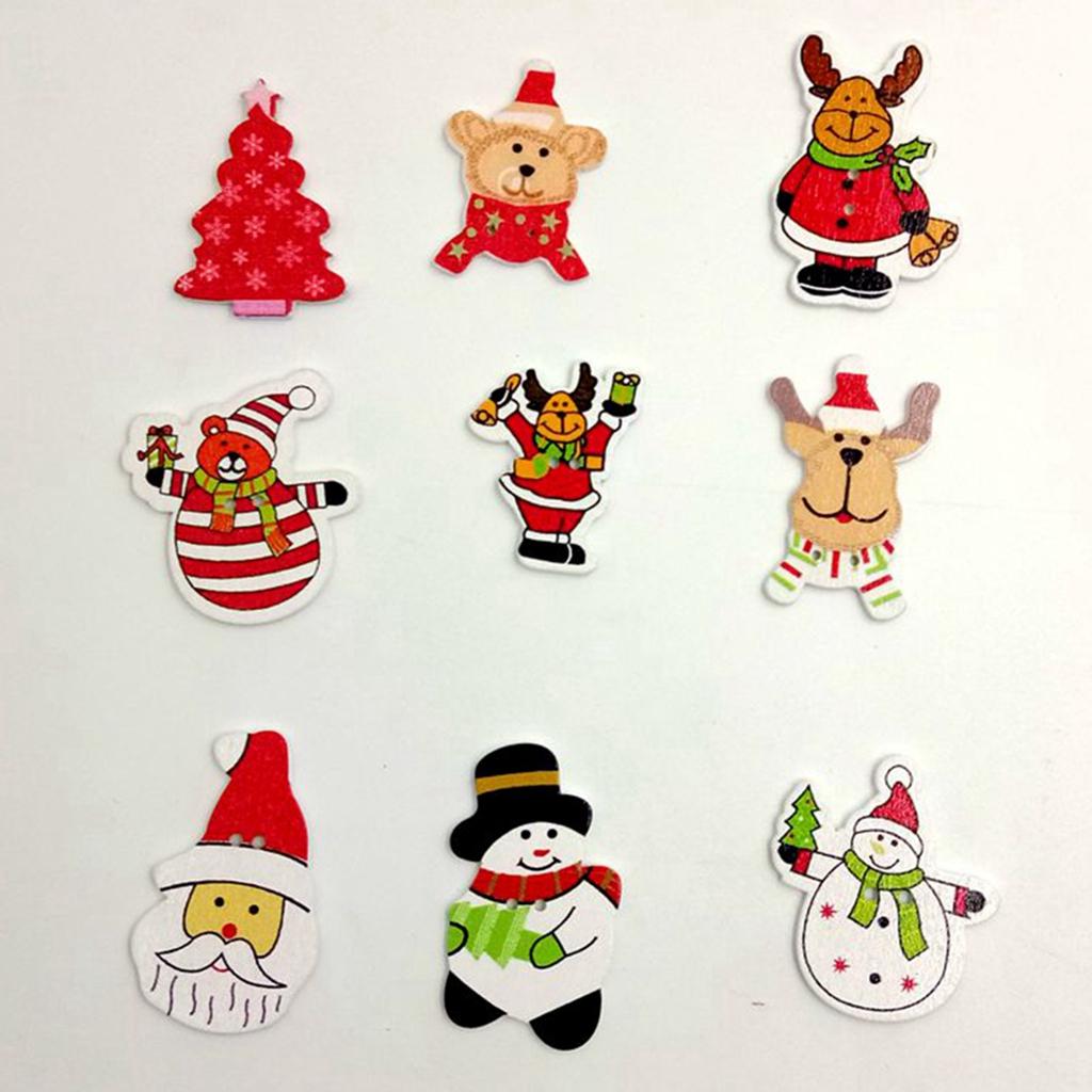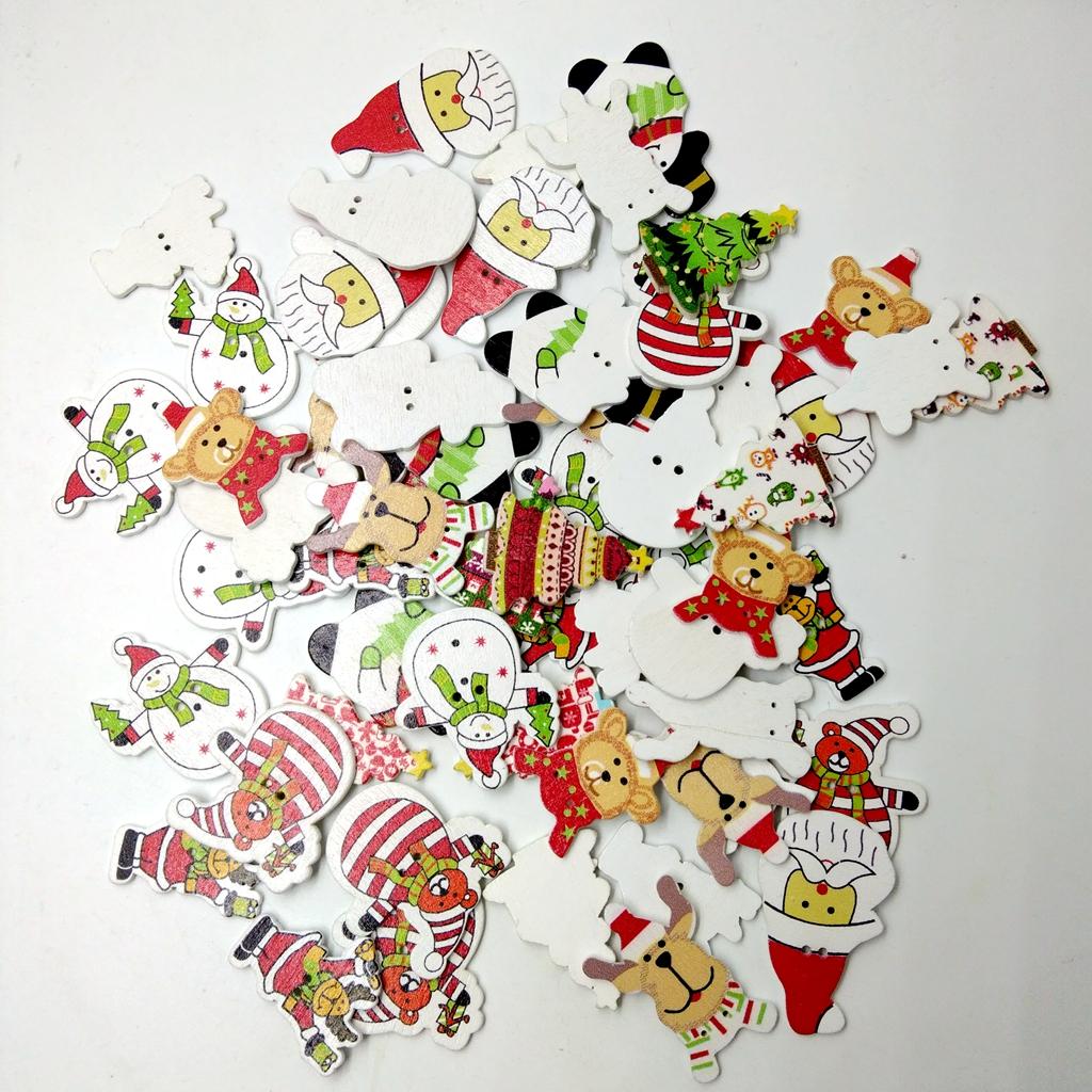 Mixed shape and colors wooden printed Christmas embellishment buttons.