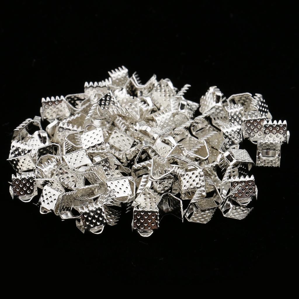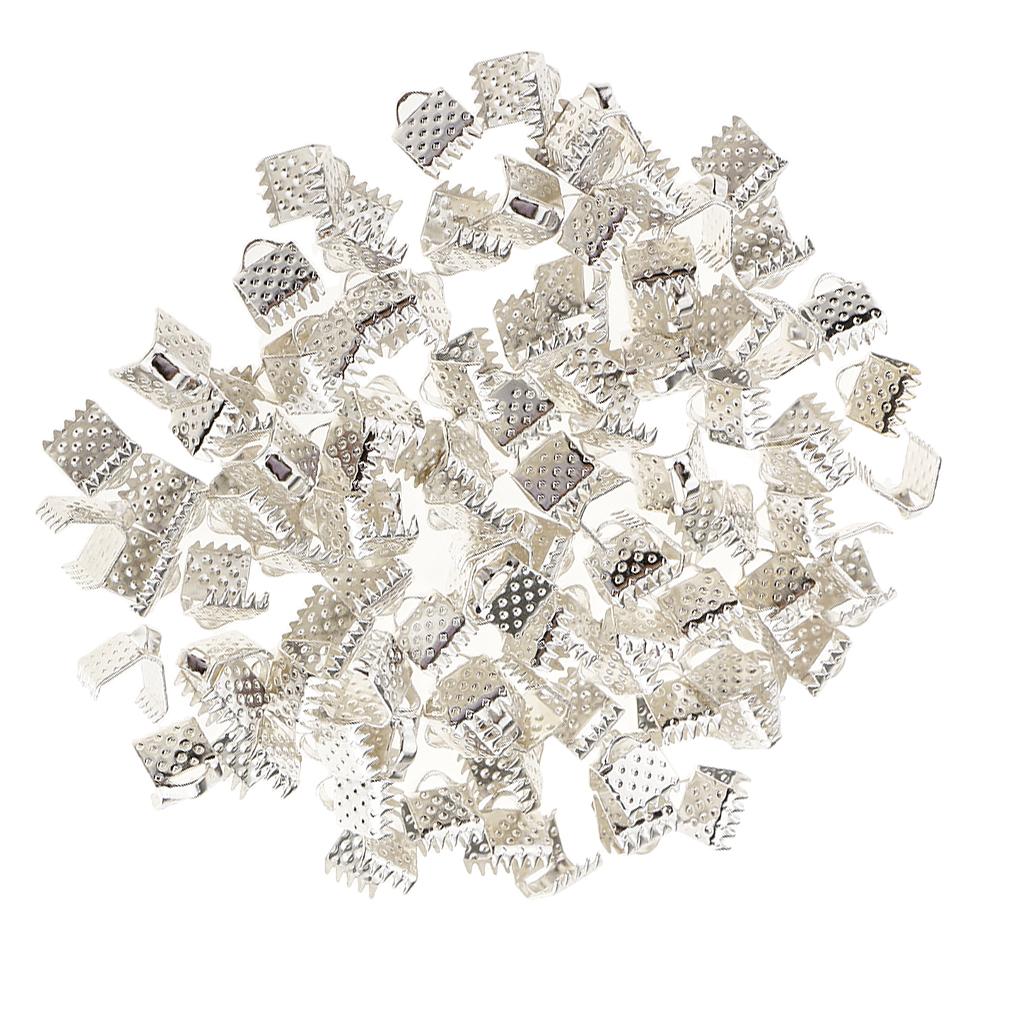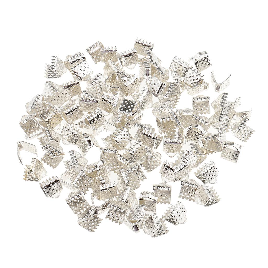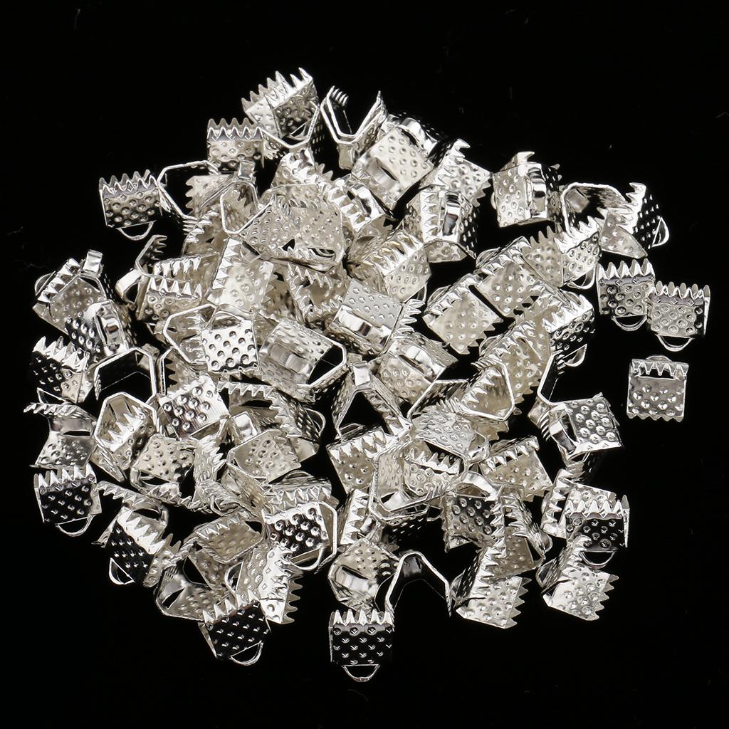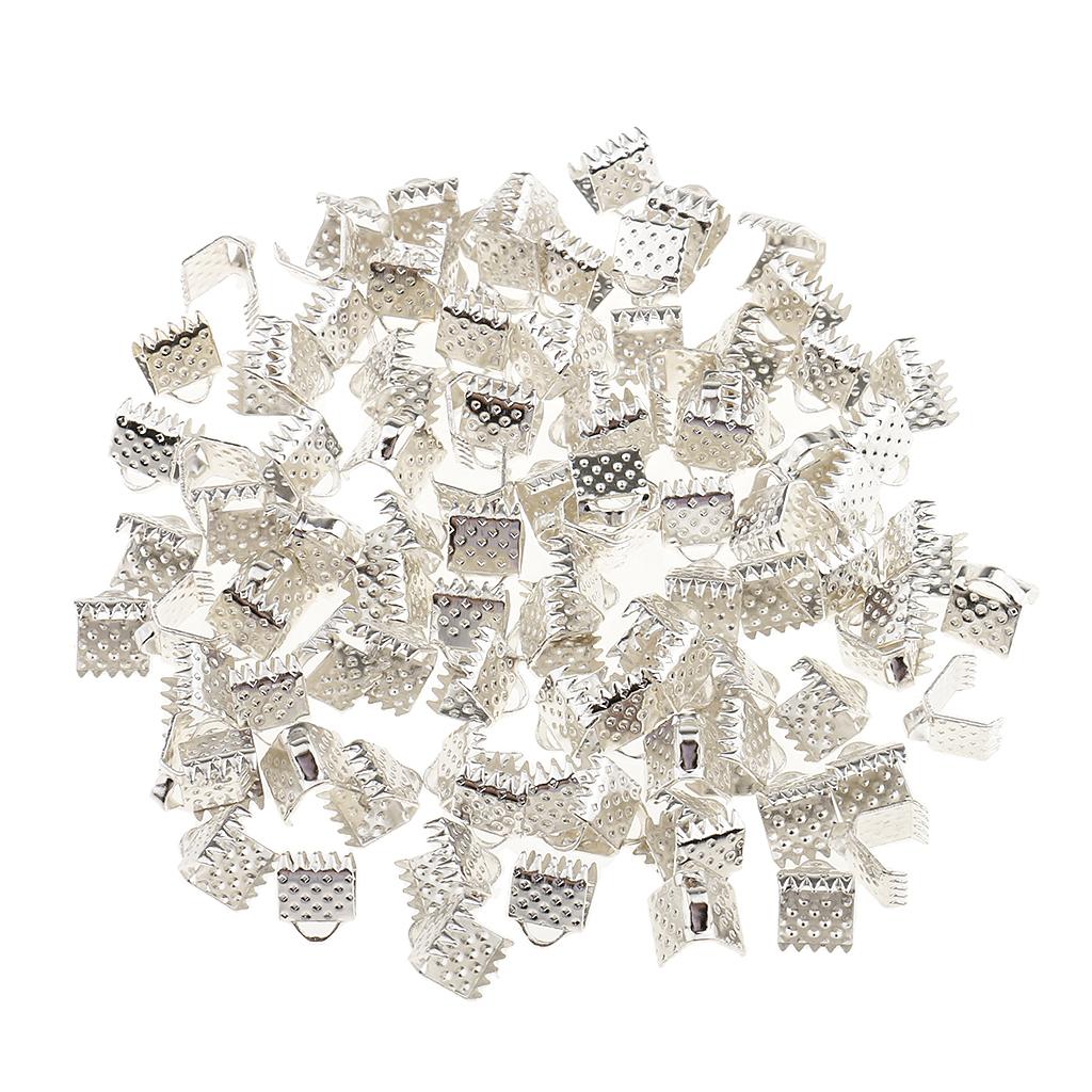 100 Pieces Clasps Clamps Fasteners End for Jewelry Making 6mm Gloss Silver