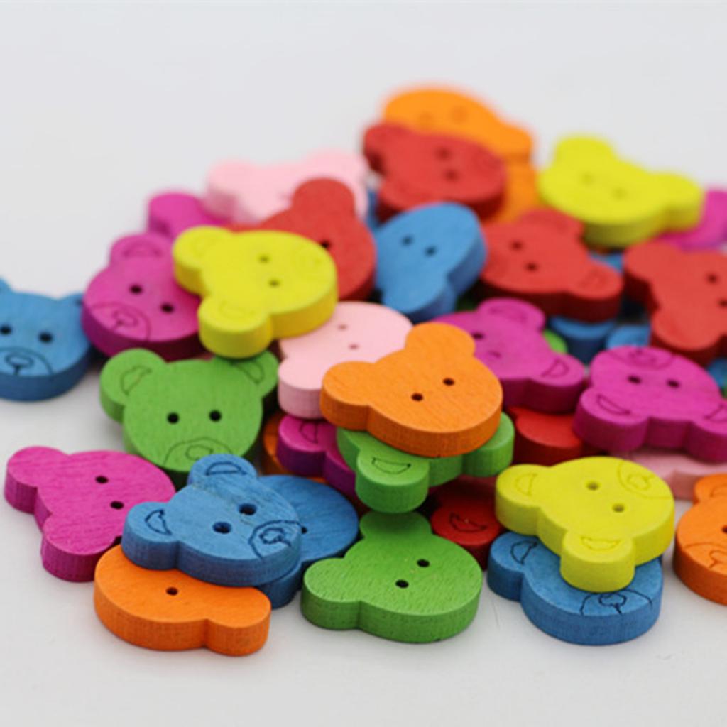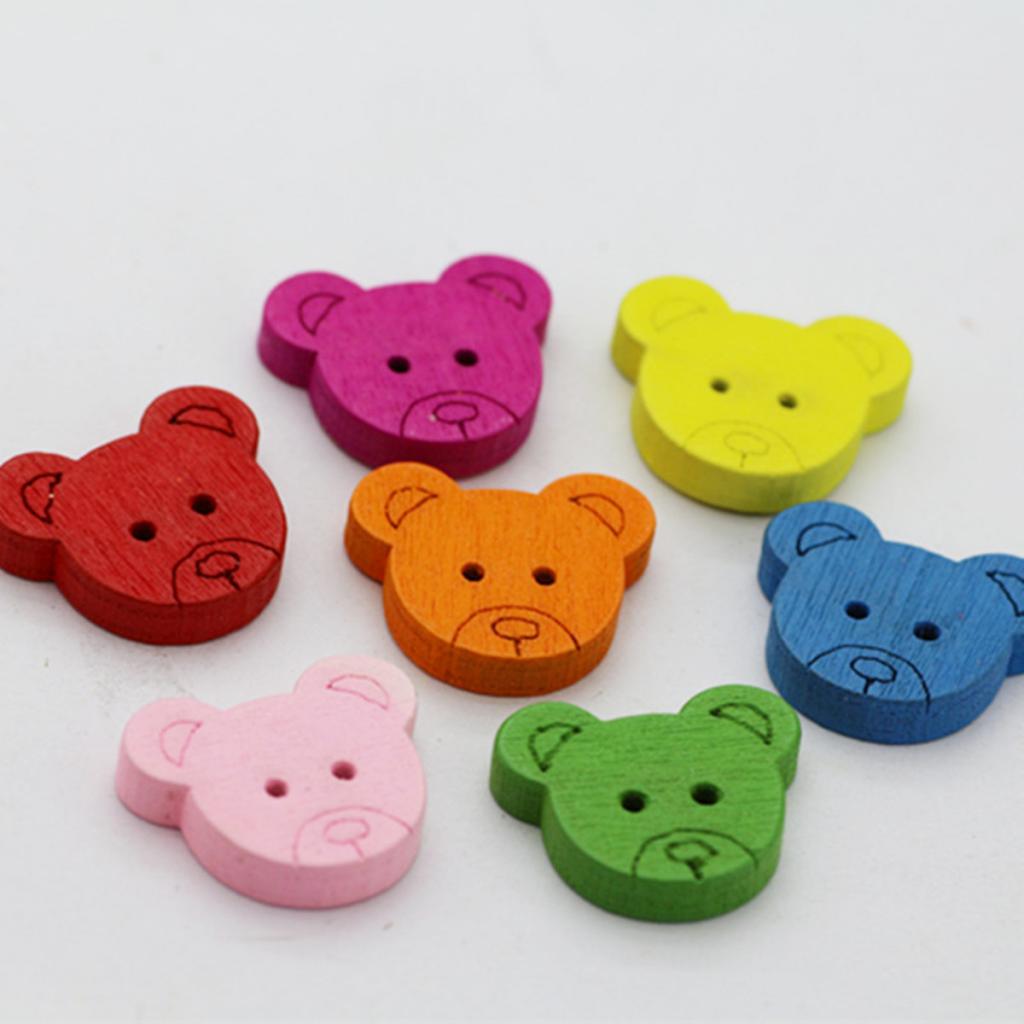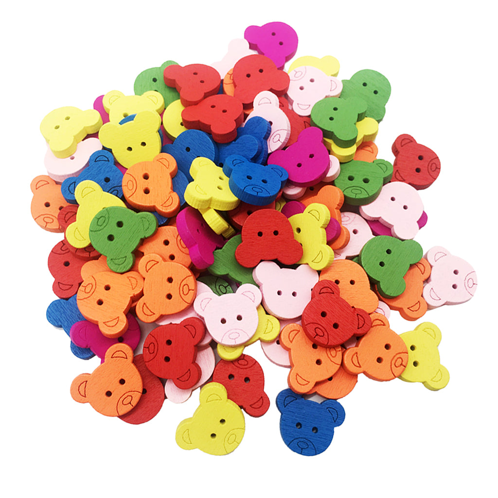 100 Pieces Colorful Bear Wood Wooden Buttons Embellishments for DIY Sewing Crafts 18x15mm