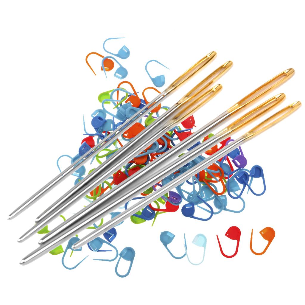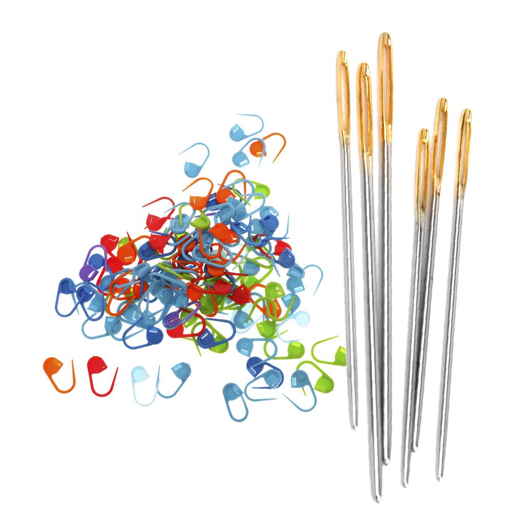 100Pieces assorted plastic knitting locking needles clips with 6Pieces large-Eye blunt needles