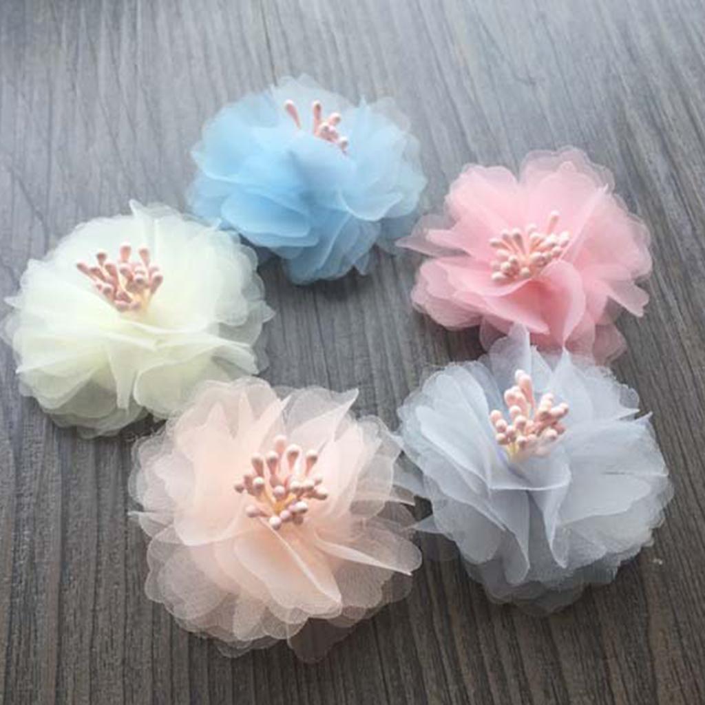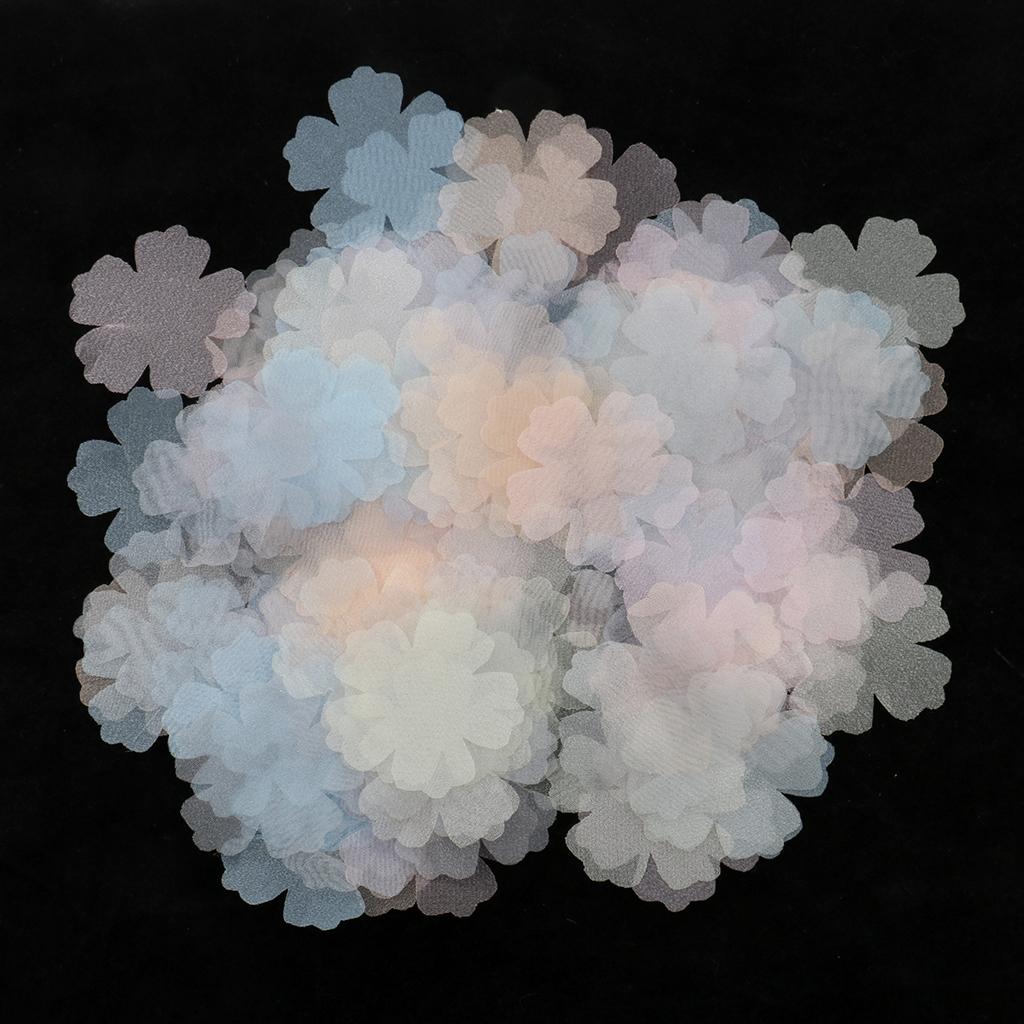 100 Pieces Fabric Chiffon Flower Shape Embellishment for DIY Hair Accessories Headband Crafts