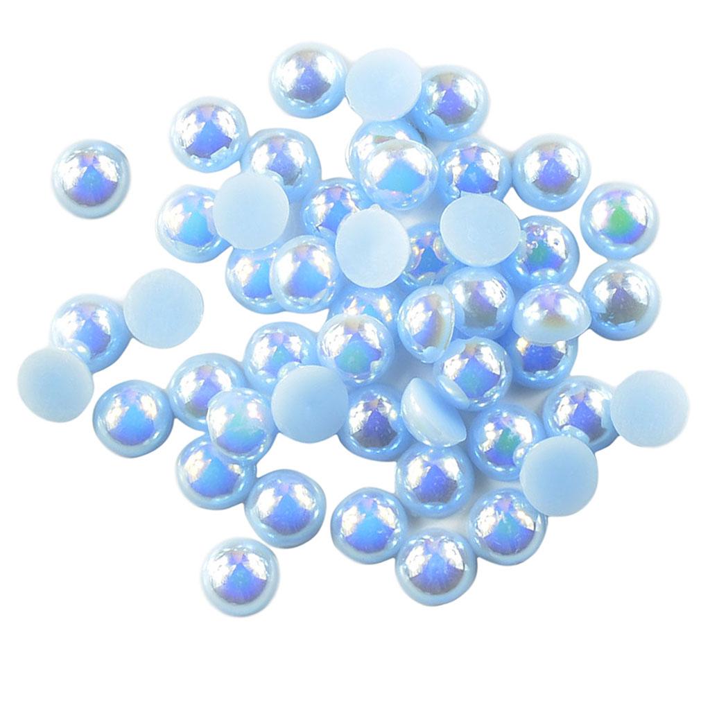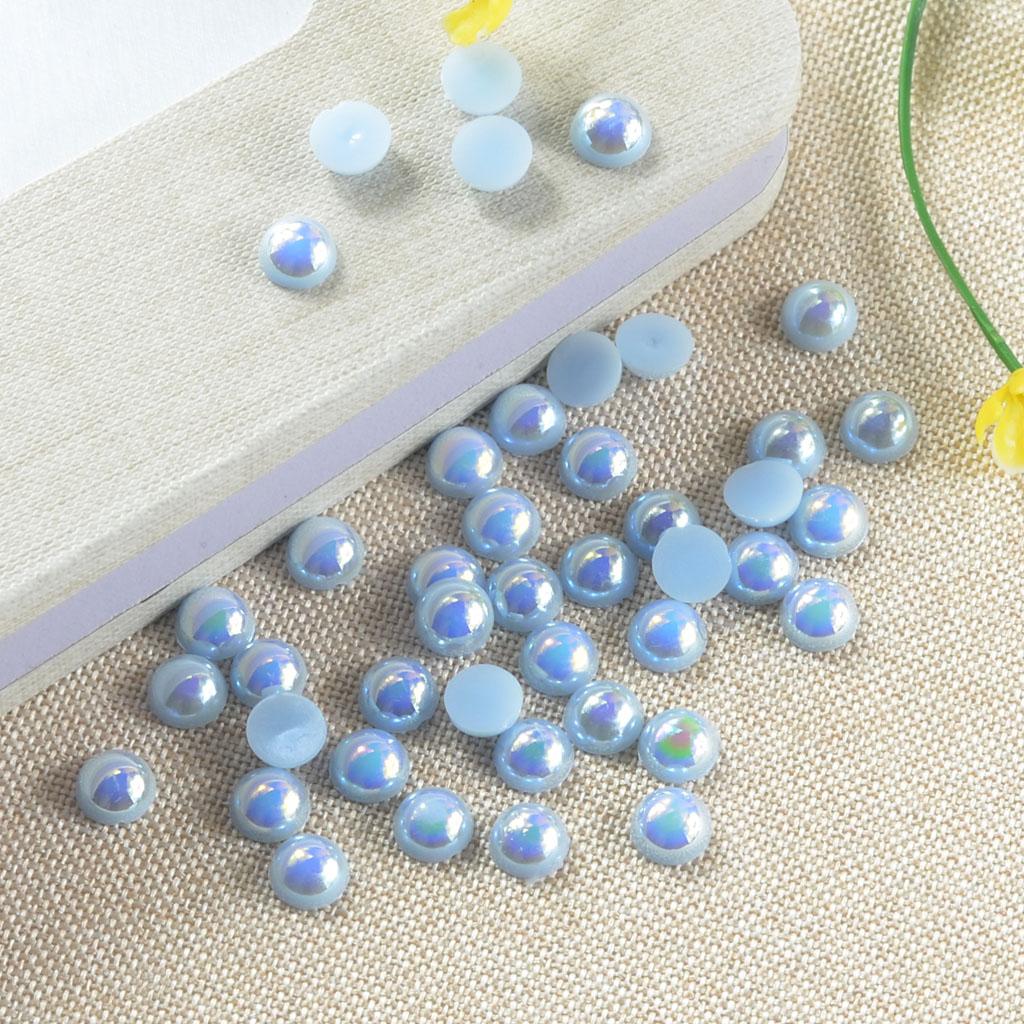 100 Pieces Half Pearl Bead Flat Back 8mm Scrapbooking for DIY Craft blue
