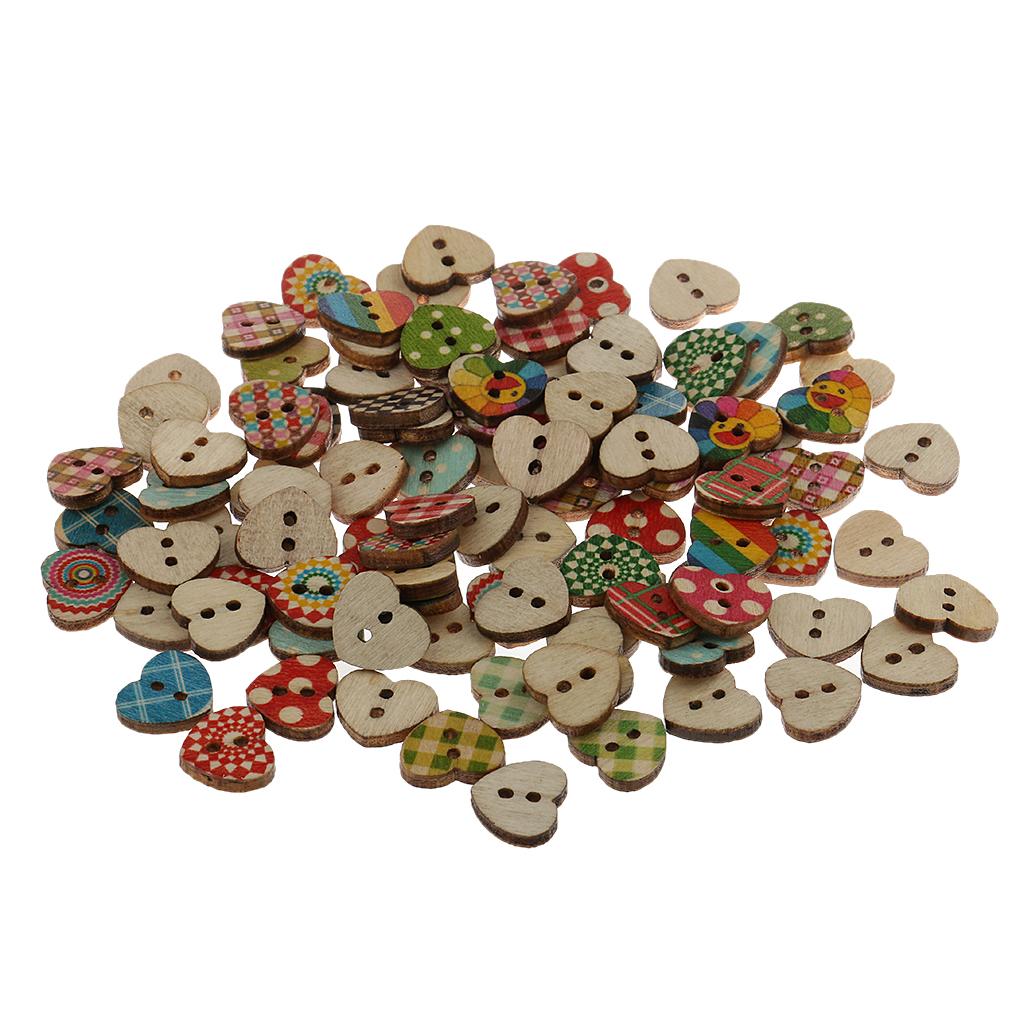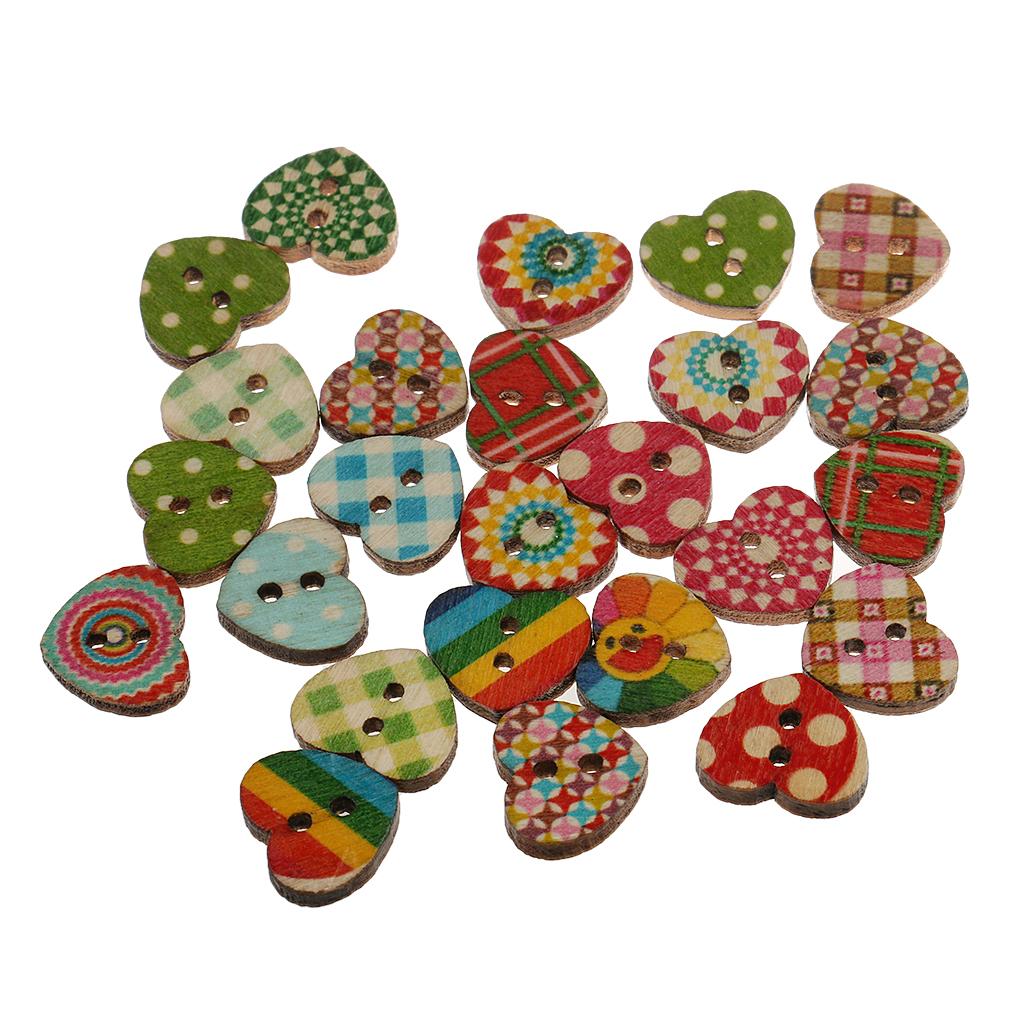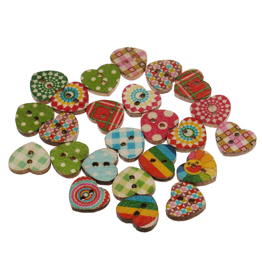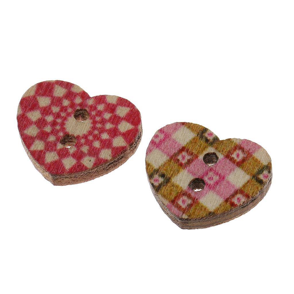 Colorful Heart Shaped 2 Holes Wood Buttons