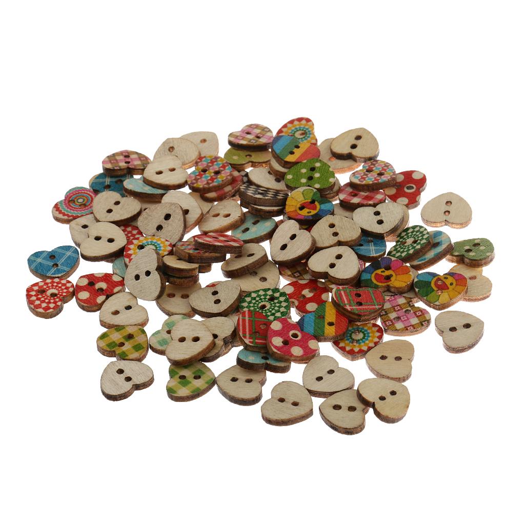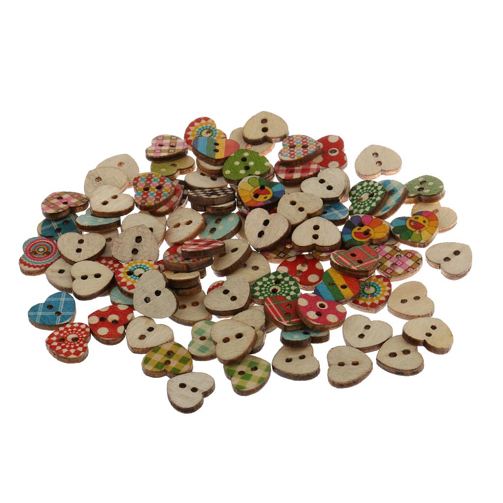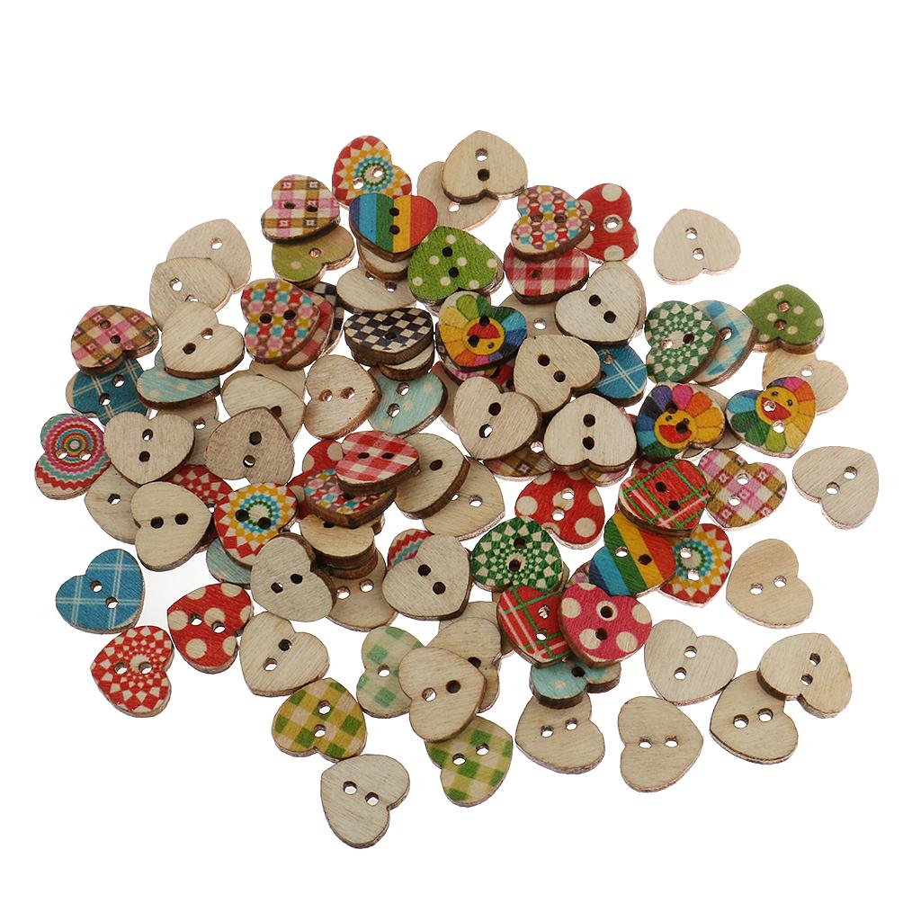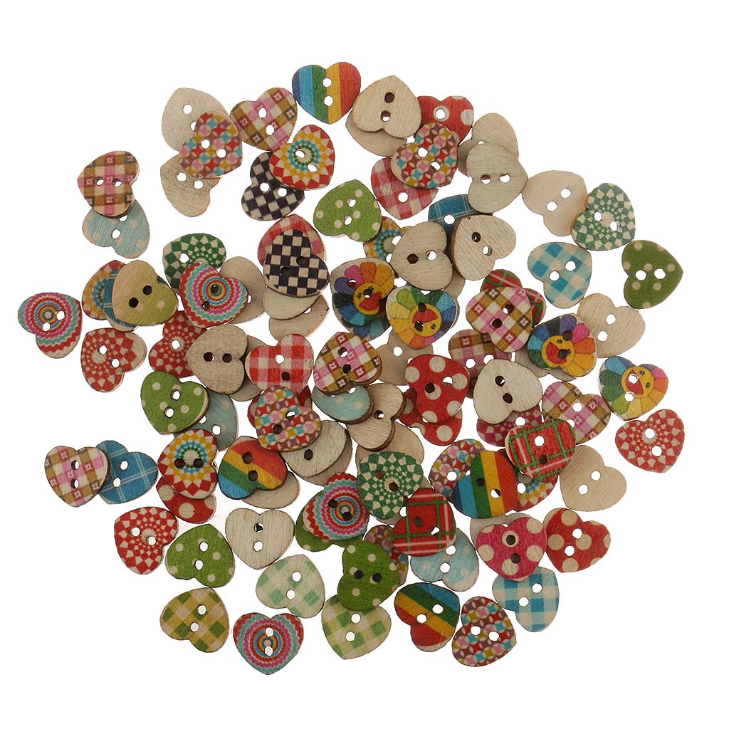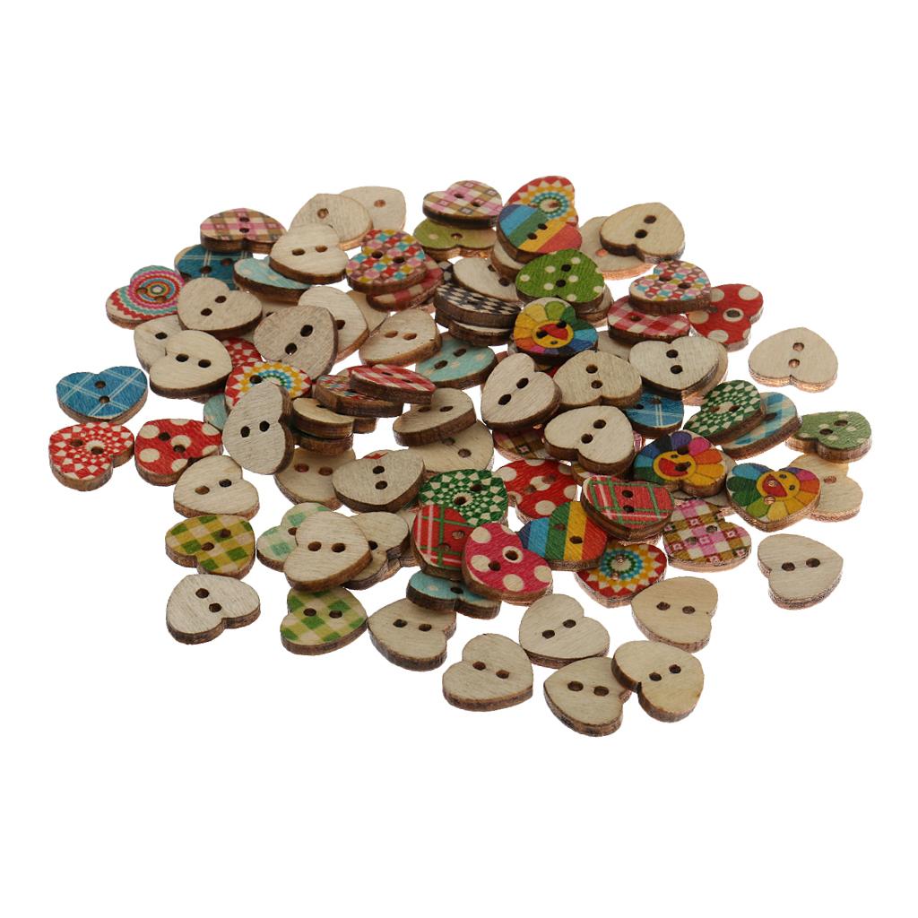Colorful Heart Shaped 2 Holes Wood Buttons
