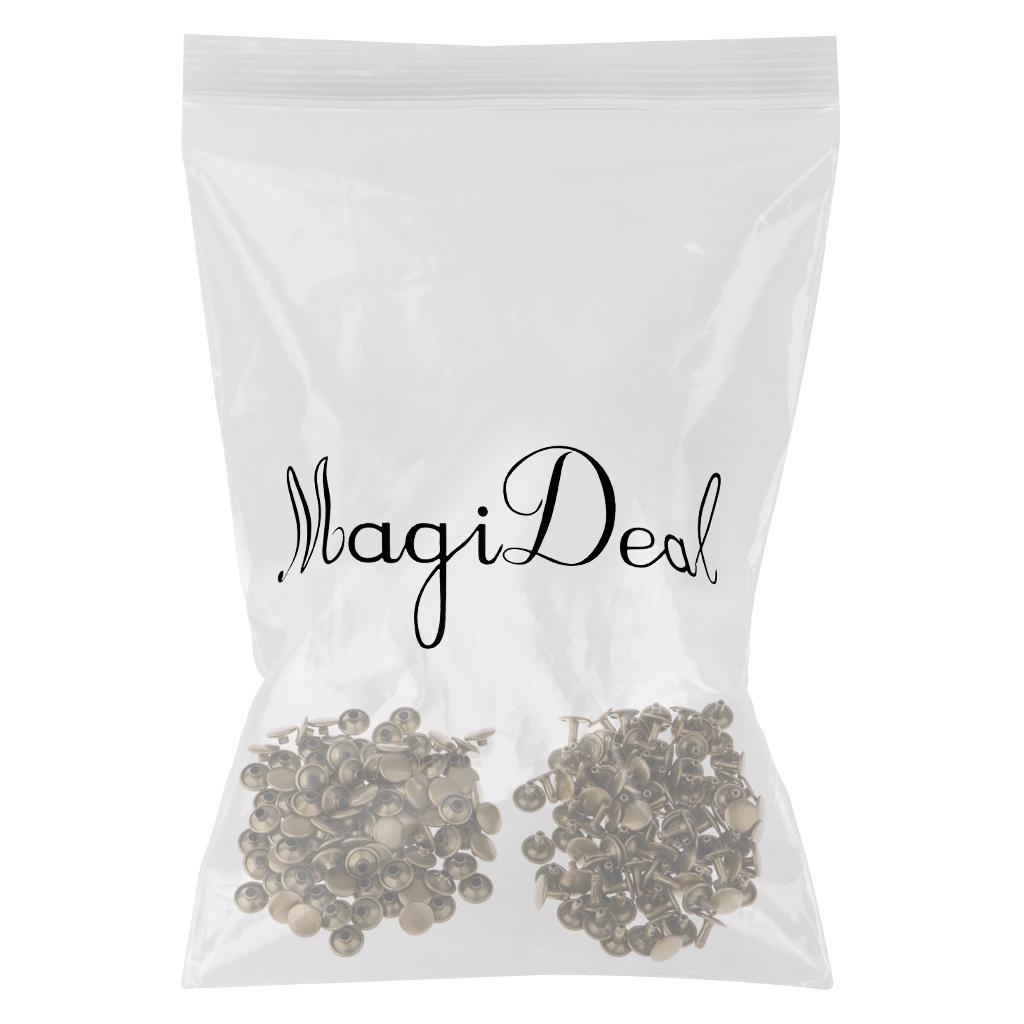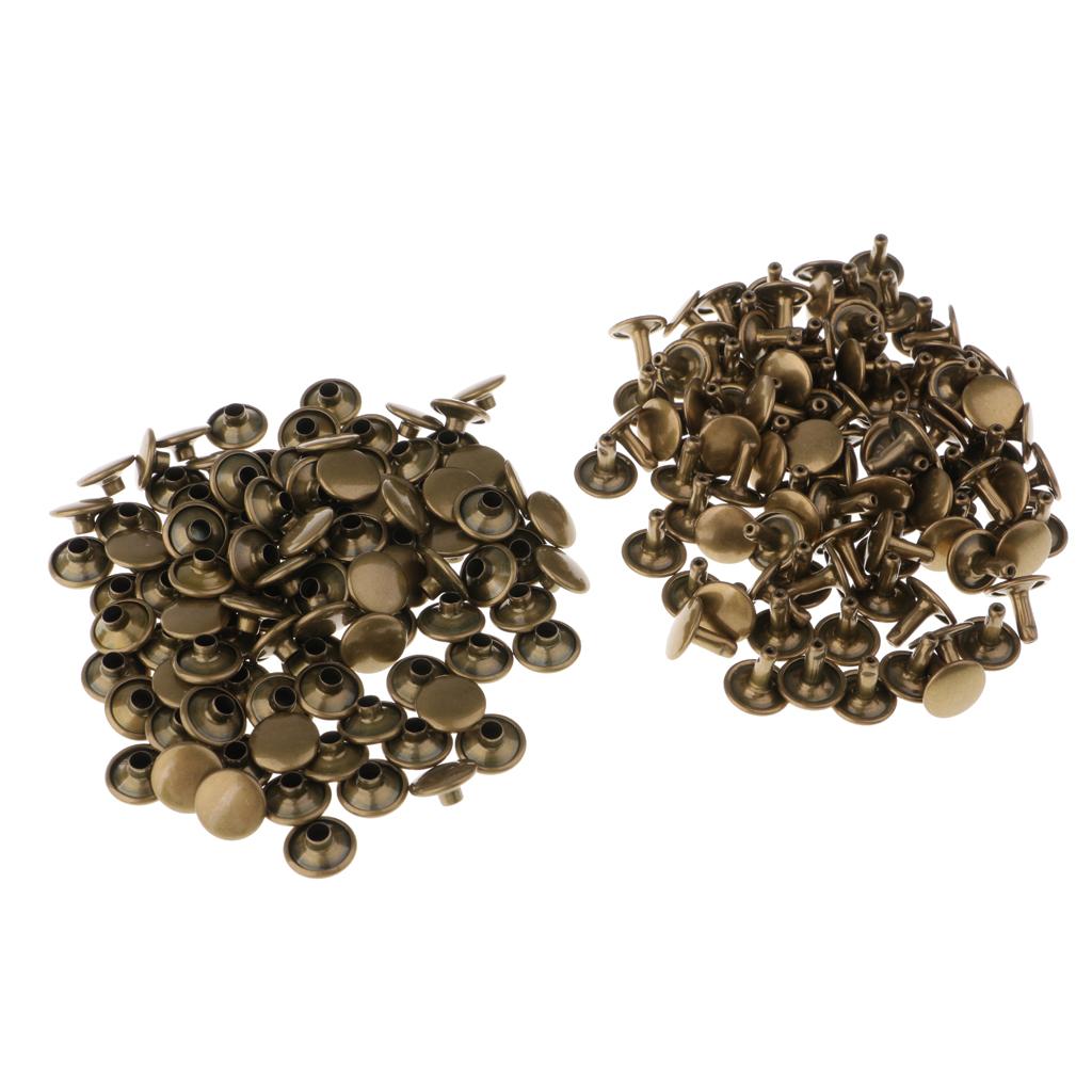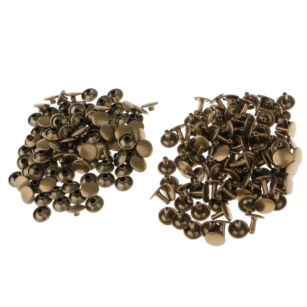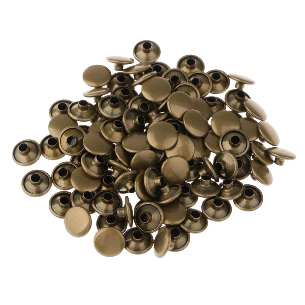 100 Pieces Leather Repair Double Cap Rapid Rivets 10mmx4mm, 10mmx8mm Bronze