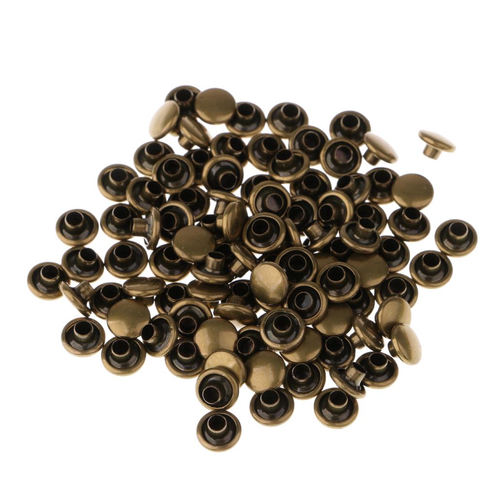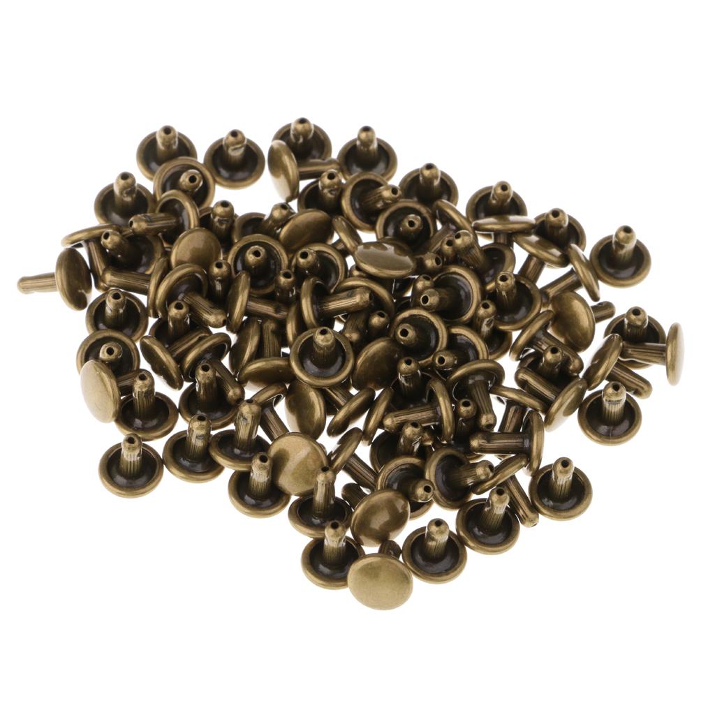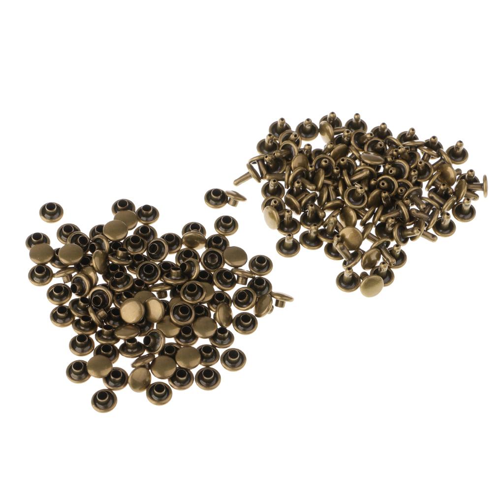 100 Pieces Leather Repair Double Cap Rapid Rivets 6mmx4mm, 6mmx5mm Bronze