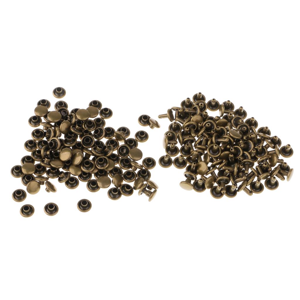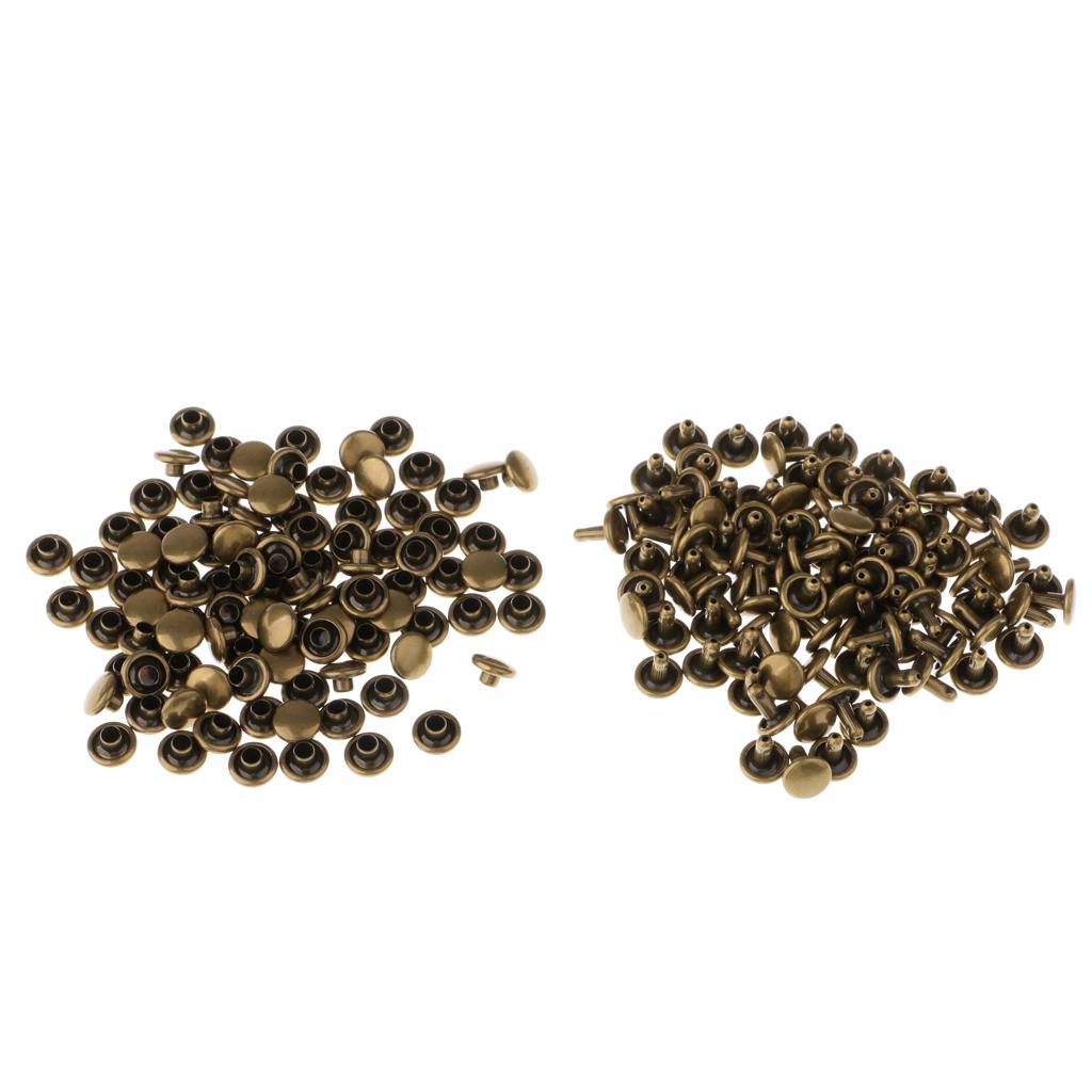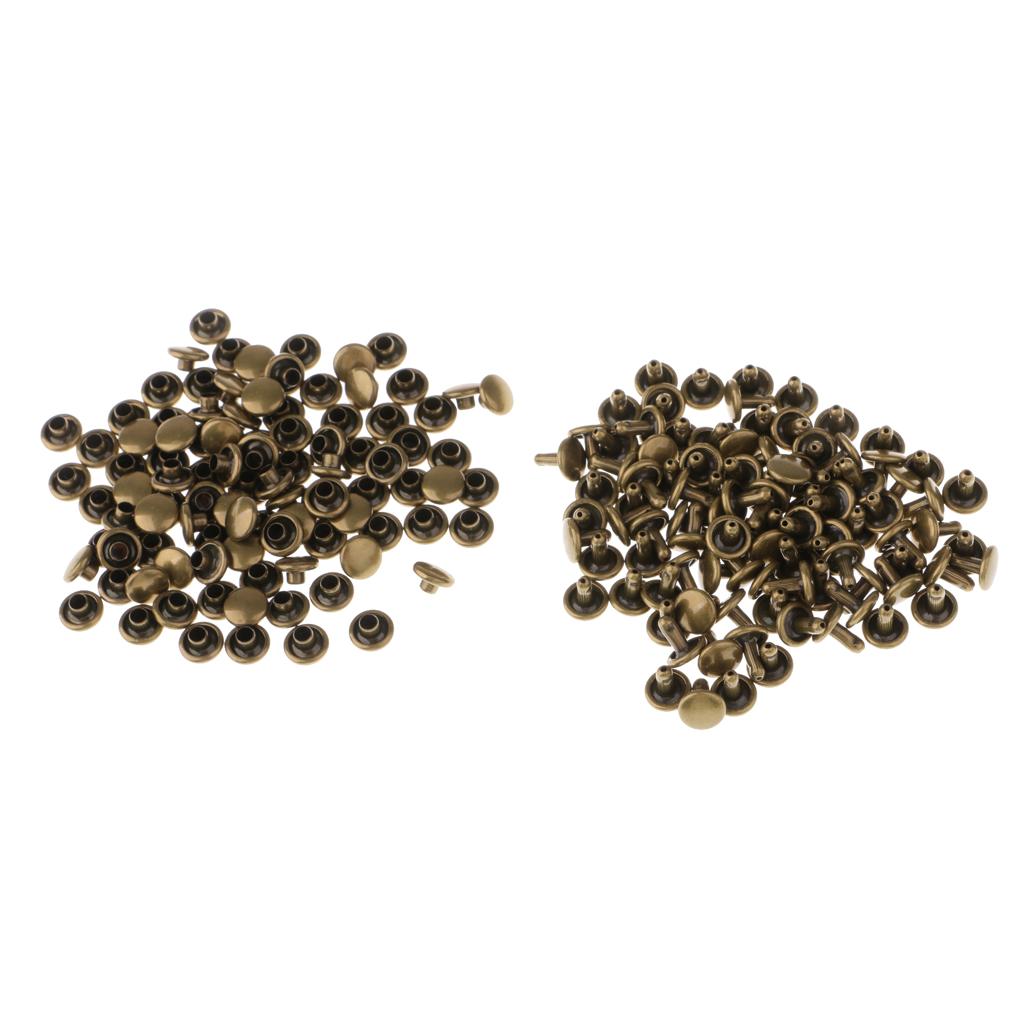 100 Pieces Leather Repair Double Cap Rapid Rivets 6mmx4mm, 6mmx5mm Bronze