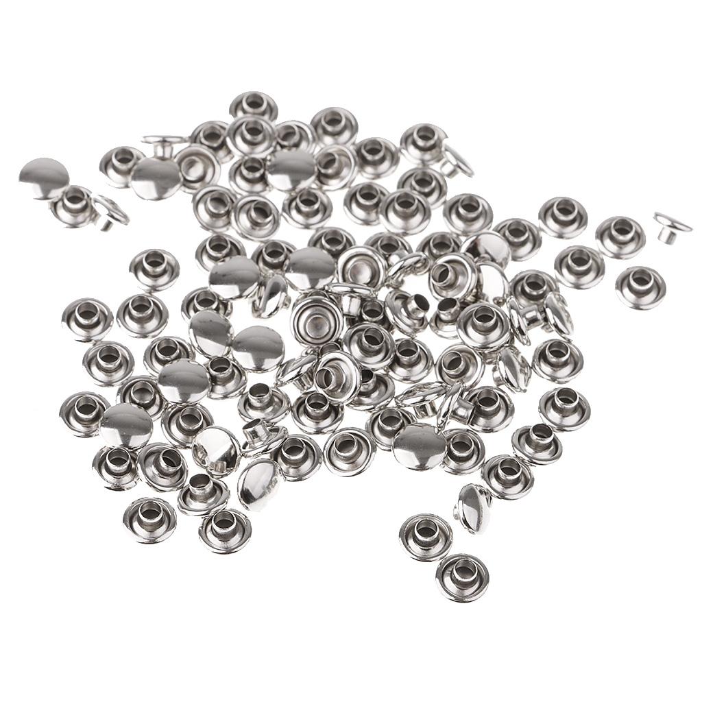 100 Pieces Leather Repair Double Cap Rapid Rivets 6mmx4mm, 6mmx6mm Silver
