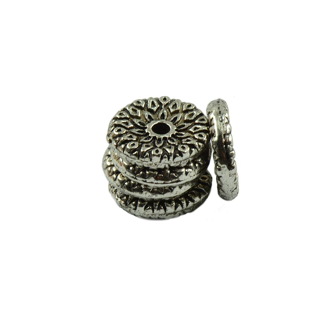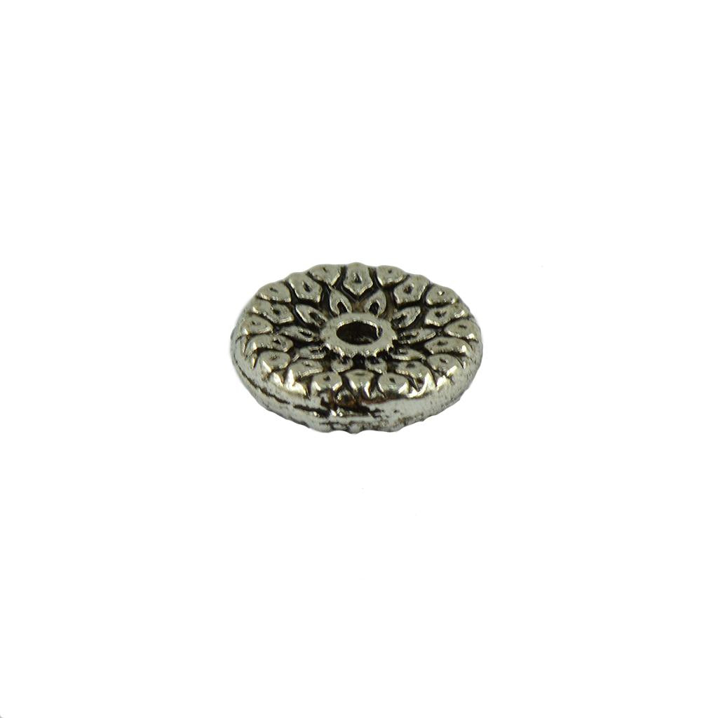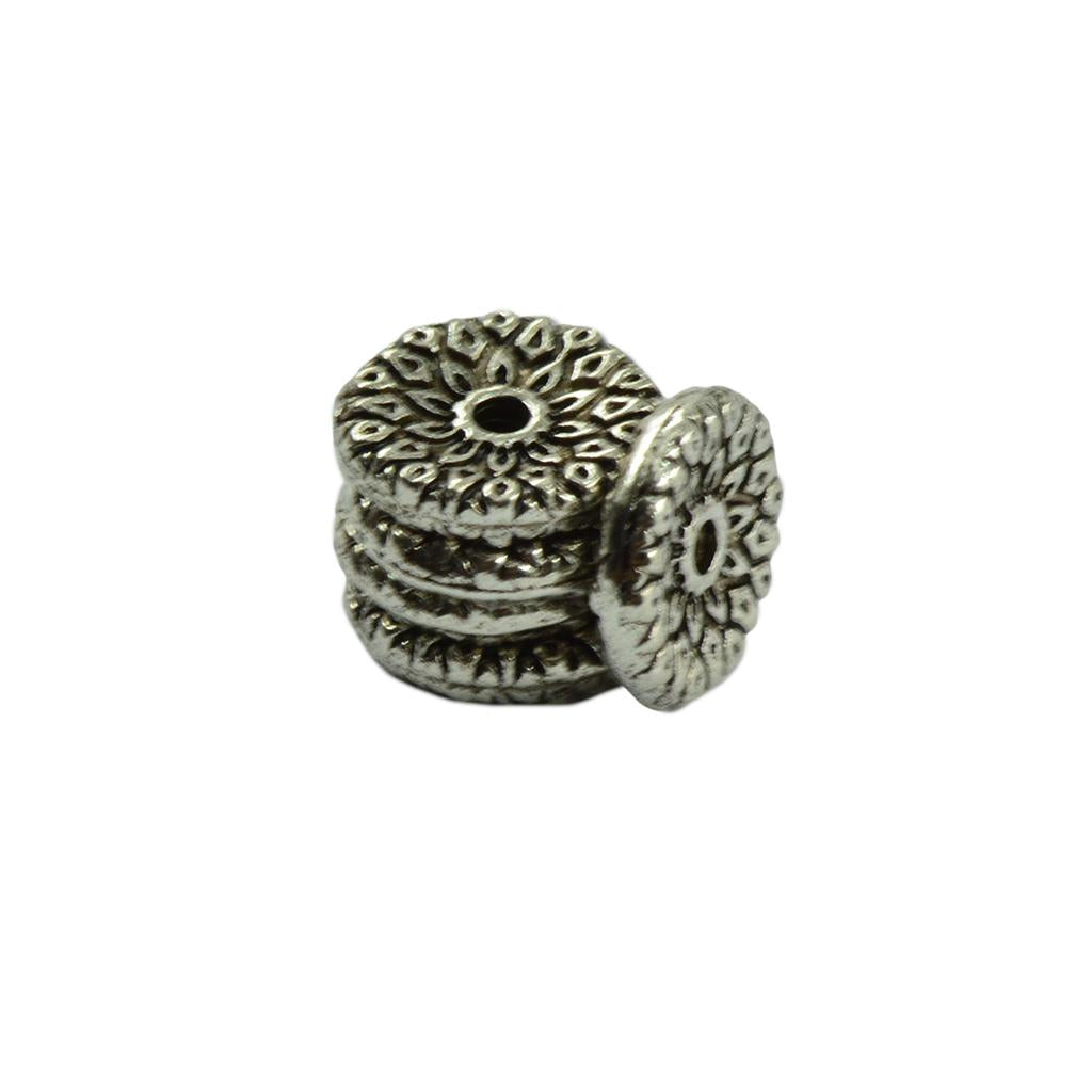 Tibetan Silver Alloy Rondelle Heishi spacer beads charms with flower patterns engraved on both sides.