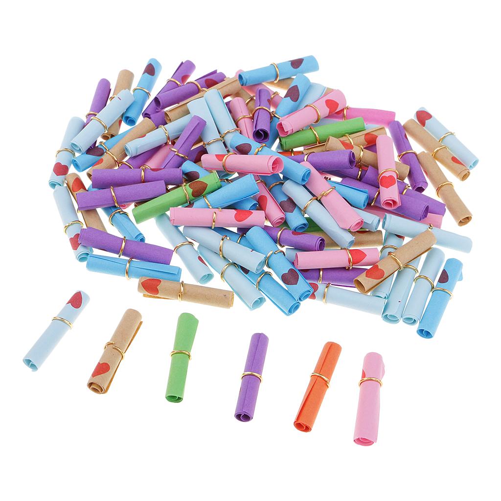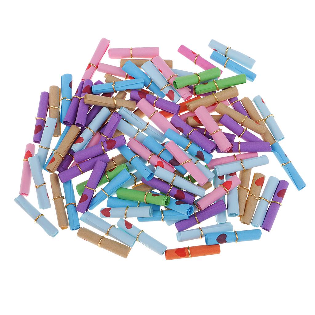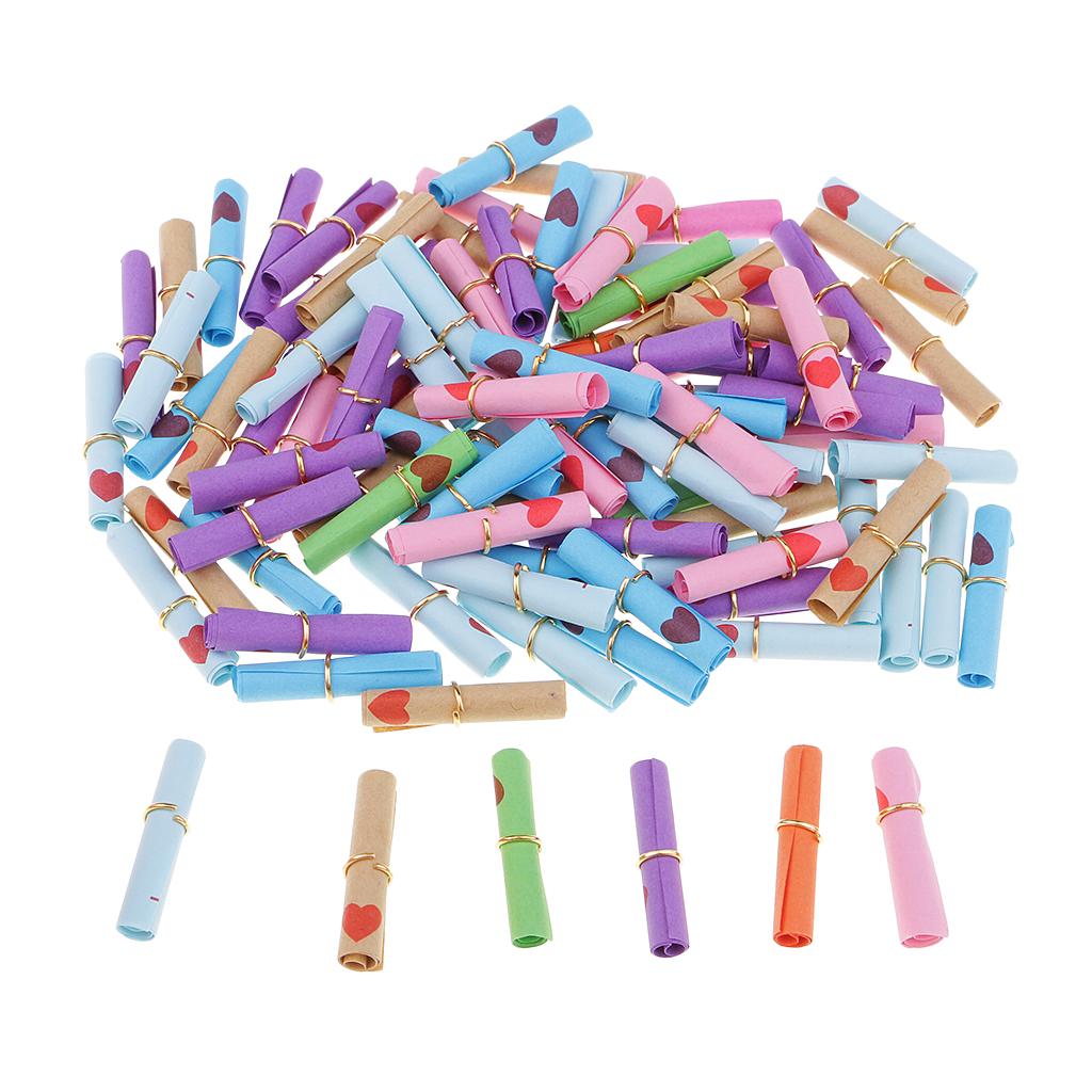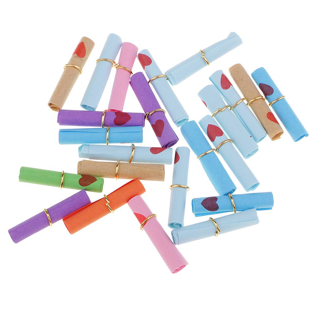 Colorful heart printed wishing paper scroll with mini gold metal ring