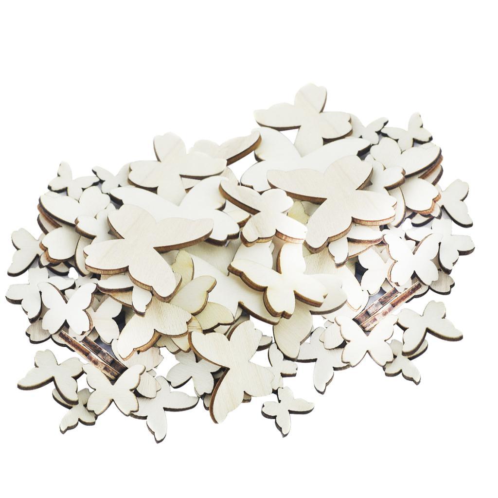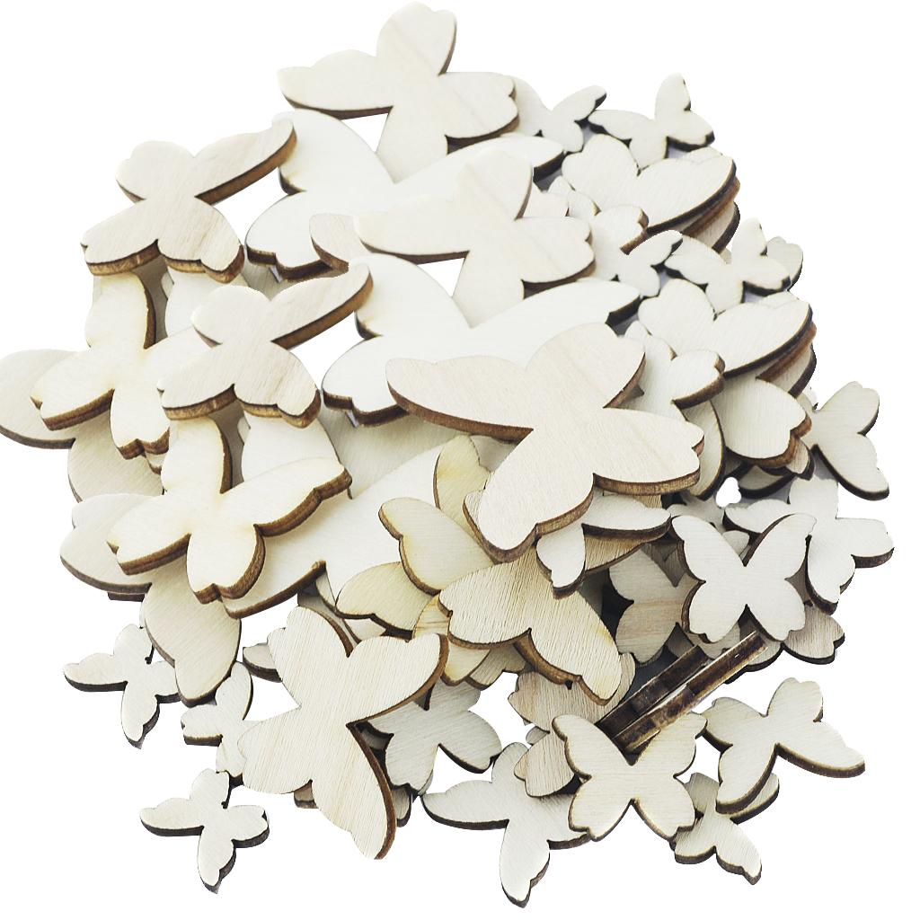 100 Pieces Mixed Wooden Butterfly Shape Shabby Chic DIY Embellishment Decoration