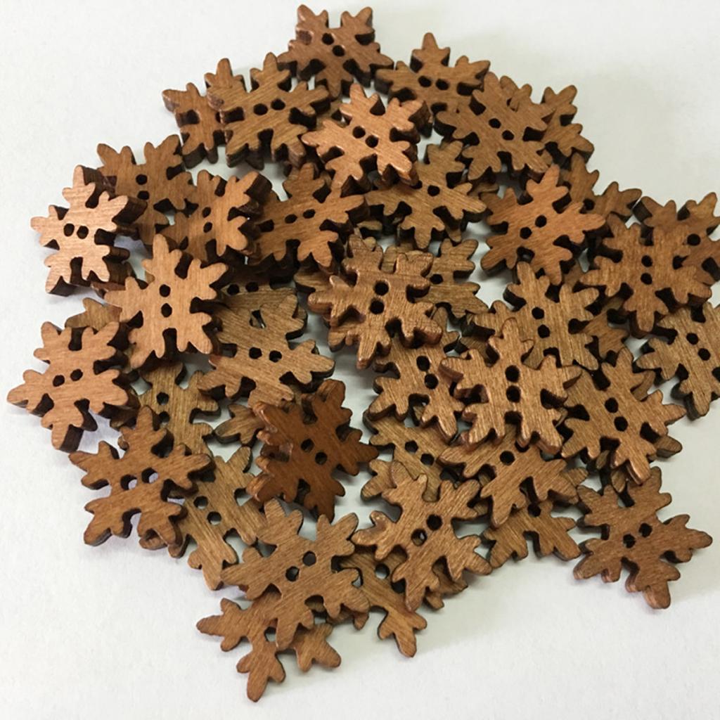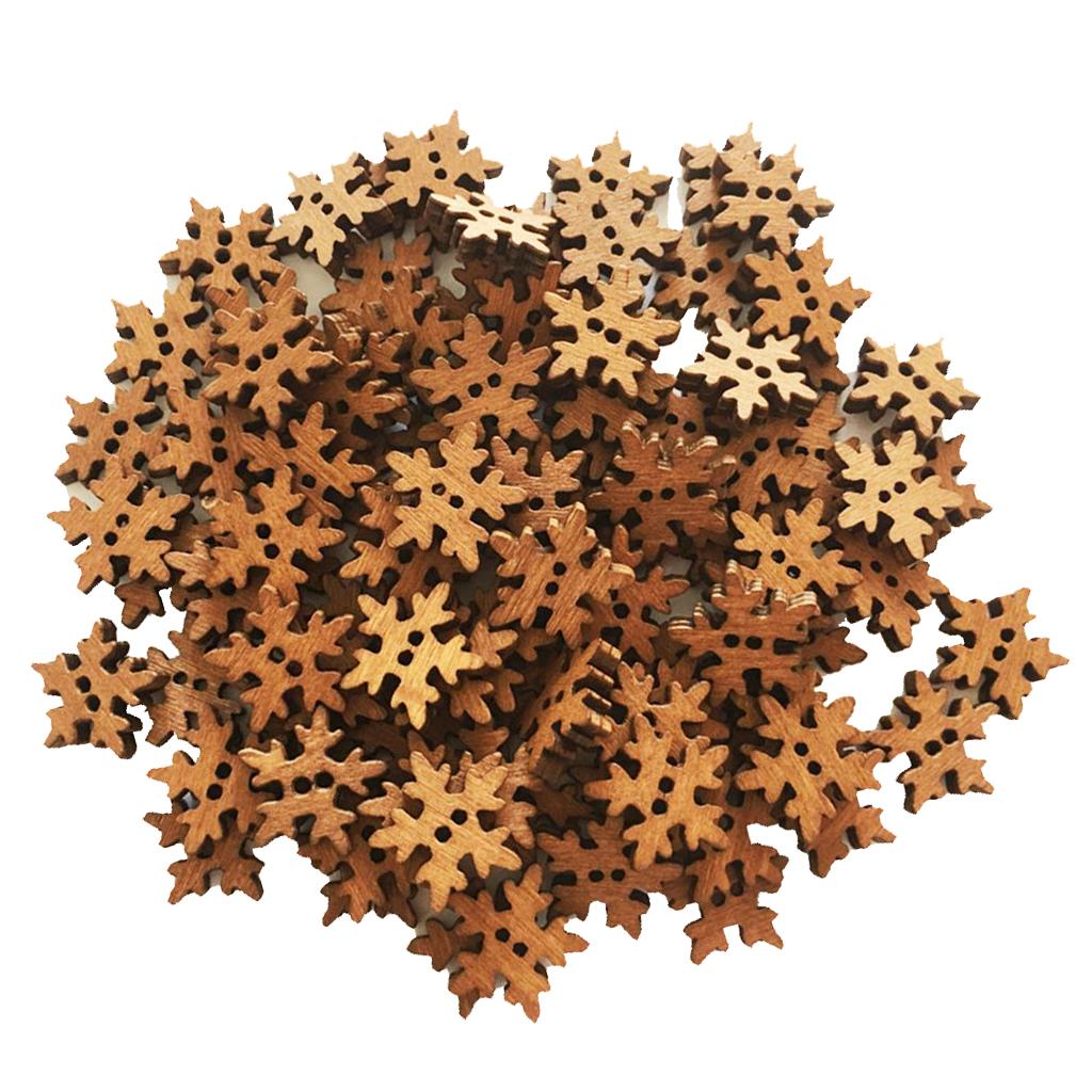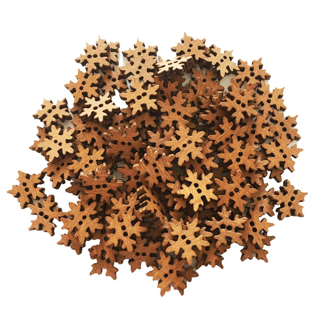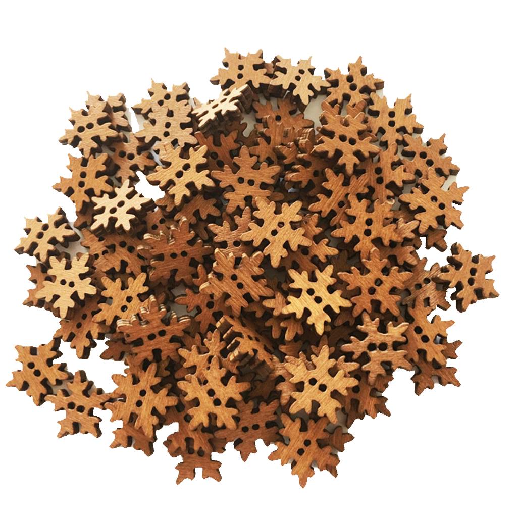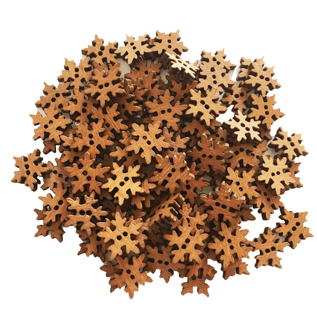 100 Pieces Retro Snowflake Wooden Sewing Buttons 2 Holes for Sewing Scrapbooking