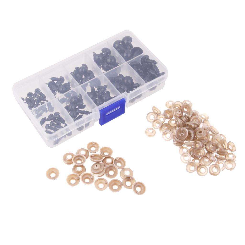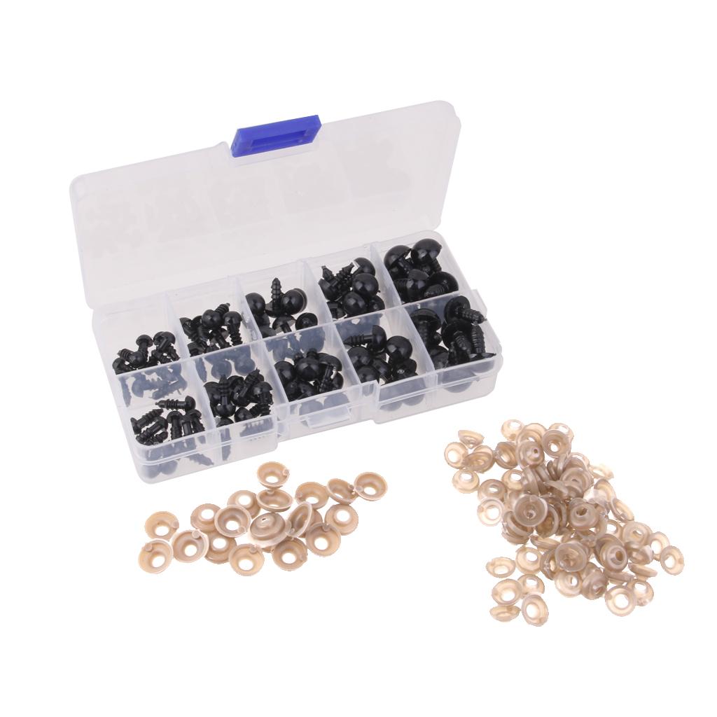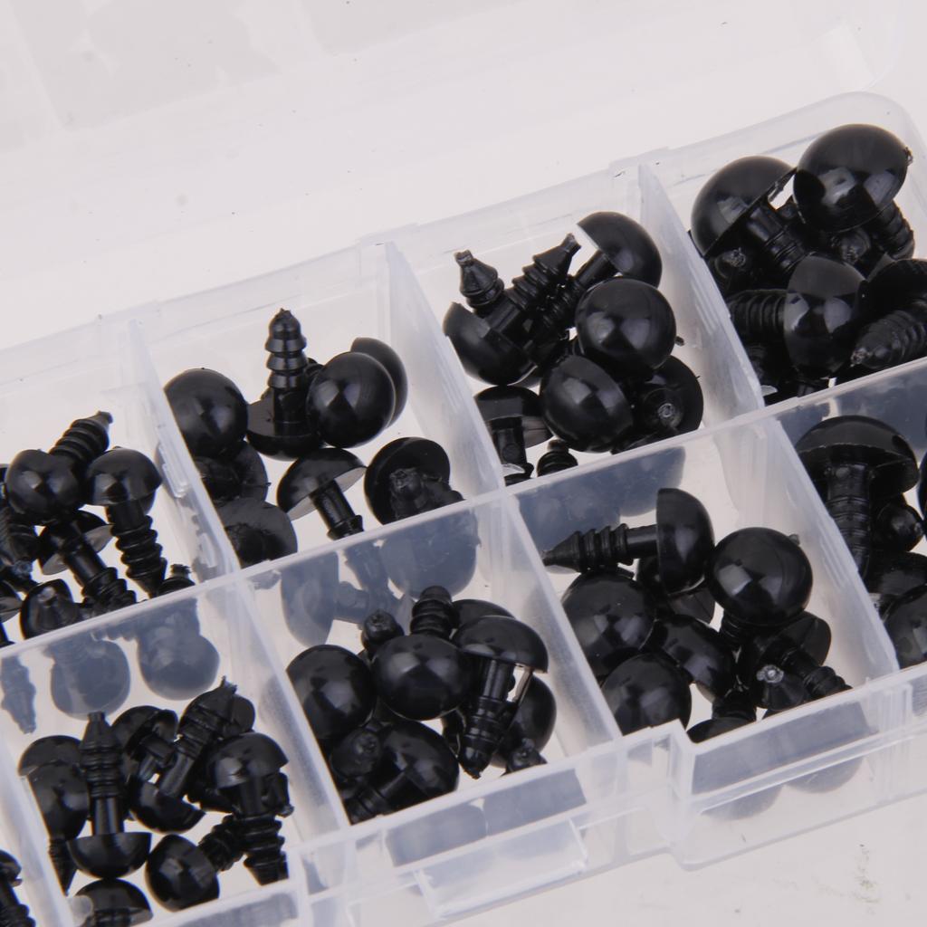 6-12mm 100pcs Safety Eyes Black Plastic For Crafts Box Teddy Bear Doll Animal