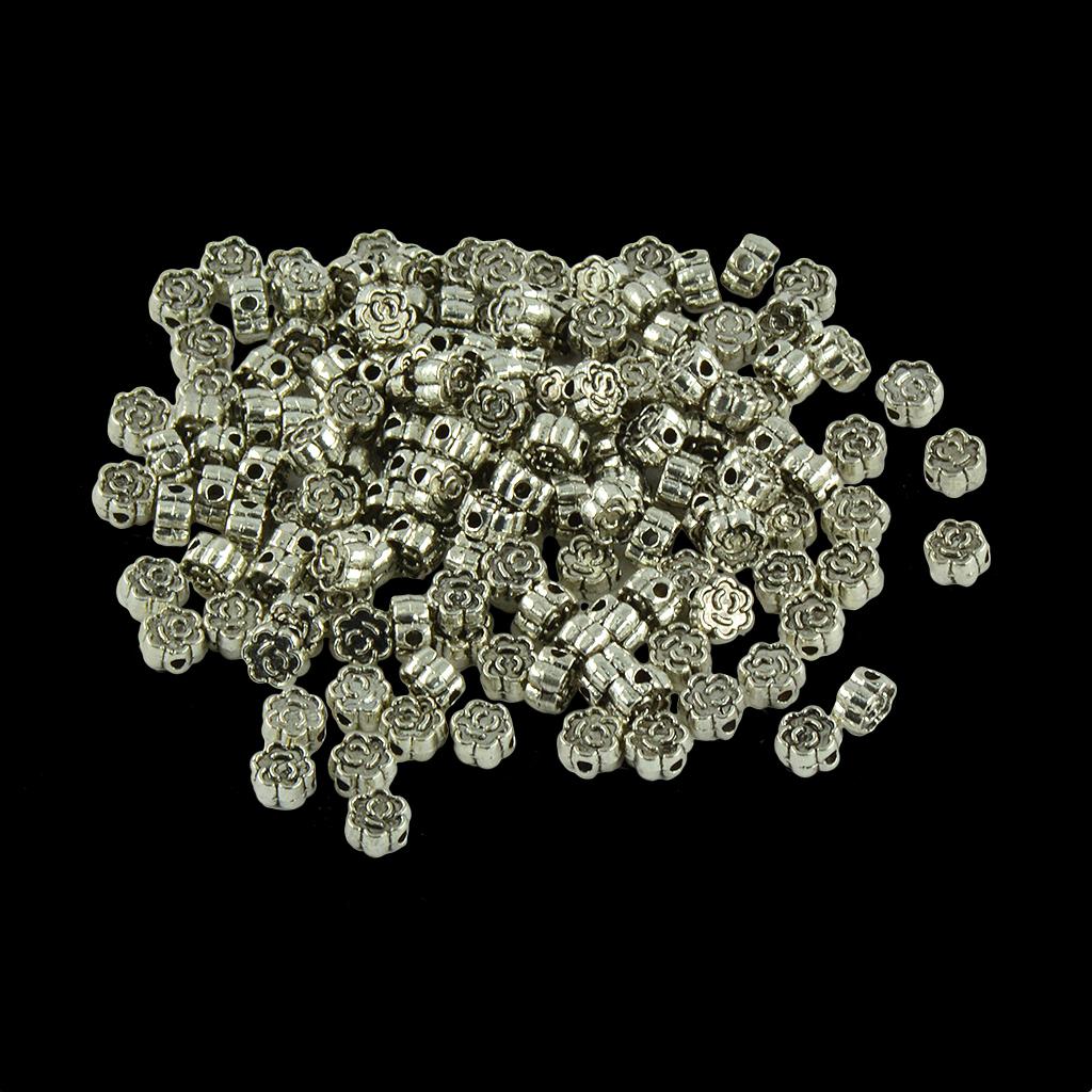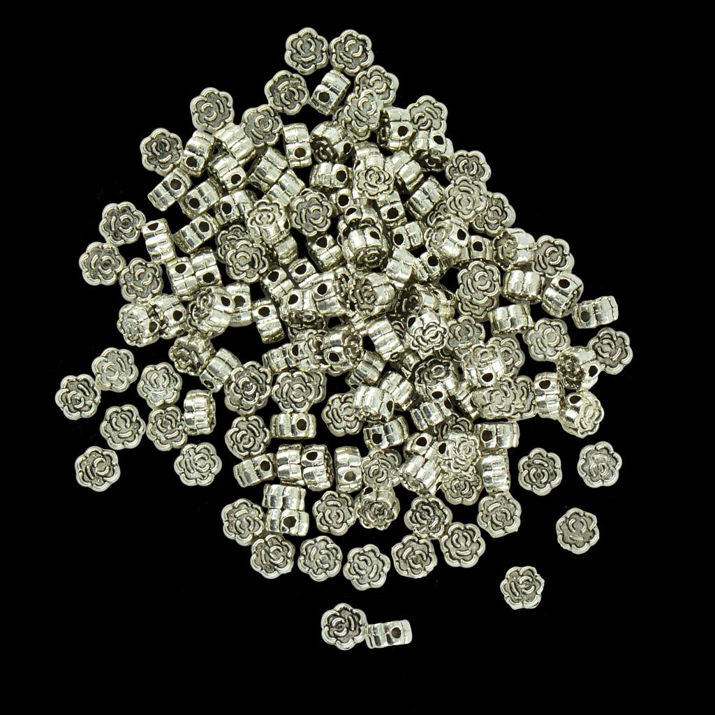 Tibetan Silver Alloy Round spacer beads charms with Rose flower patterns engraved on both sides