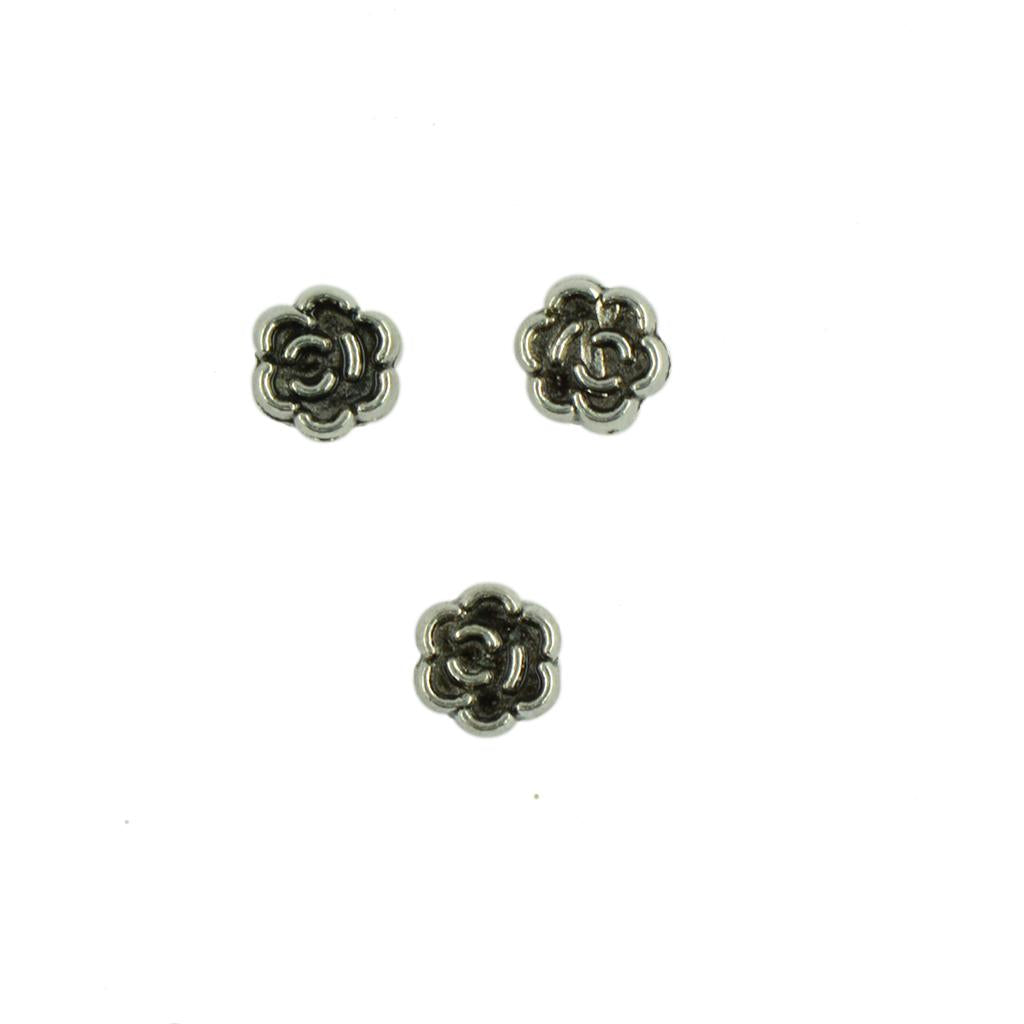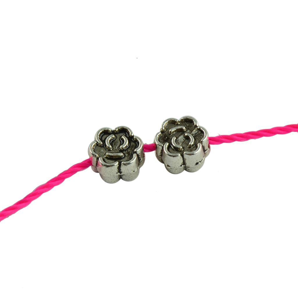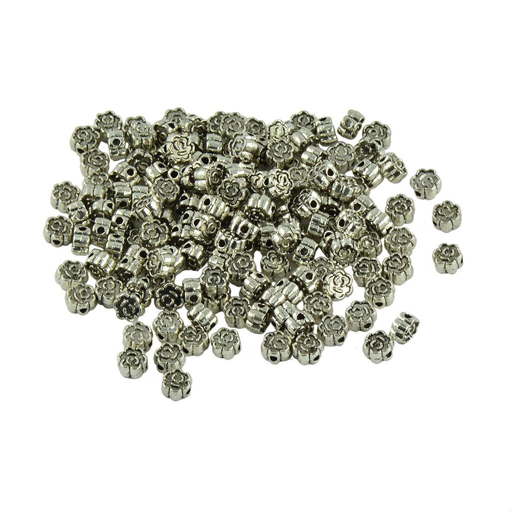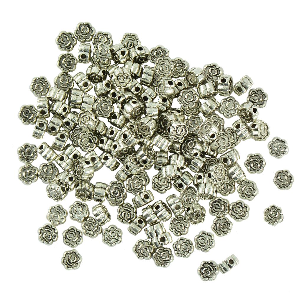 Tibetan Silver Alloy Round spacer beads charms with Rose flower patterns engraved on both sides