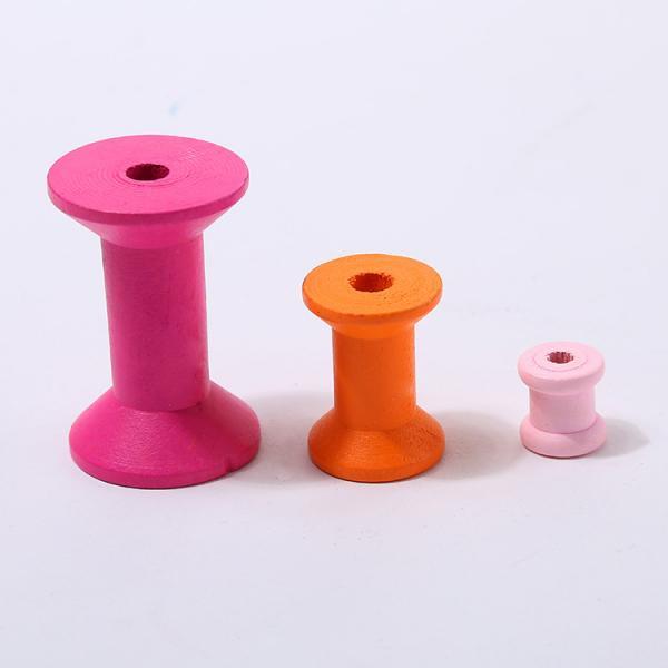 Unfinished spools can be painted, stained, or further embellished for decorative purposes.