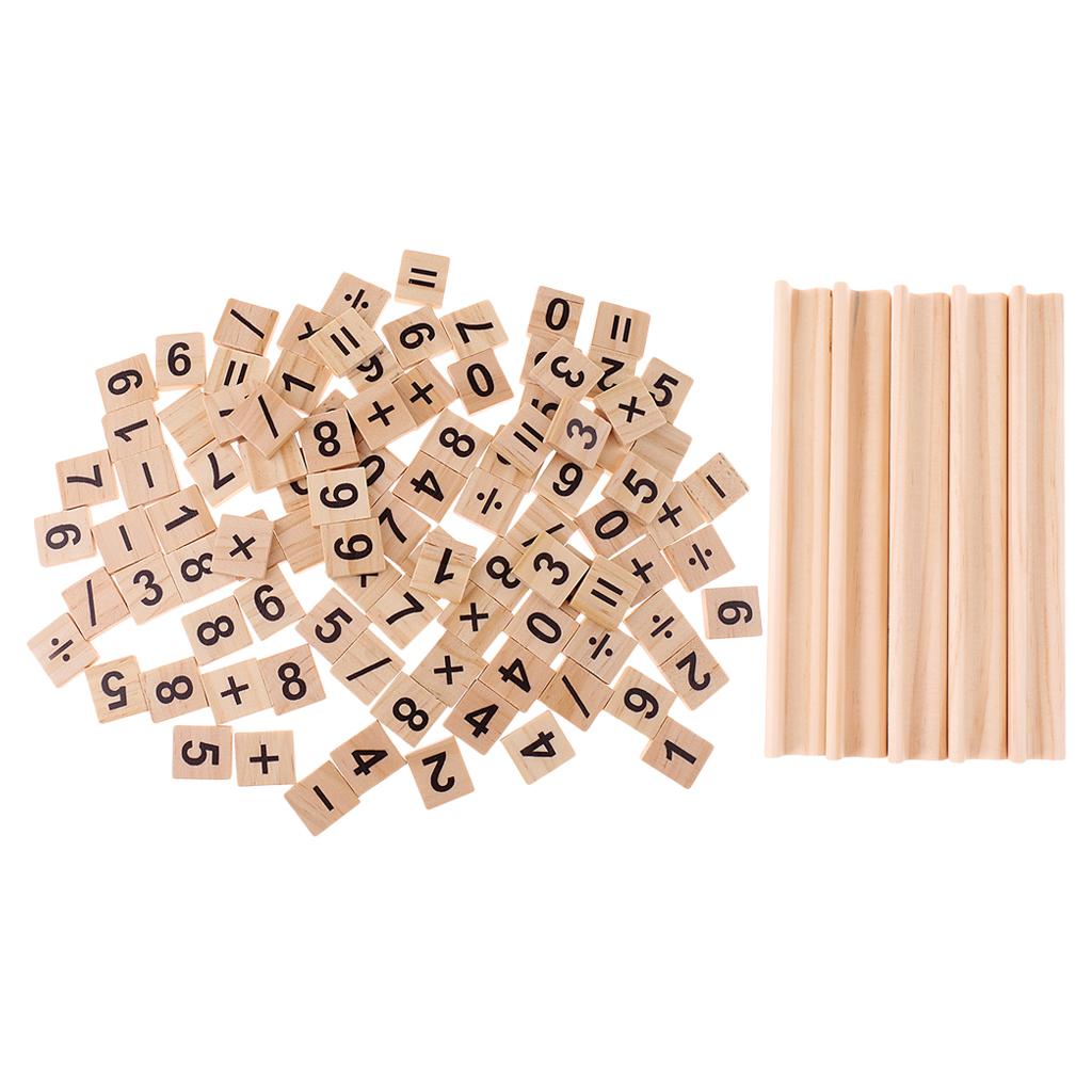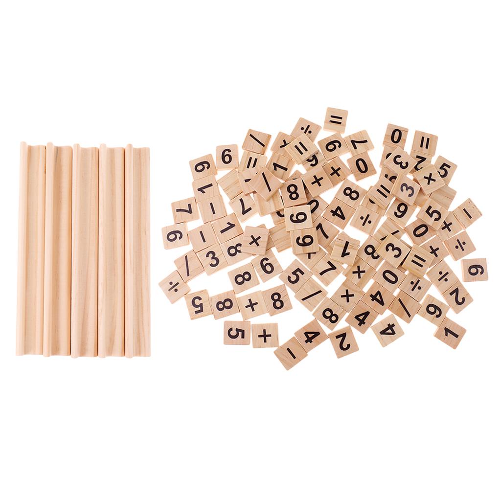 100 Pieces Wooden Number Tiles & 5 Pieces Wooden Tile Trays Wood Crafts.