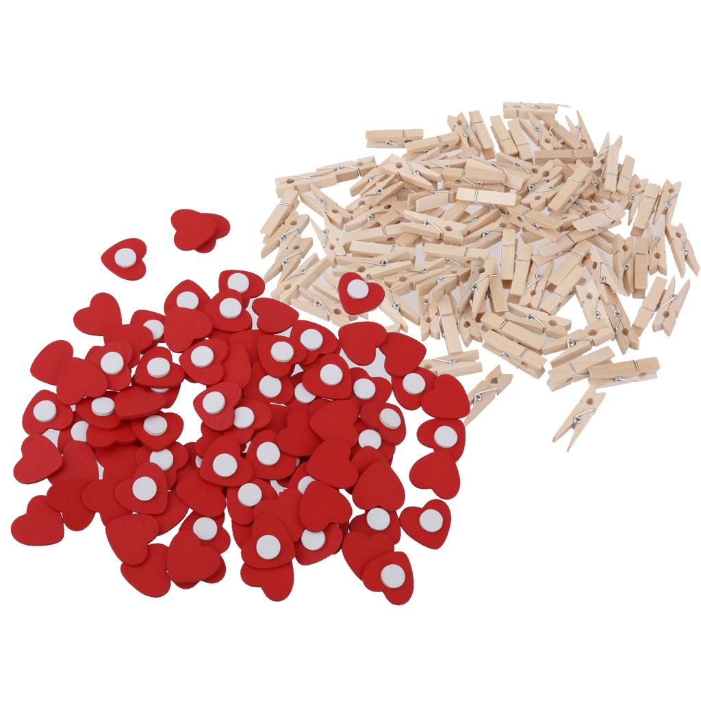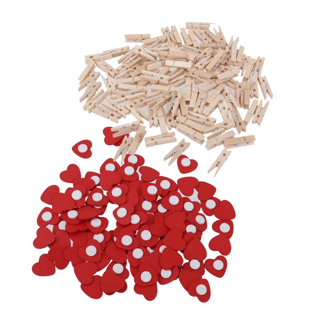 Lovely wooden red heart stickers & Natural mini Wooden Pegs Clothes Pins