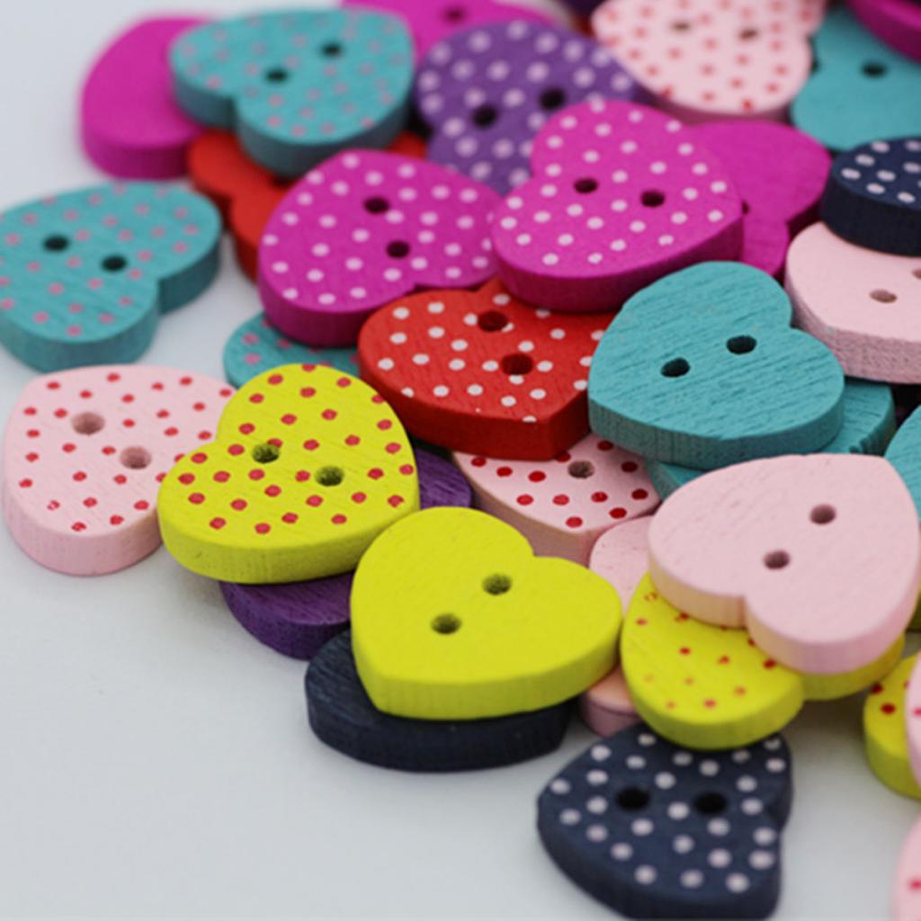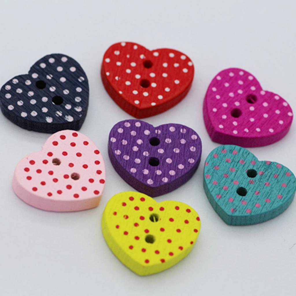 Colorful dots heart shaped 2 holes wood buttons.