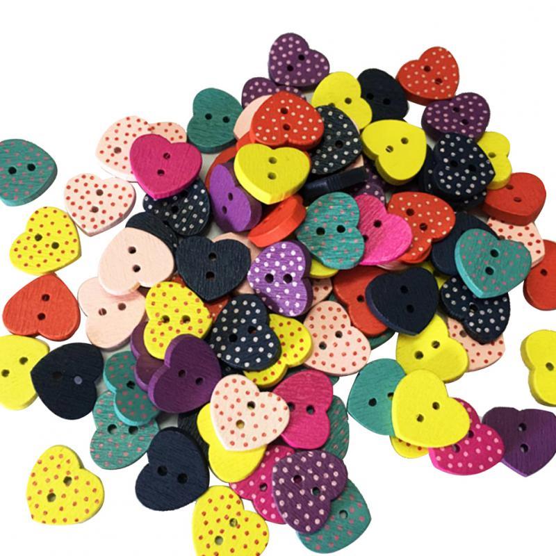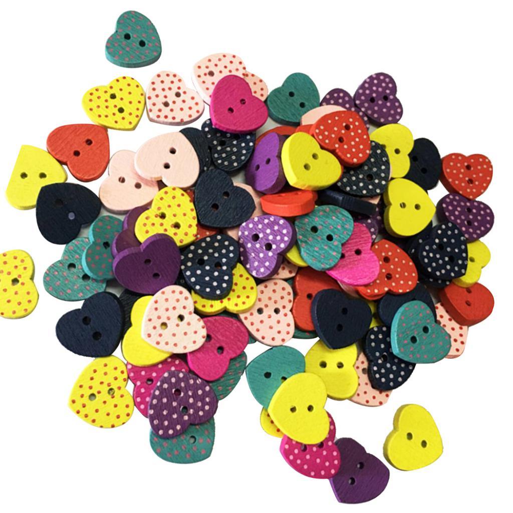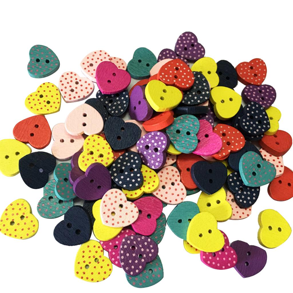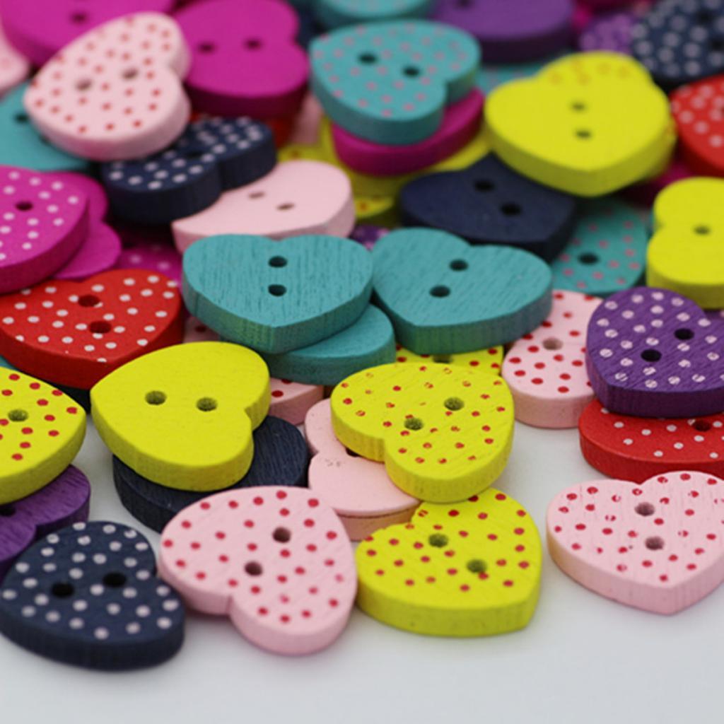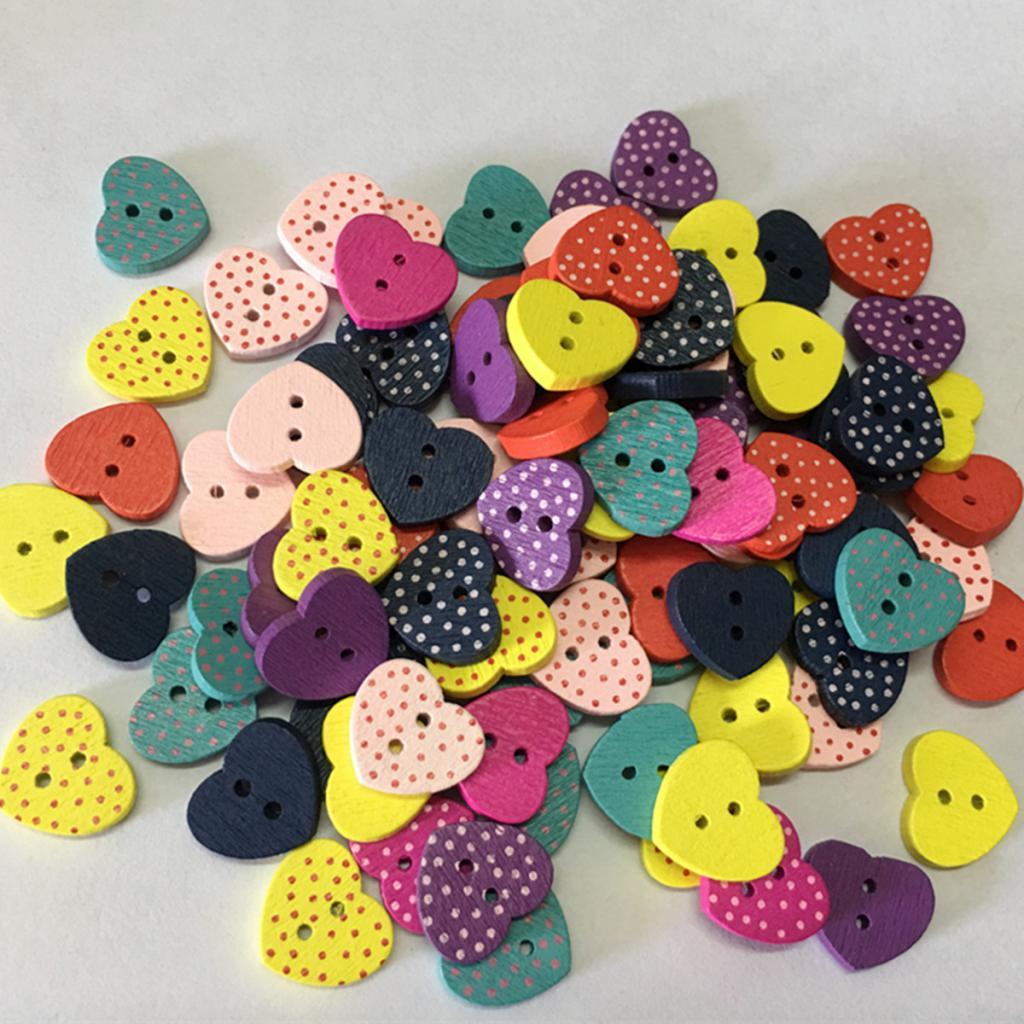 100 Pieces Wooden Heart Buttons