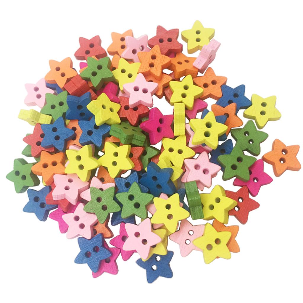 100 Pieces Wooden Star 2 Holes Buttons Embellishments Flatback for Sewing Crafting Scrapbooking DIY 13mm