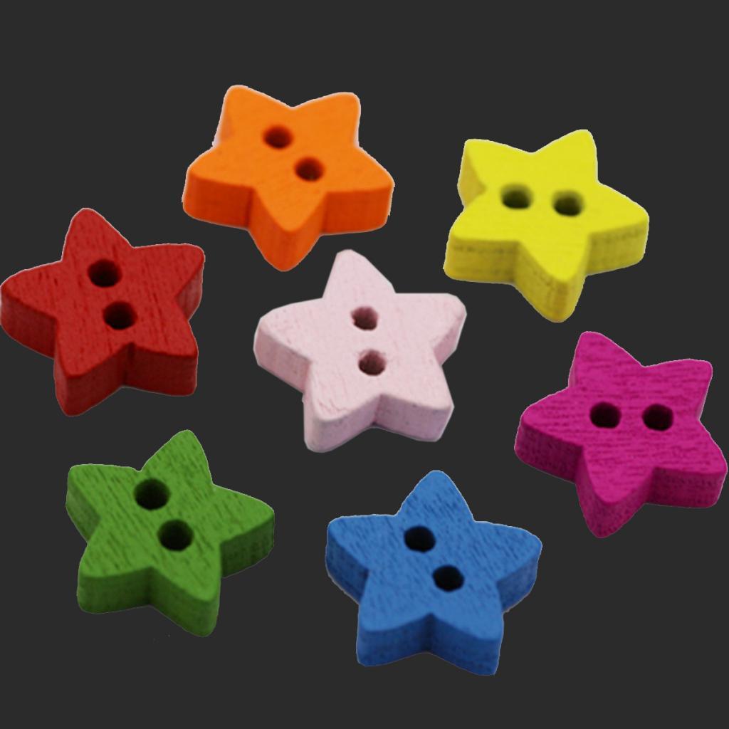 Beautiful Assorted Color Cartoon Star wooden buttons with 2 flat holes